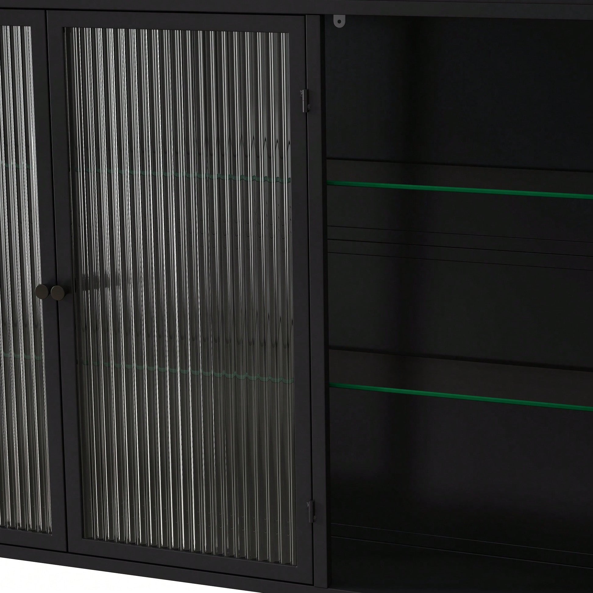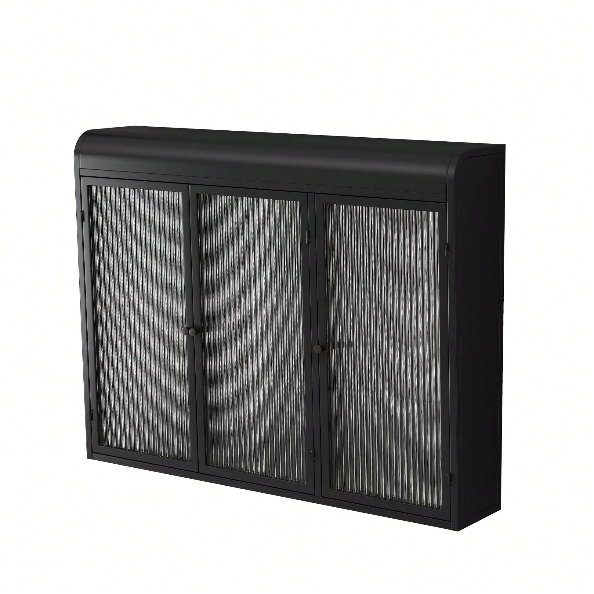 3 Door Arched Wall Mounted Glass Cabinet For Kitchen Living Room And Bathroom In Black Finish