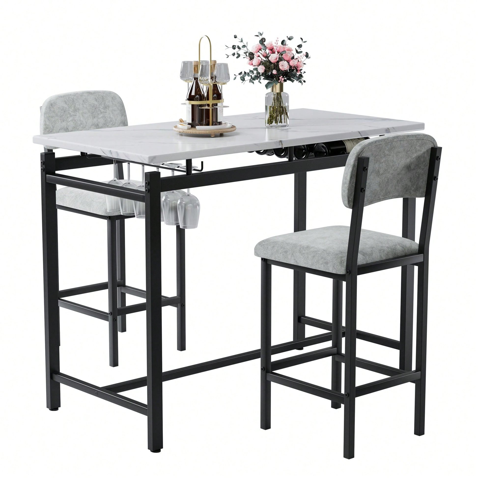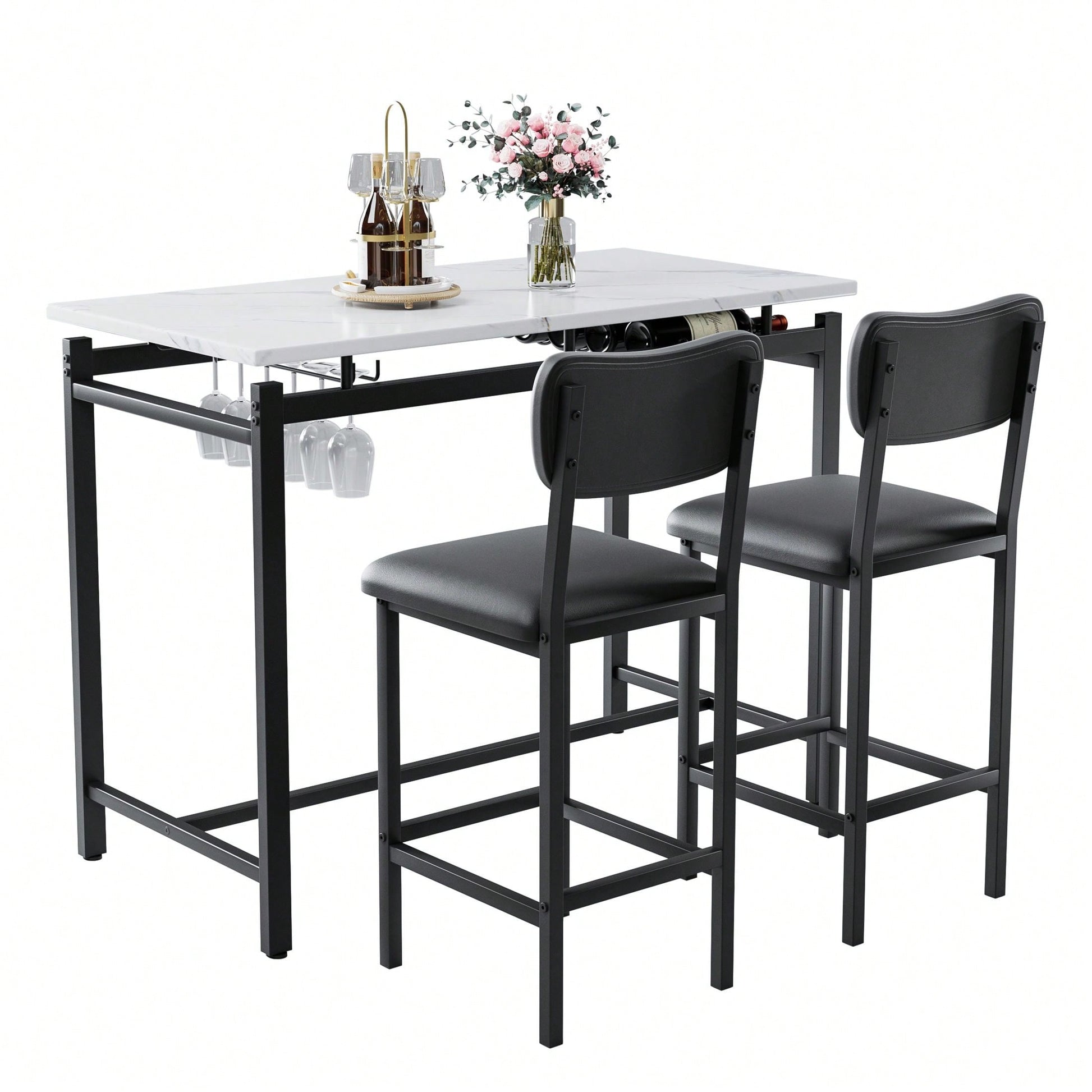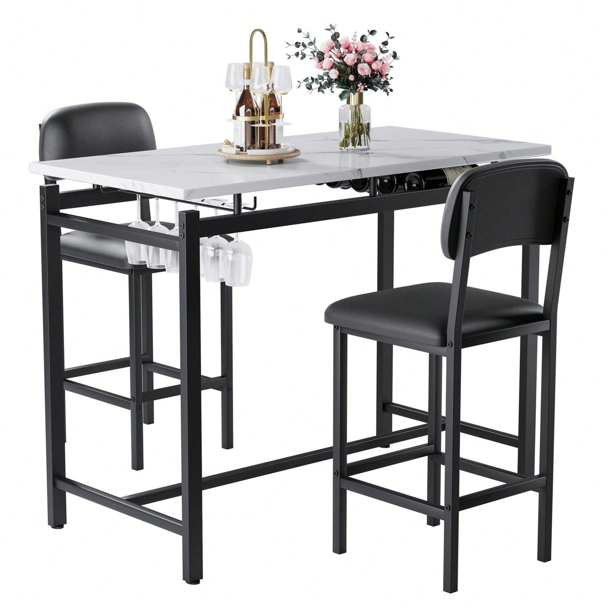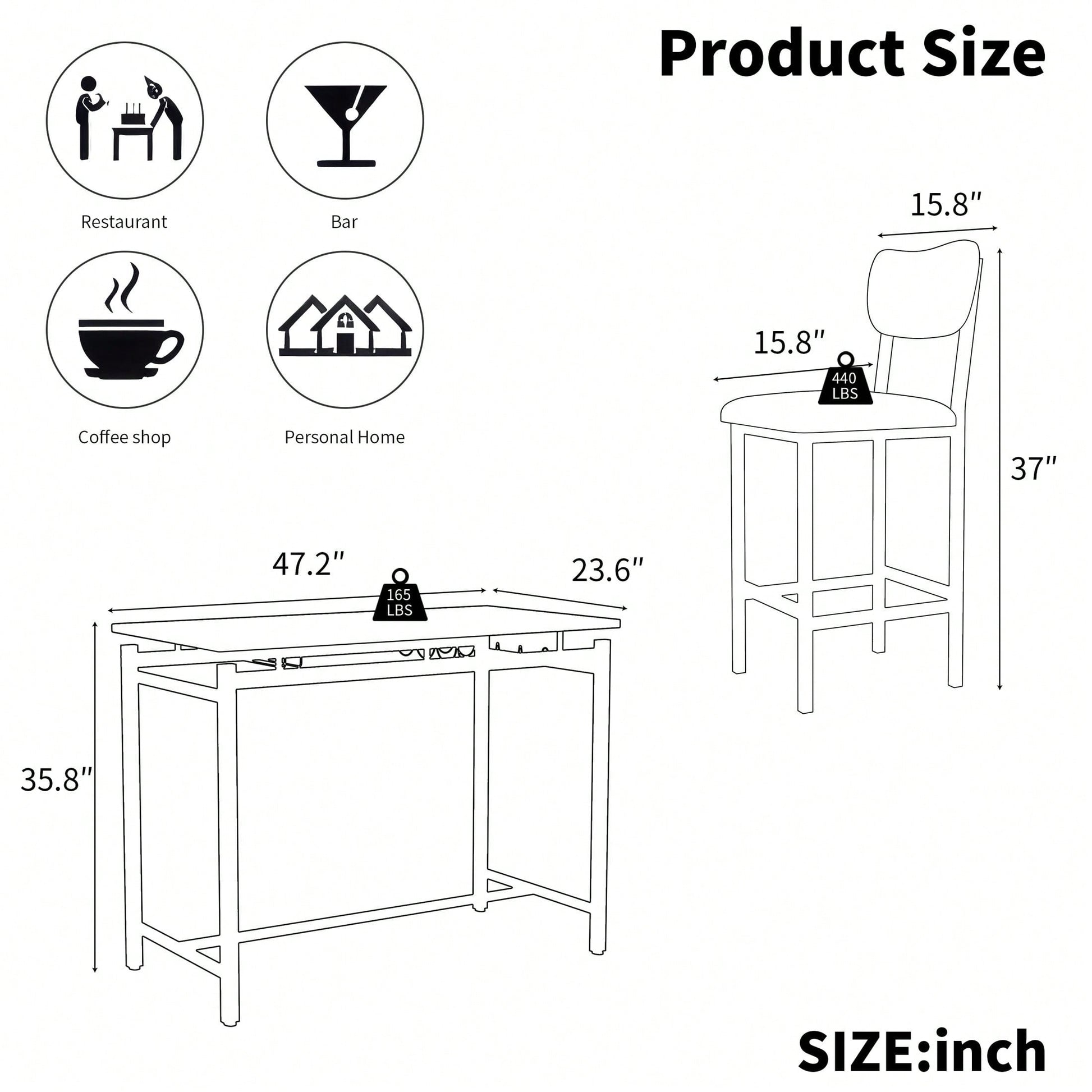 2. Space-saving compact design: 2 high dining chairs can be hidden under the bar kitchen table to save space and create a tidy atmosphere. It is an excellent solution for small spaces, such as condos, kitchens, studios, pubs, or apartments.