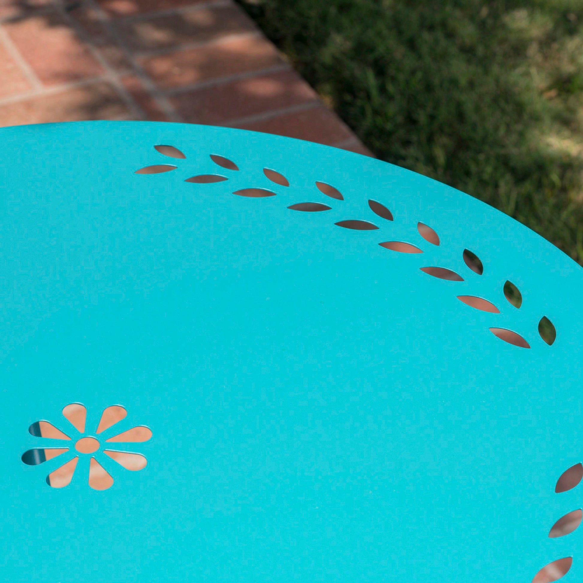 This 3-piece bistro set features a cheerful and whimsical design that invites you to pause and enjoy your surroundings. Made from durable powder-coated iron, it is water-resistant, ensuring it withstands the elements for long-lasting outdoor enjoyment. Perfect for creating a cozy outdoor dining area or a charming spot to relax with a book.