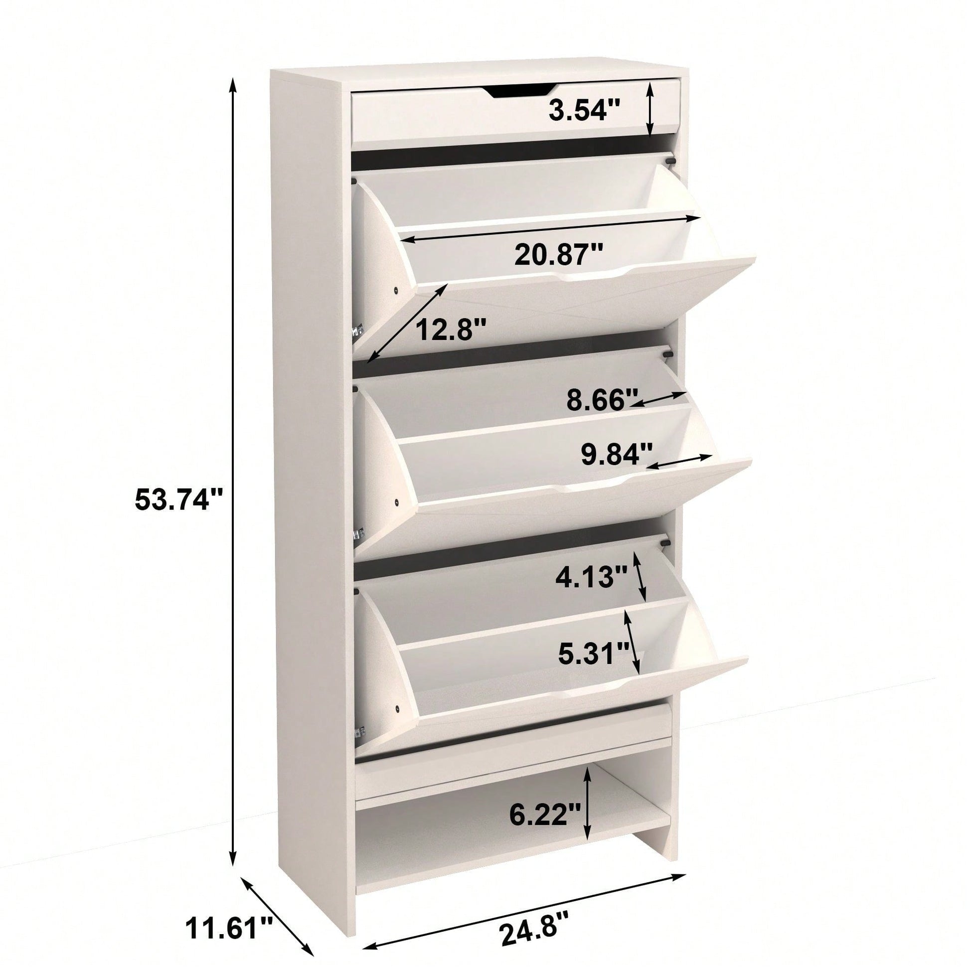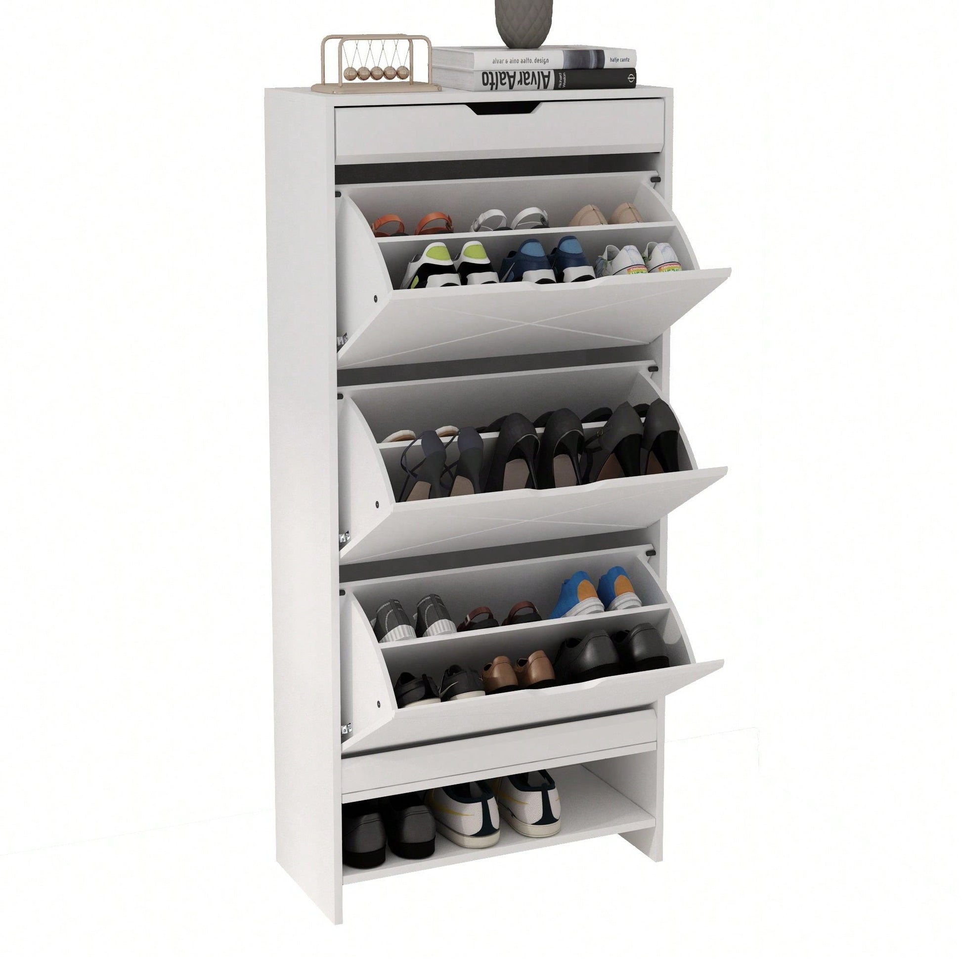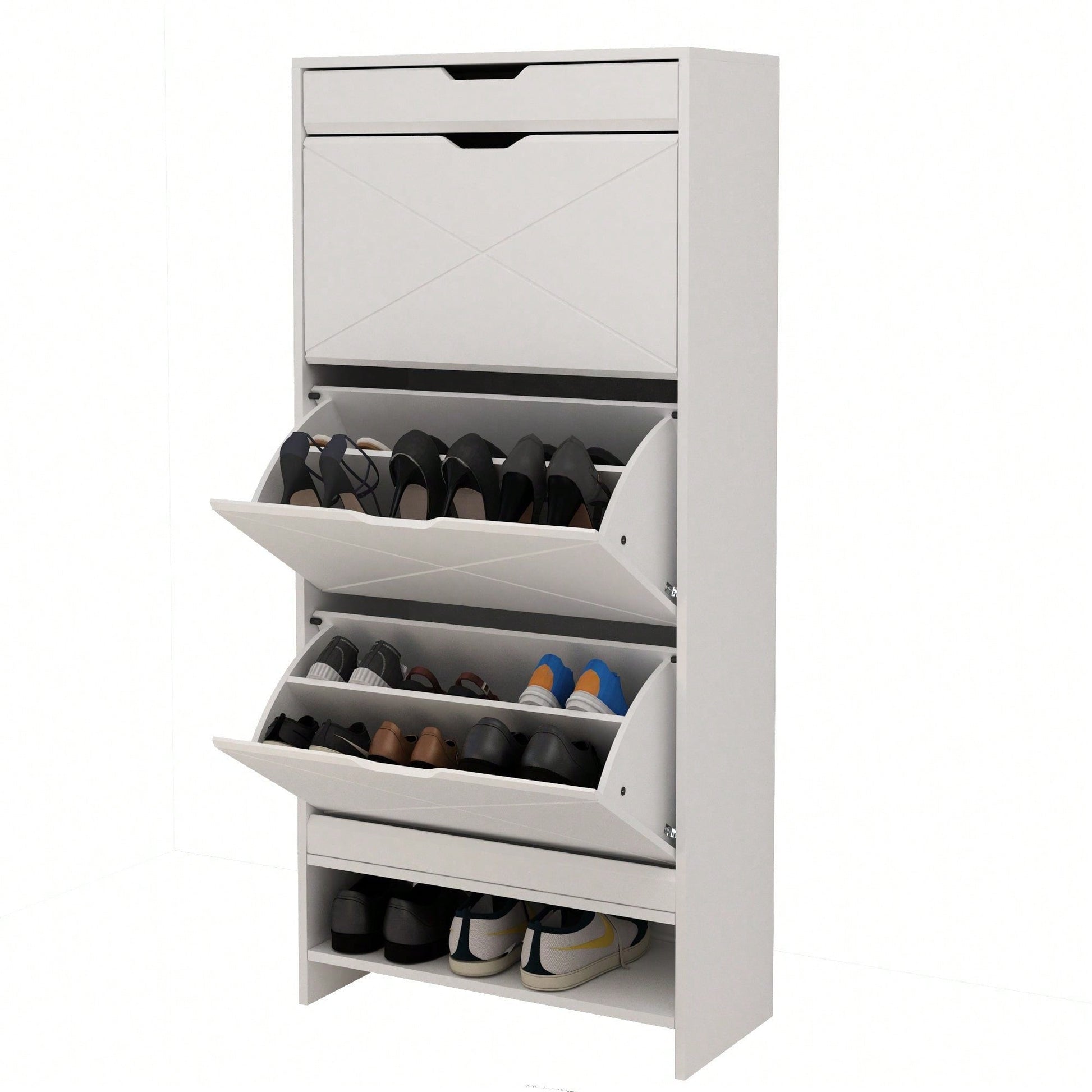 3 Tier Tipping Bucket Shoe Storage Cabinet - White Finish
