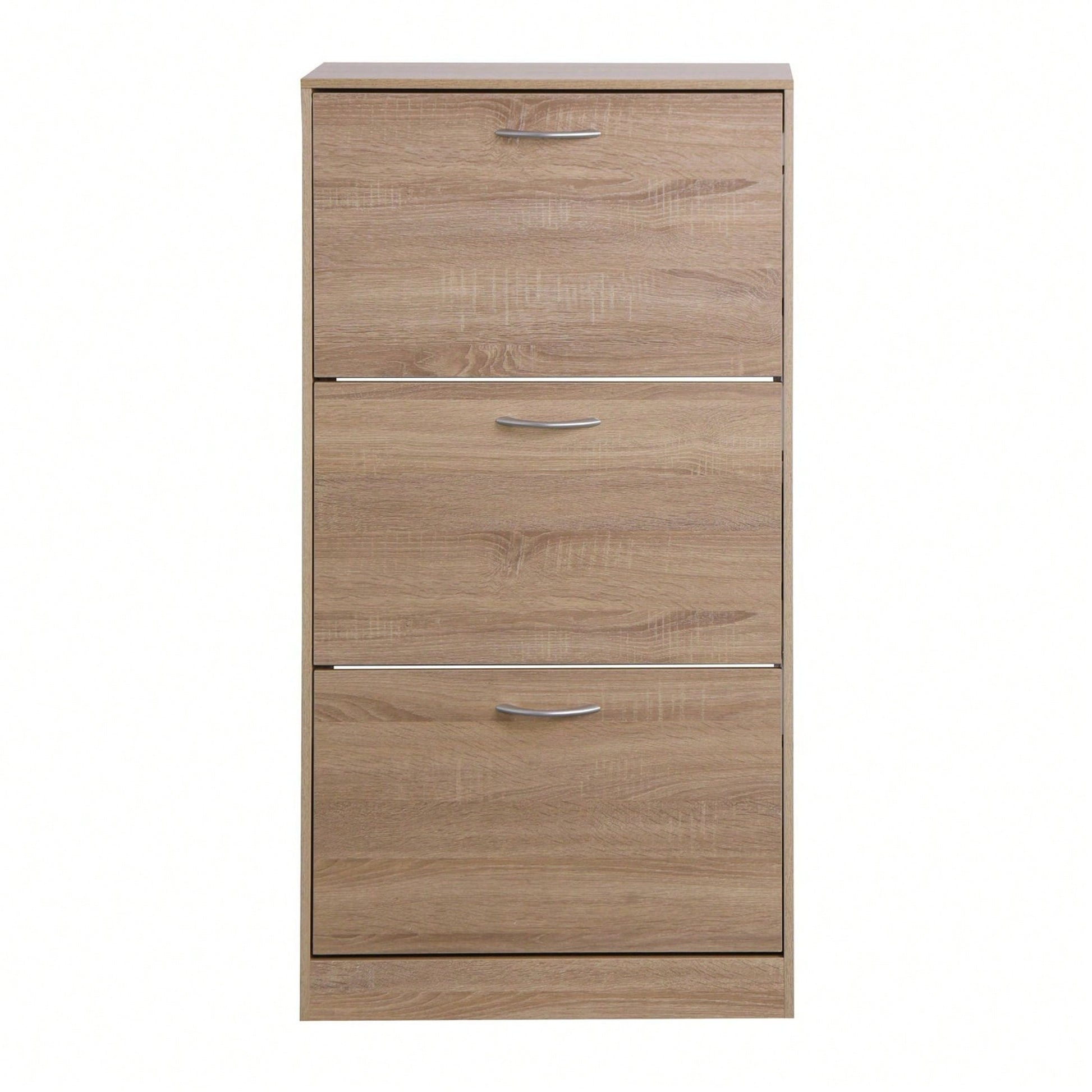 4. Elegant style: 3 drawers shoe cabinet with doors uses wood boards and silver handles to show elegant charm, It's suitable for almost kinds of house decors. This shoe cabinet works great in entryway, closet, hallway, living room, bedroom