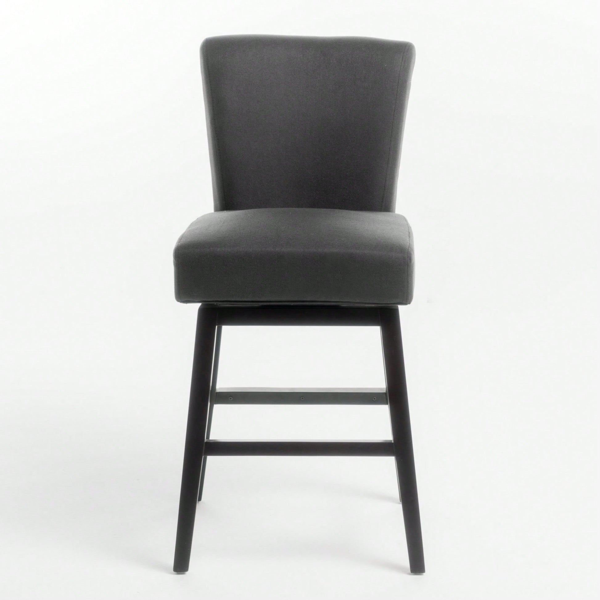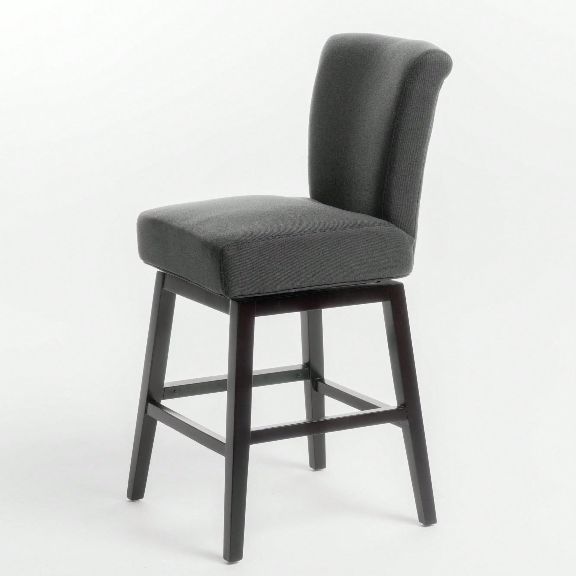 This 30.25'' high swivel bar stool offers a perfect blend of comfort and style. Designed with an ergonomic backrest, it provides exceptional support for your spine, helping to reduce fatigue and promote proper sitting posture. The chair is upholstered in high-quality leather, ensuring a soft, comfortable experience while also being resistant to wear and tear. The swivel feature enhances convenience, allowing for smooth movement and easy interaction with others. The solid wooden legs contribute to the stool's stability and elegance, making it a durable addition to any space.
