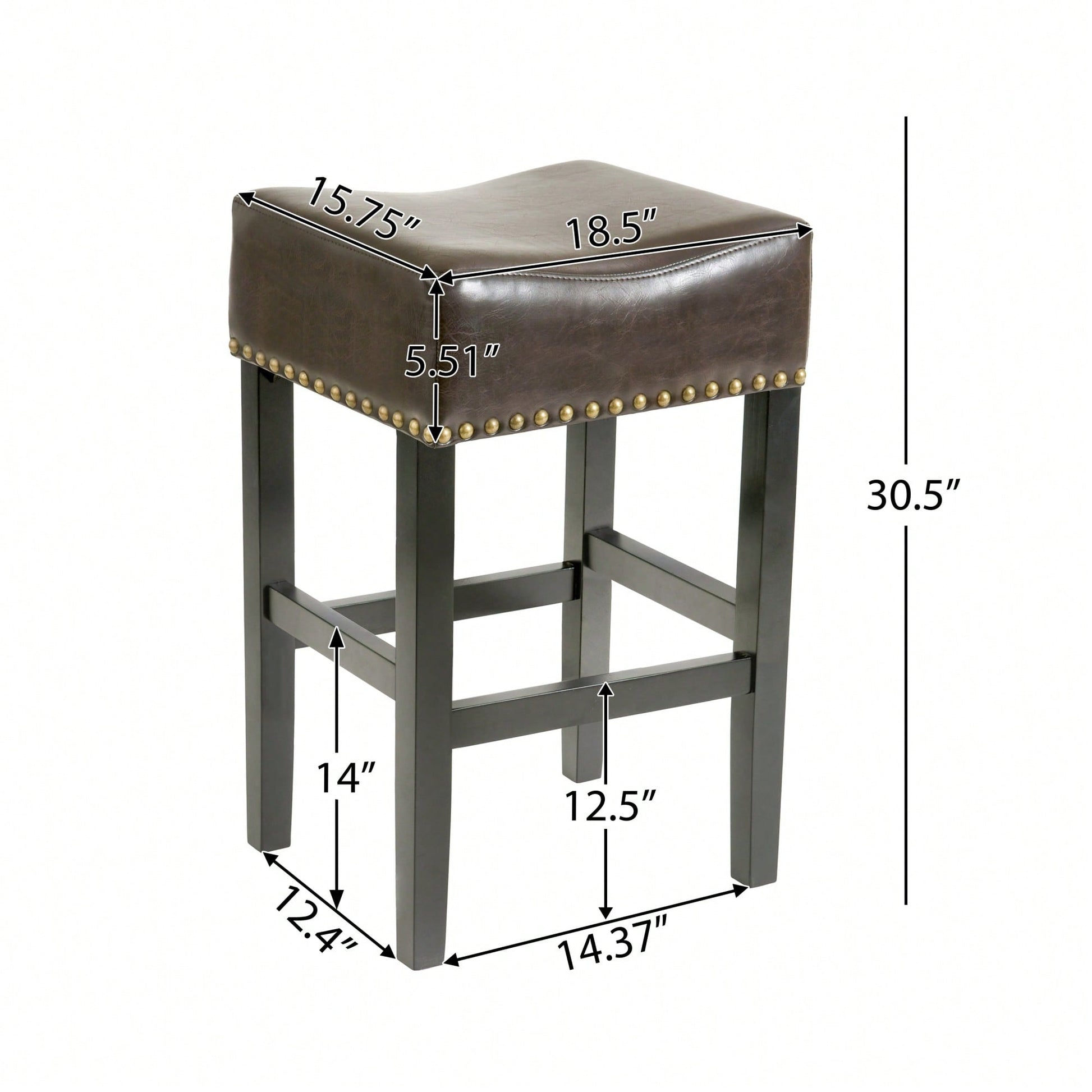 30-Inch Backless Brown Leather Counter Stool Set Of 2 For Kitchen And Dining Use
