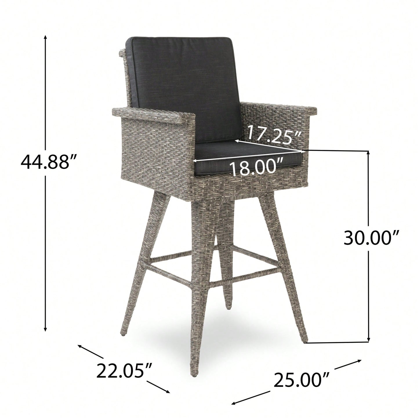 Enhance your outdoor space with this elegant 30" barstool, designed for both comfort and style. The faux rattan construction adds a contemporary touch, while the water-resistant cushions provide lasting comfort, making it perfect for outdoor gatherings. The mixed black wicker finish complements various decor styles, and the sturdy iron frame guarantees durability. Ideal for patios, decks, or outdoor bars, this barstool is a functional and stylish addition to your outdoor furniture collection.