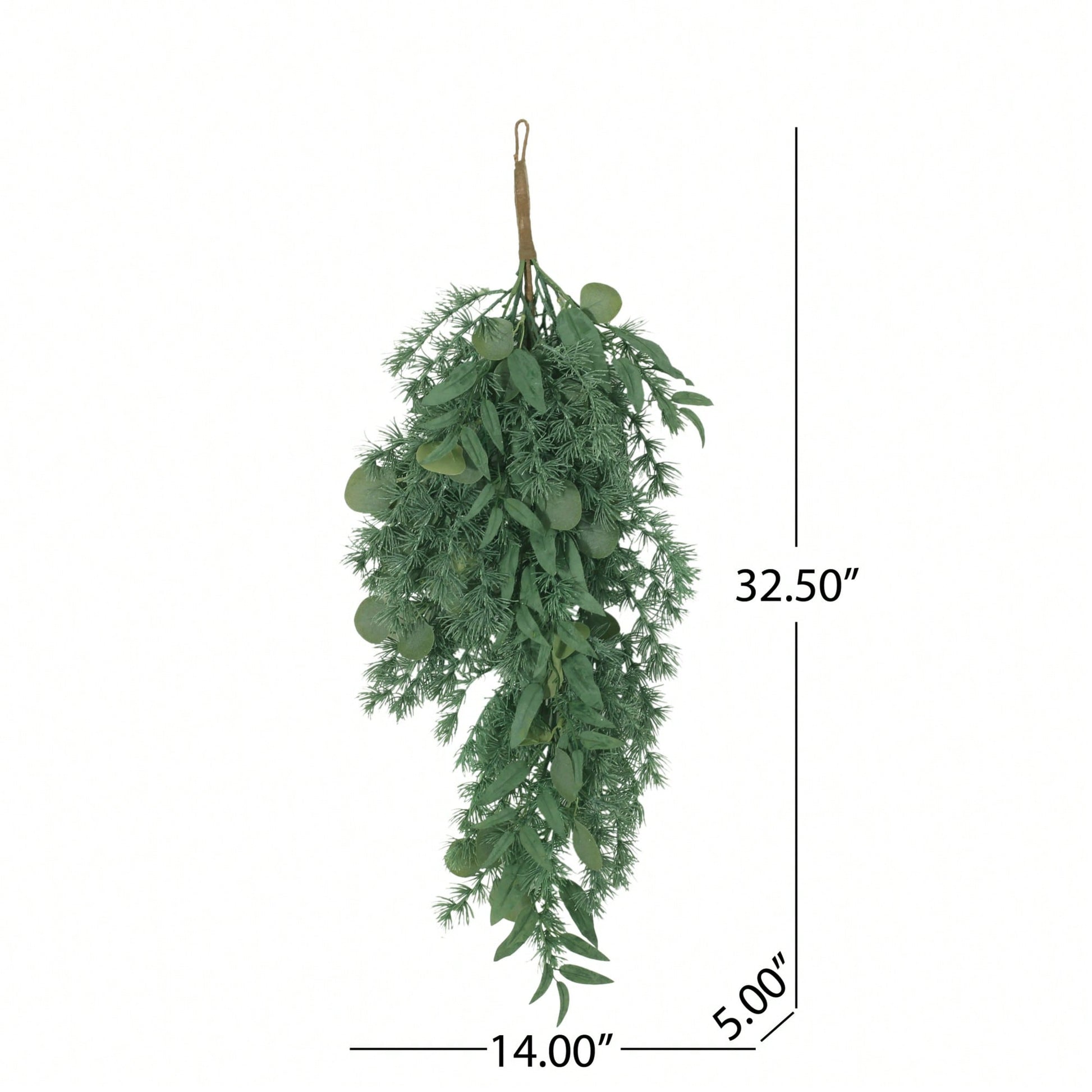 Enhance your home's ambiance with this stunning teardrop wreath, perfect for adding a refreshing splash of green. Its lightweight construction ensures that it maintains a full and lush appearance, making it effortless to move and display in different areas of your home. The dimensions are thoughtfully designed at 14.00" in width, 5.00" in depth, and 32.50" in height, allowing it to fit gracefully in both small and large spaces. When you receive your wreath, it comes ready for use; all you need to do is fluff the branches to achieve your desired look. This beautiful accessory will surely draw compliments from guests and transform your space effortlessly.