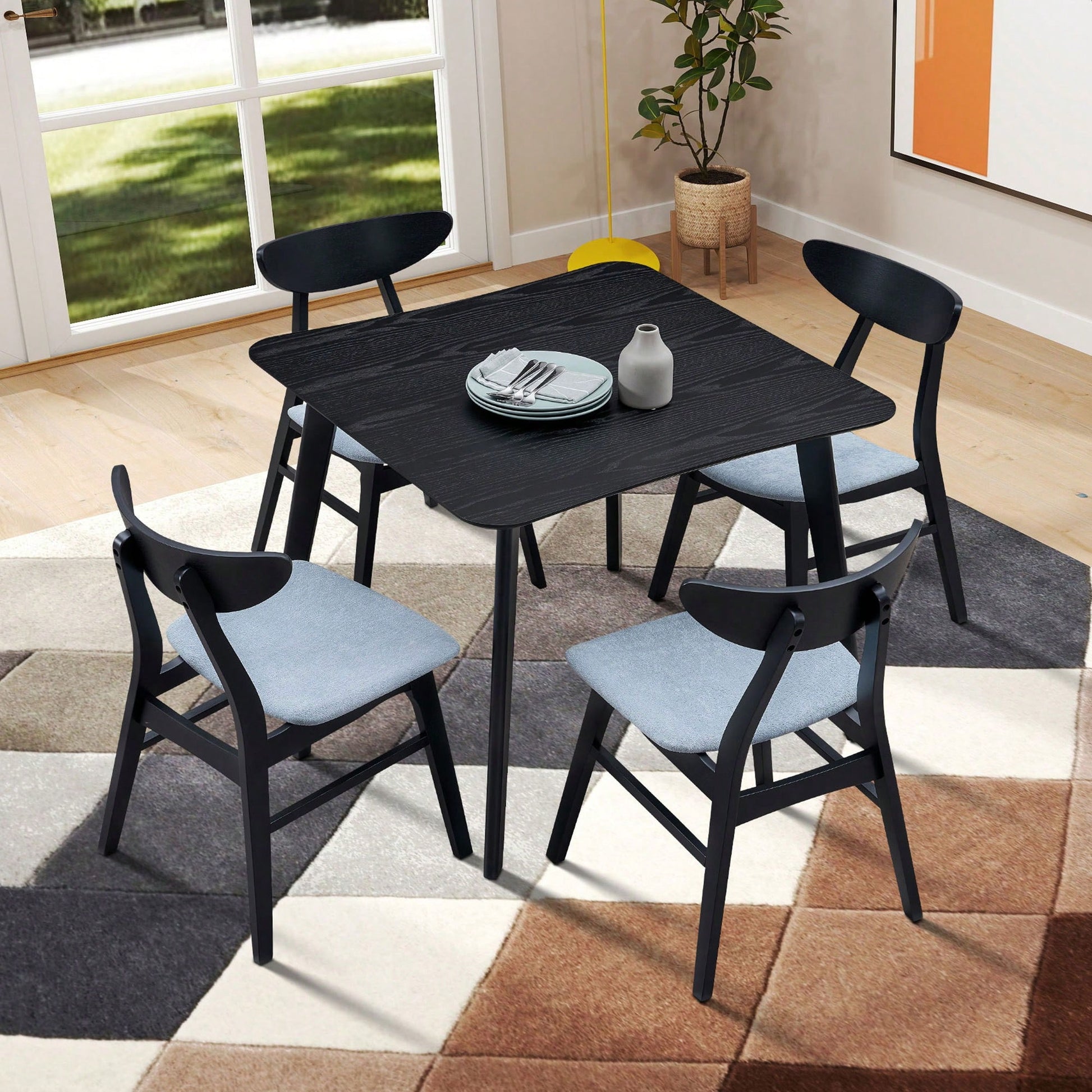 35.43 Inch Space-Saving Wooden Dining Table For 4, Modern Square Kitchen Table For Living Room, Apartment, And Restaurant, Black Finish