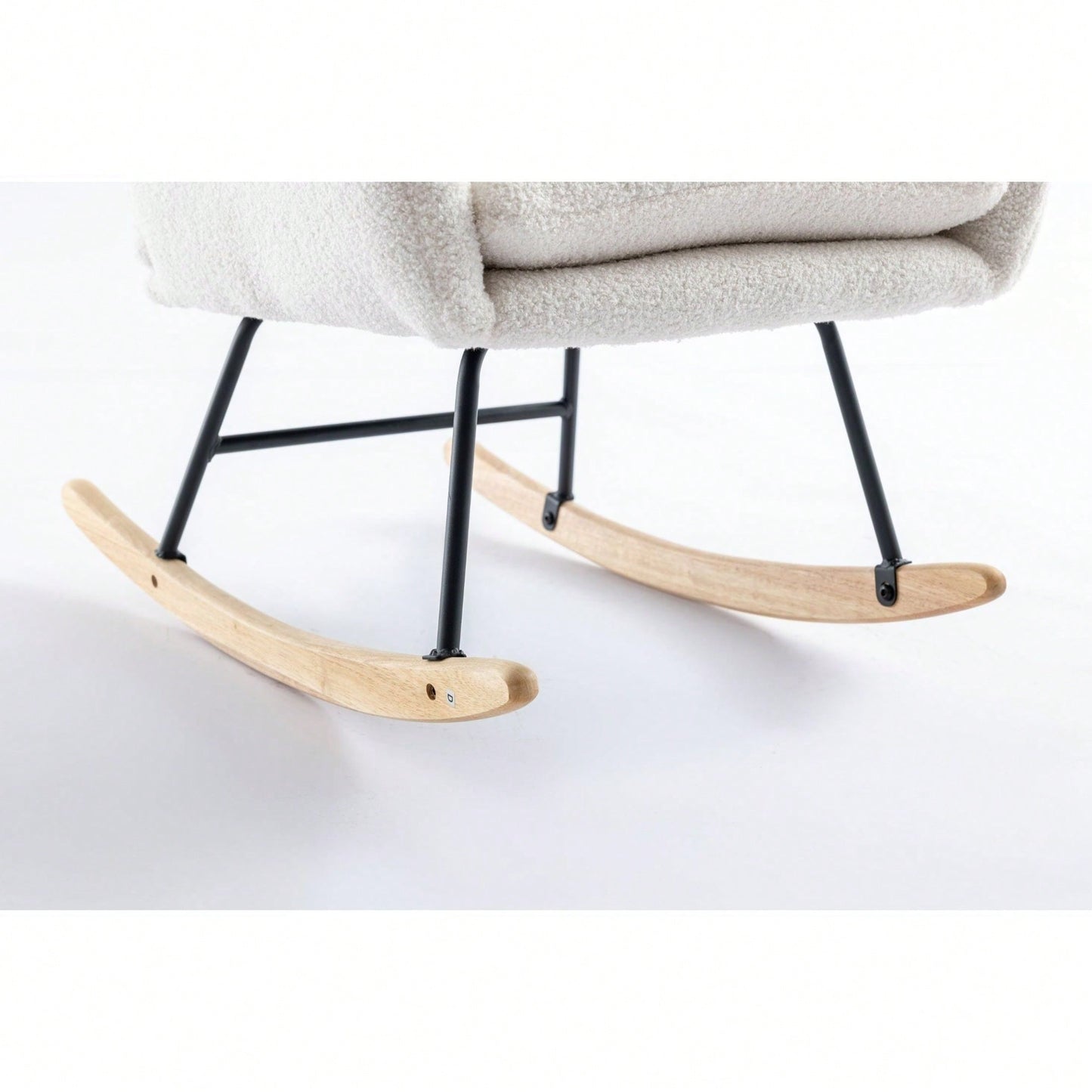 Soft Teddy Velvet Rocking Chair 35.5 Inch Wingback Glider for Nursery Living Room Bedroom Safe Solid Wood Base
