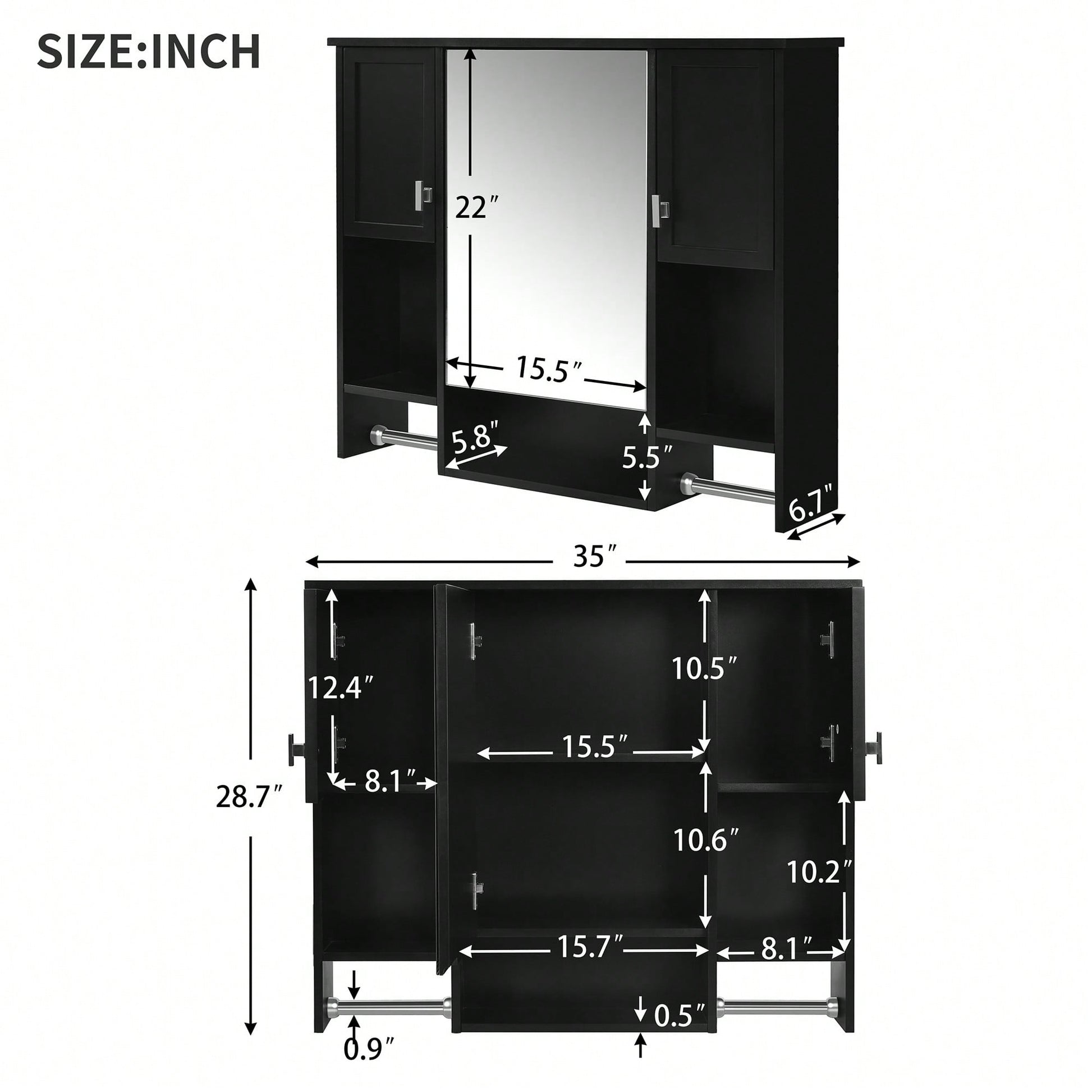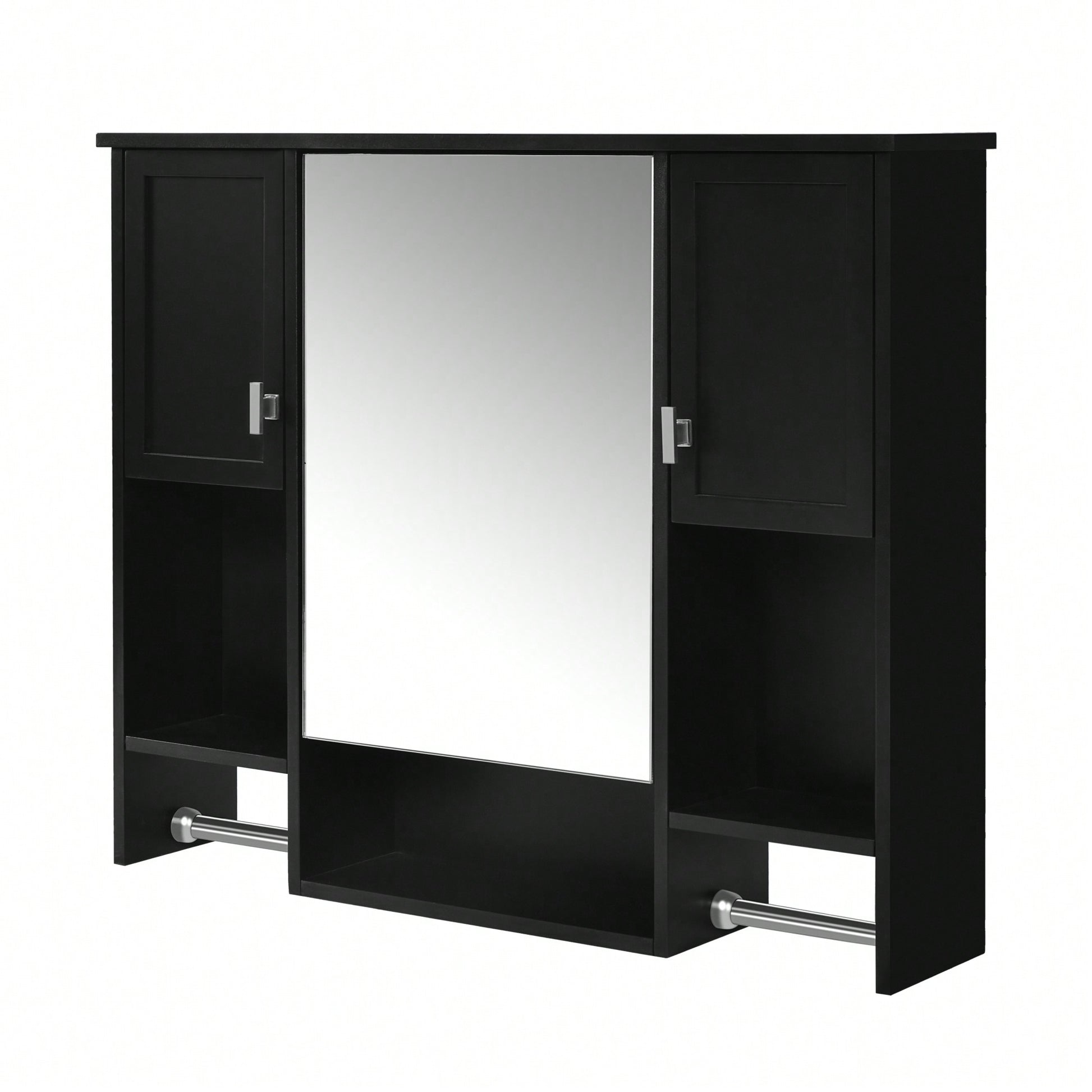35x28 Inch Modern Wall Mounted Bathroom Storage Cabinet With Mirror And Towel Bar