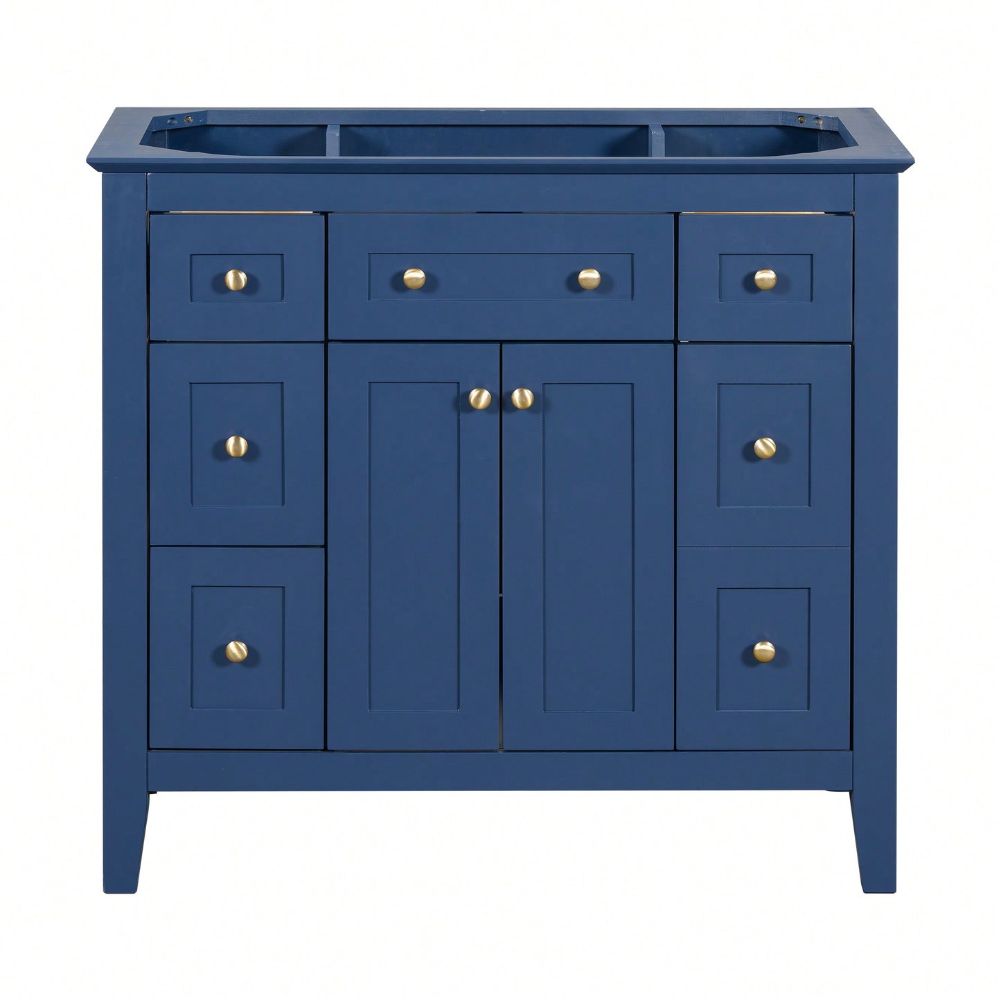 36 Inch Modern Freestanding Bathroom Vanity Cabinet With 6 Drawers And 2 Cabinets, Solid Wood Frame Storage In Blue, Sink Not Included