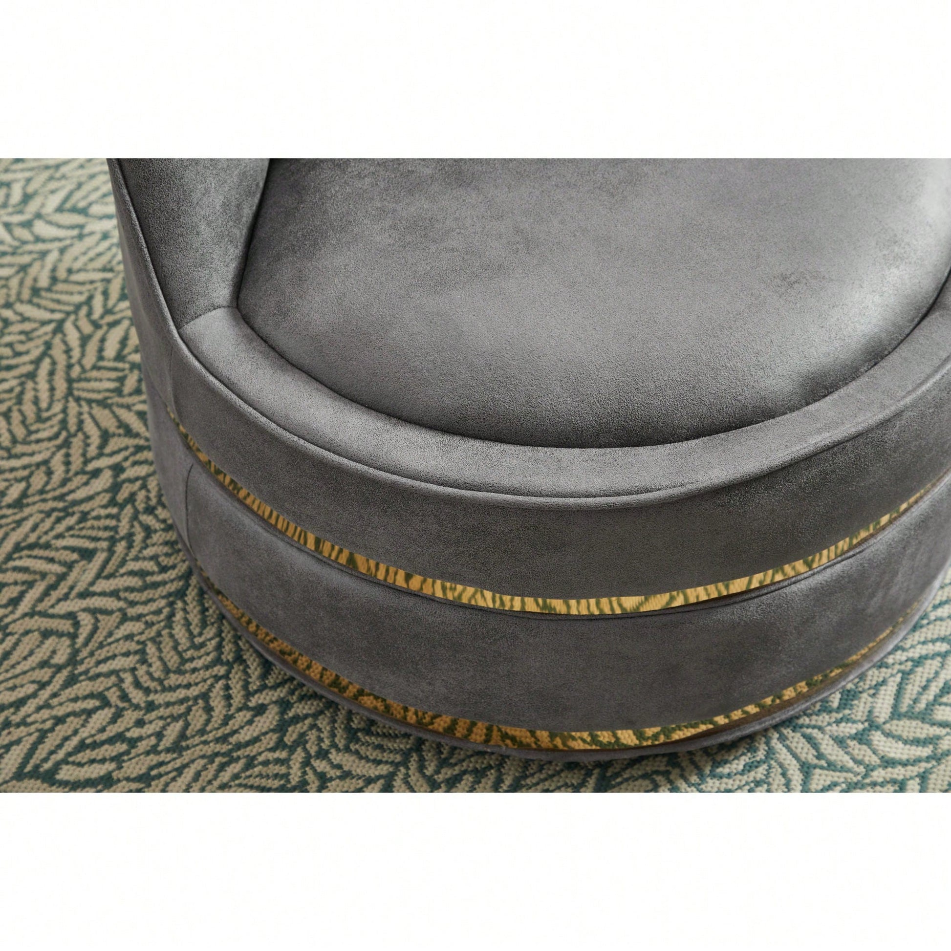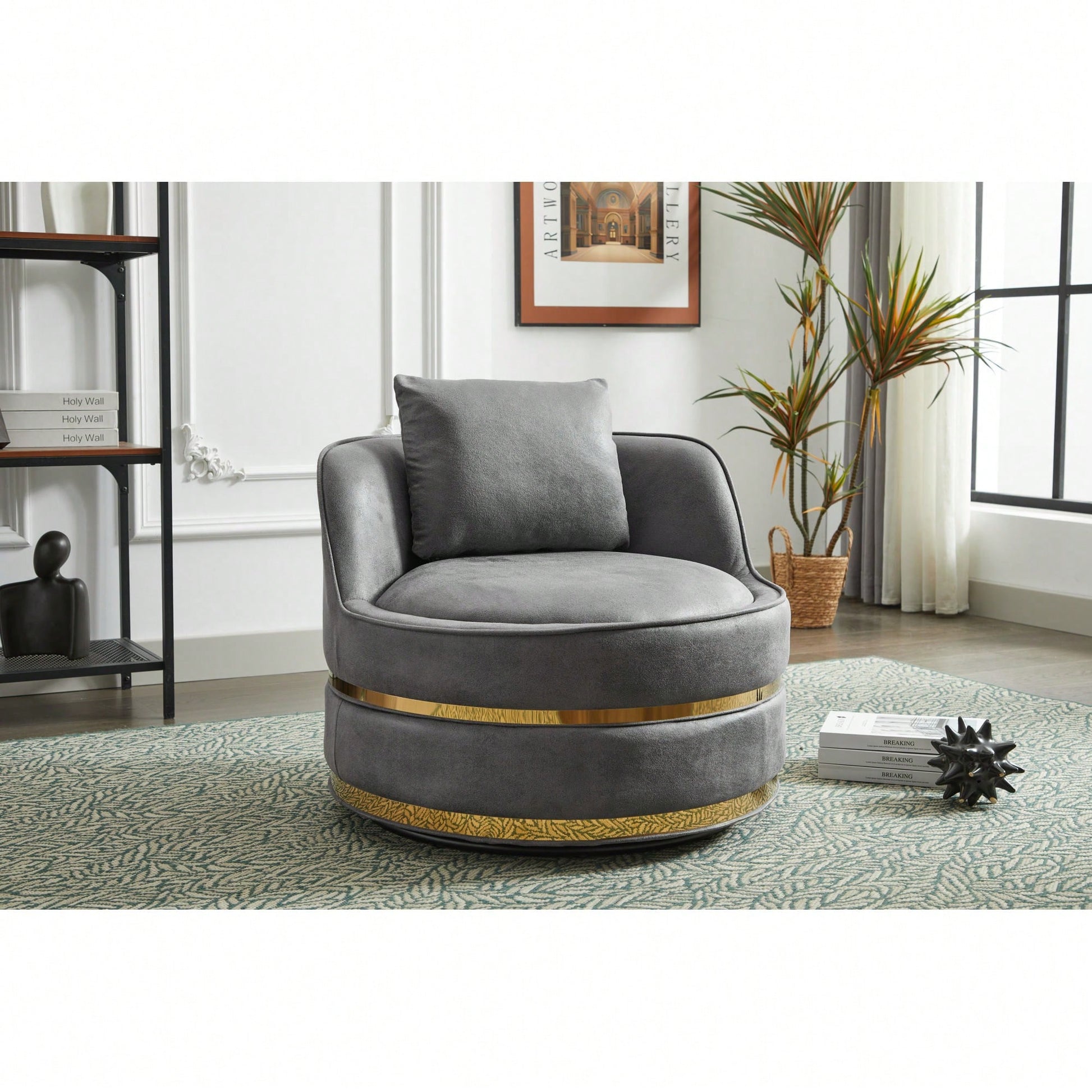 This 360 swivel accent chair features a stylish barrel design that allows you to effortlessly rotate in any direction while seated. The soft velvet material provides a luxurious feel, making it perfect for relaxation in any setting. Built with a robust plywood frame and a sturdy stainless steel base, this chair ensures lasting durability and stability. Its versatile design makes it an ideal addition to your living room, bedroom, office, or lounge area, seamlessly complementing any decor style. Easy to assemble in just 5 minutes, this accent chair is both functional and aesthetically .