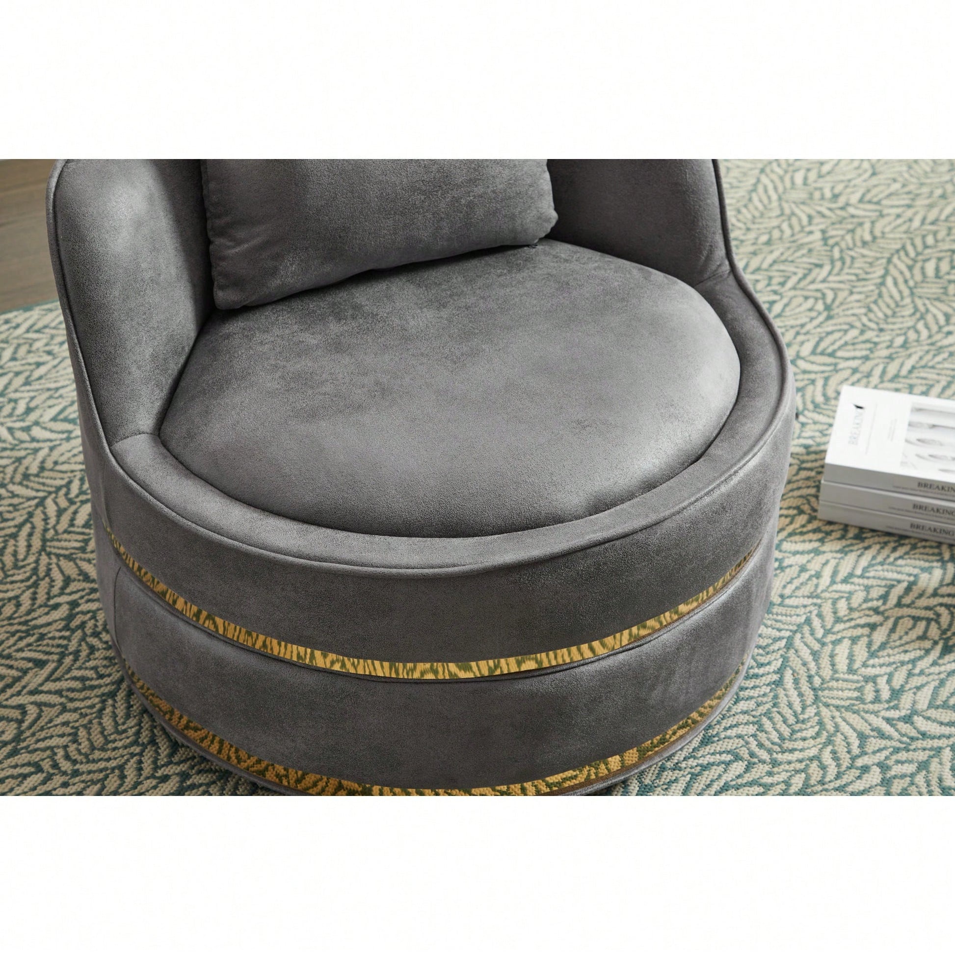 360 Degree Swivel Accent Chair Faux Leather Barrel Design Padded Club Chair For Living Room Bedroom Study Waiting Room