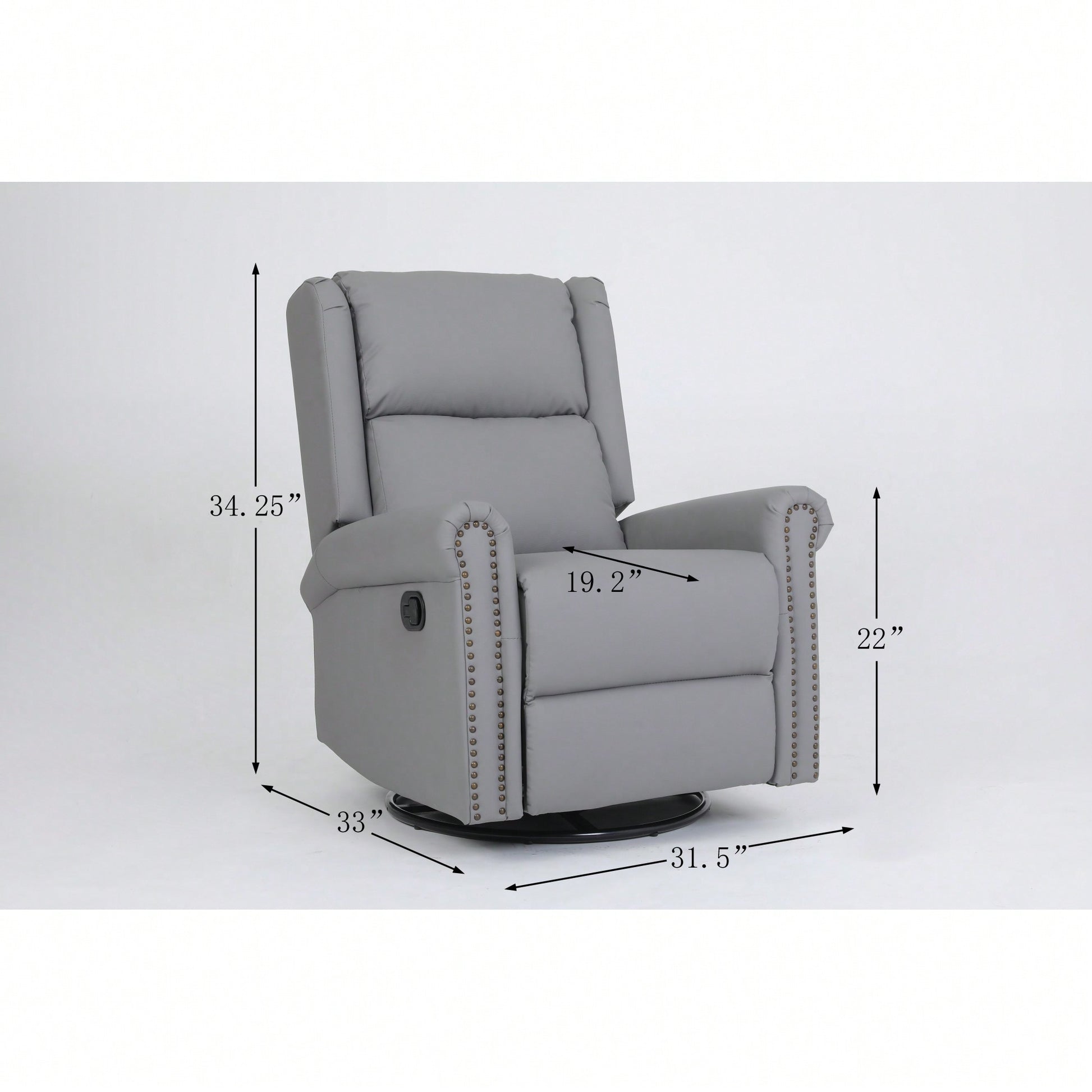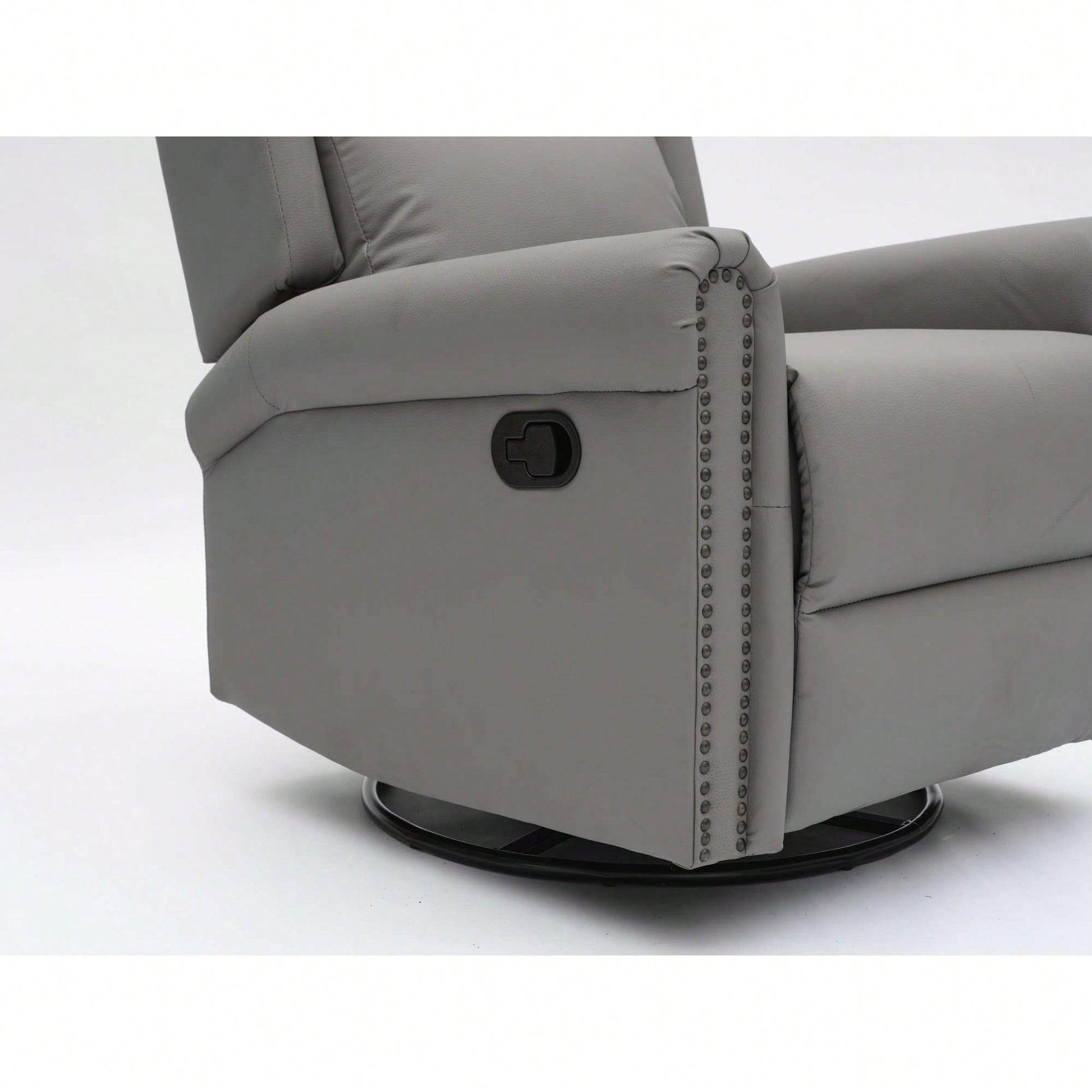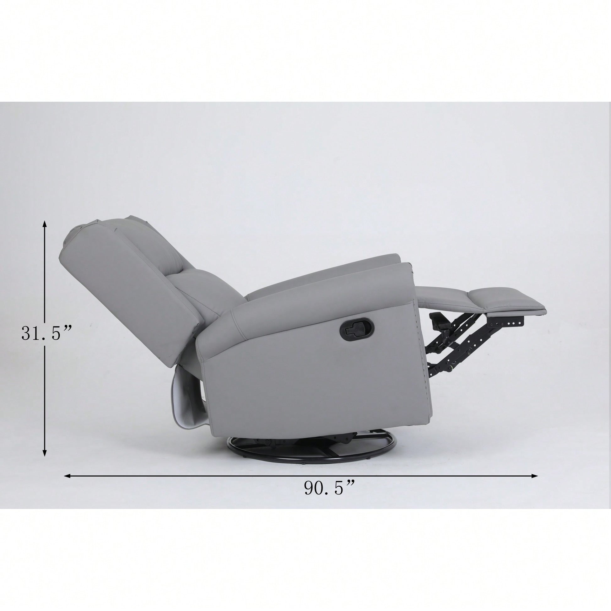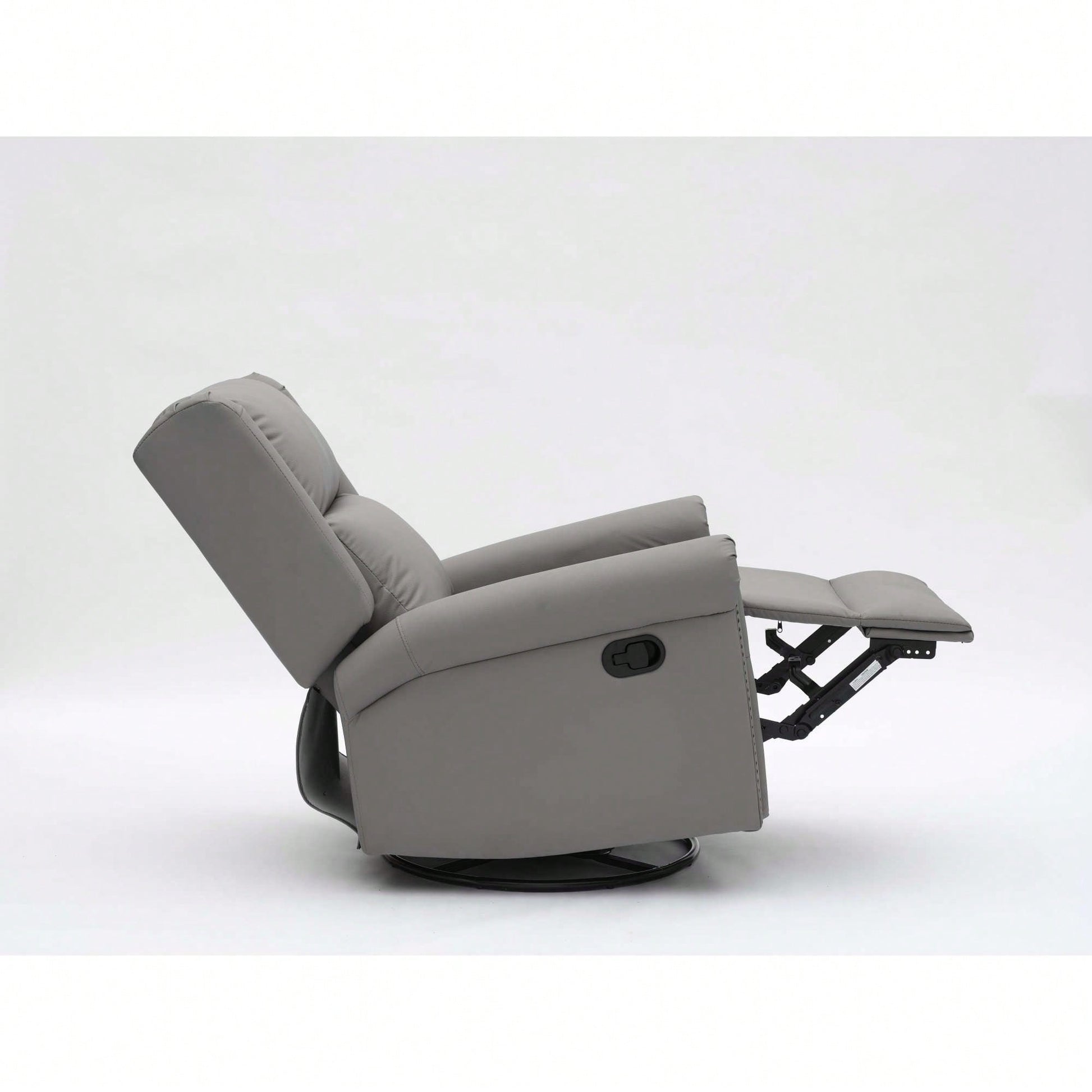 1. Key Features - 360-degree swivel function for versatile seating - Adjustable backrest up to 160° for personalized comfort - Extendable footrest for optimal relaxation - Cushioned seat and high back for supportive seating - Sturdy metal and wooden frame for enhanced stability 2. Product Description This upholstered manual recliner is designed for ultimate comfort in your living room. The adjustable backrest allows you to find your perfect angle, while the extendable footrest provides additional relaxation. With a cozy cushioned seat and supportive high back, this recliner ensures a comfortable seating experience. The armrests add extra comfort, making it a great choice for lounging. Its sturdy construction features a metal and wooden frame, ensuring stability and safety for everyday use. Assembly is easy with all necessary components included in one package. Specifications: - Reclining angle: Up to 160° - Frame material: Metal and wood - Padding: High-density foam - Assembly: Required, with included components - Swivel function: Yes
