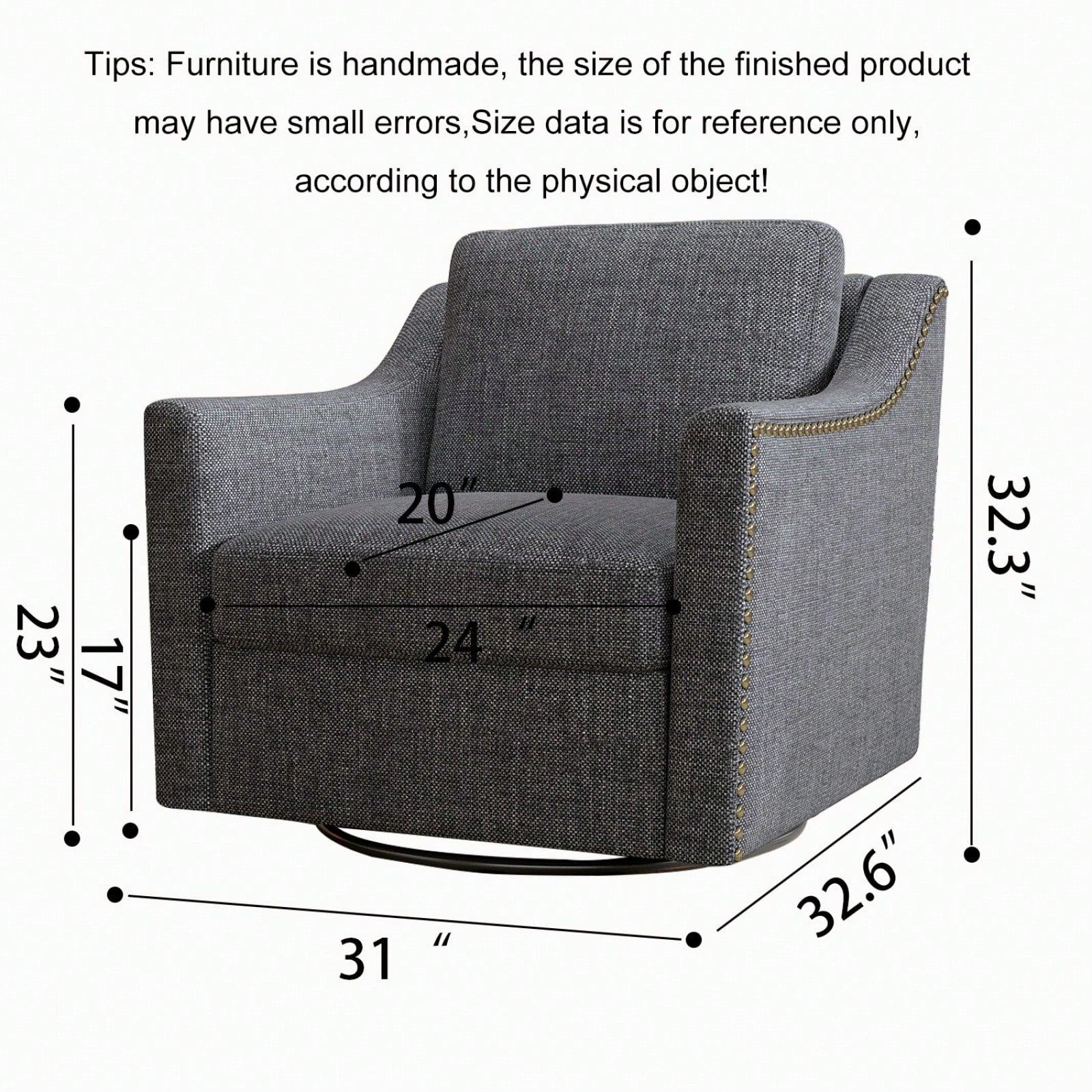 Ergonomic 360° Swivel Accent Chair Soft Cotton Linen Upholstered Armchair for Living Room Bedroom Office