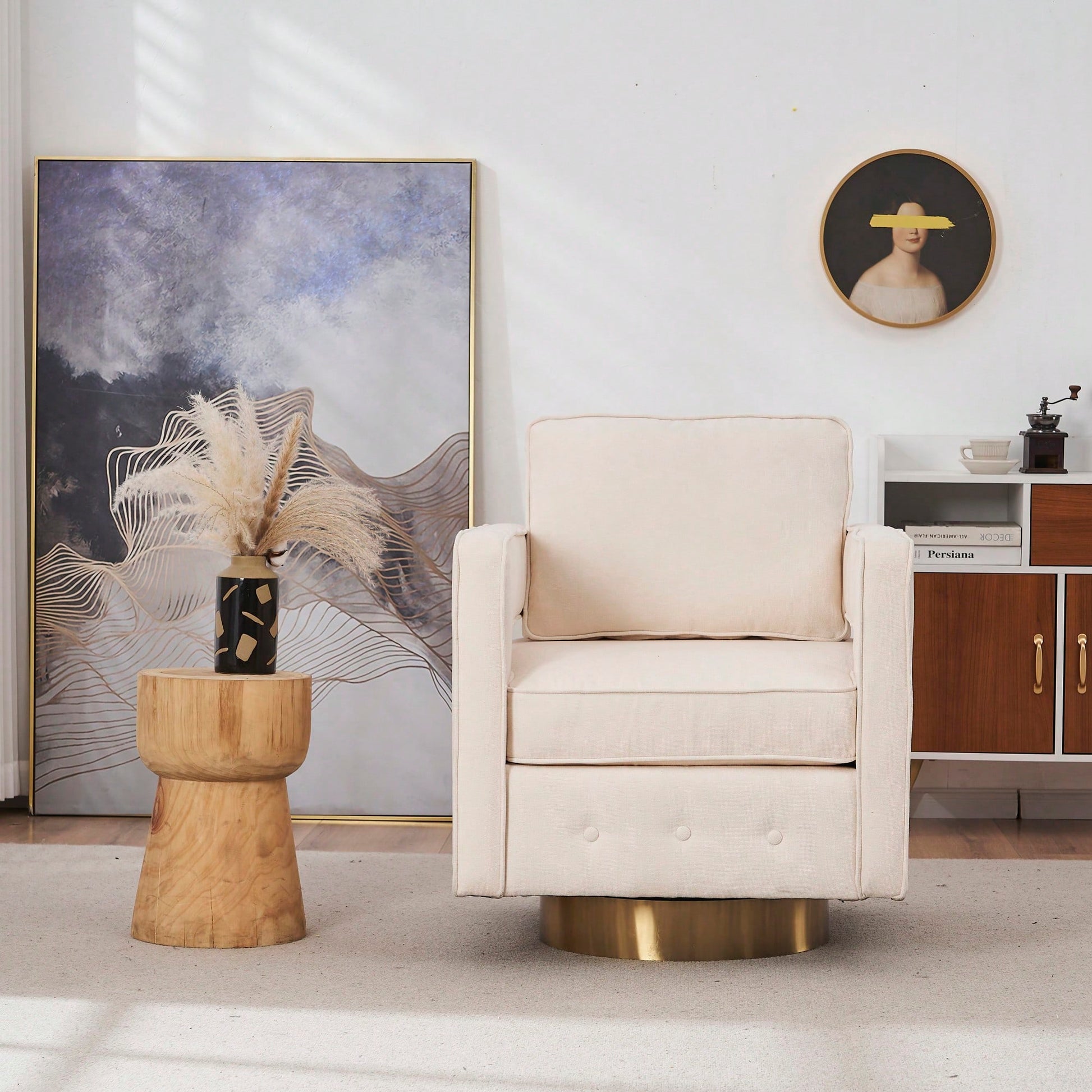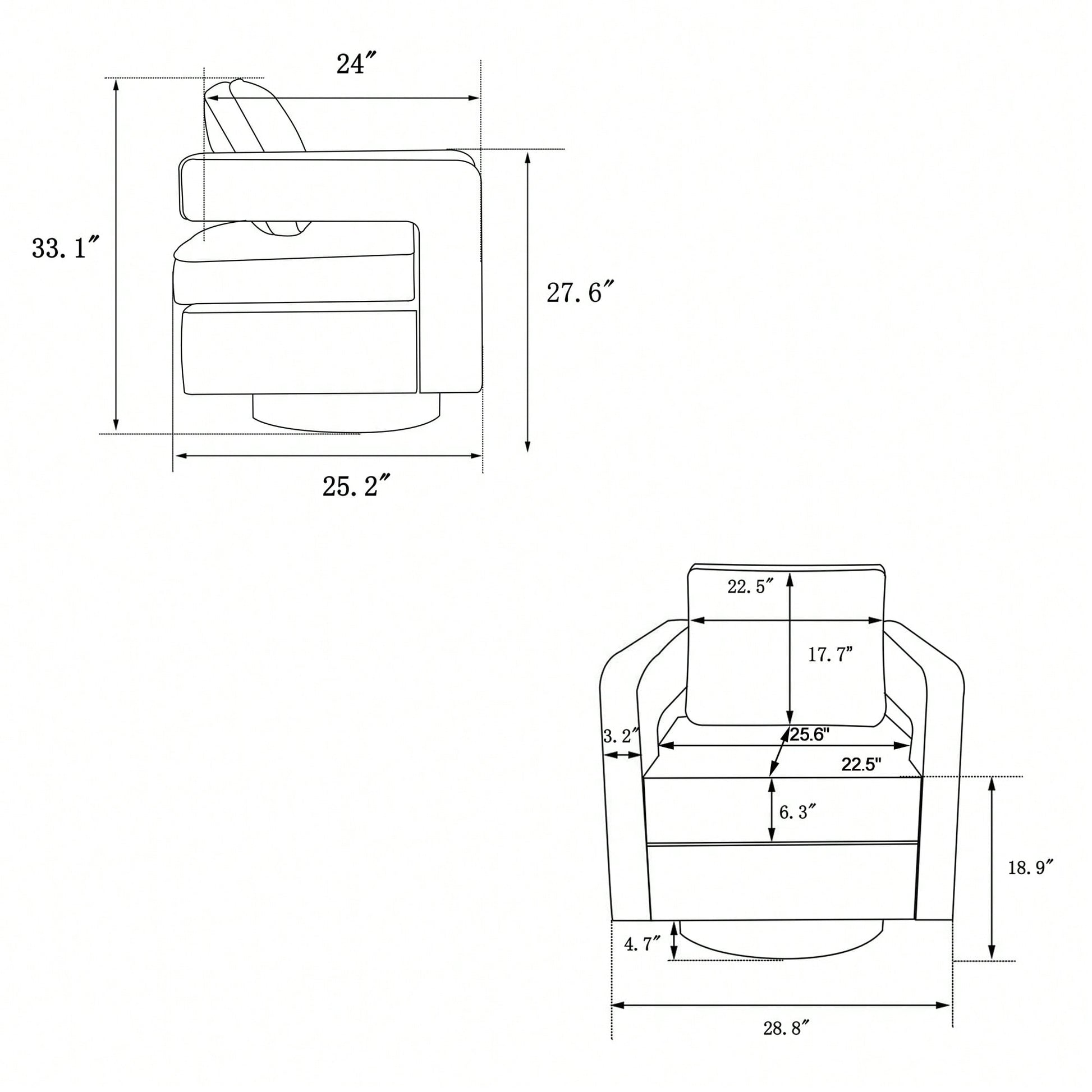 This modern accent chair combines style, comfort, and functionality, making it an excellent addition to any living space, nursery, hotel, or office. Featuring a sleek design with track arms and a hidden 360-degree swivel mechanism, it allows for easy movement without sacrificing stability. The chair is upholstered in a soft and flexible linen fabric that feels luxurious against the skin, while the premium high-density sponge seat cushion ensures a comfortable sitting experience.