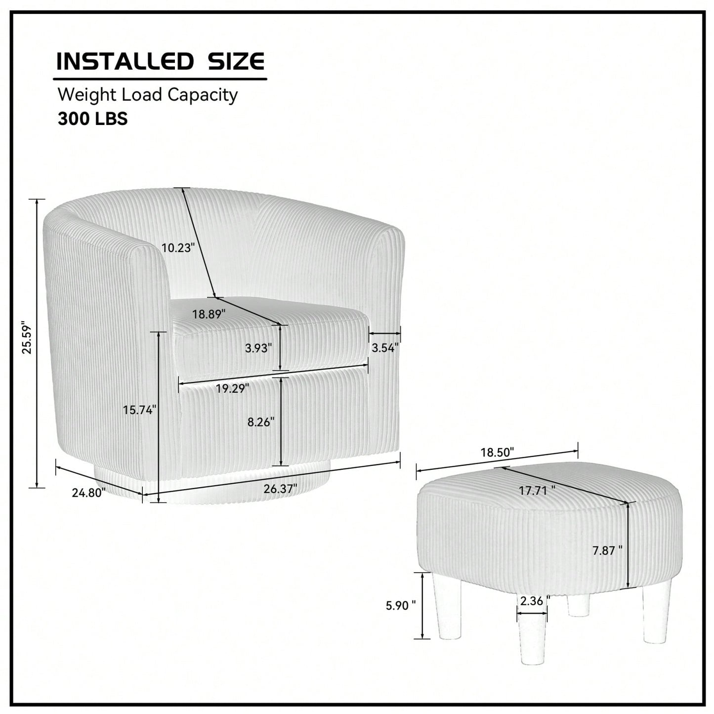 - Product Dimension: Chair - 25.59*19.29*26.77 inch, Ottoman - 17.72*18.50*13.78 inch
