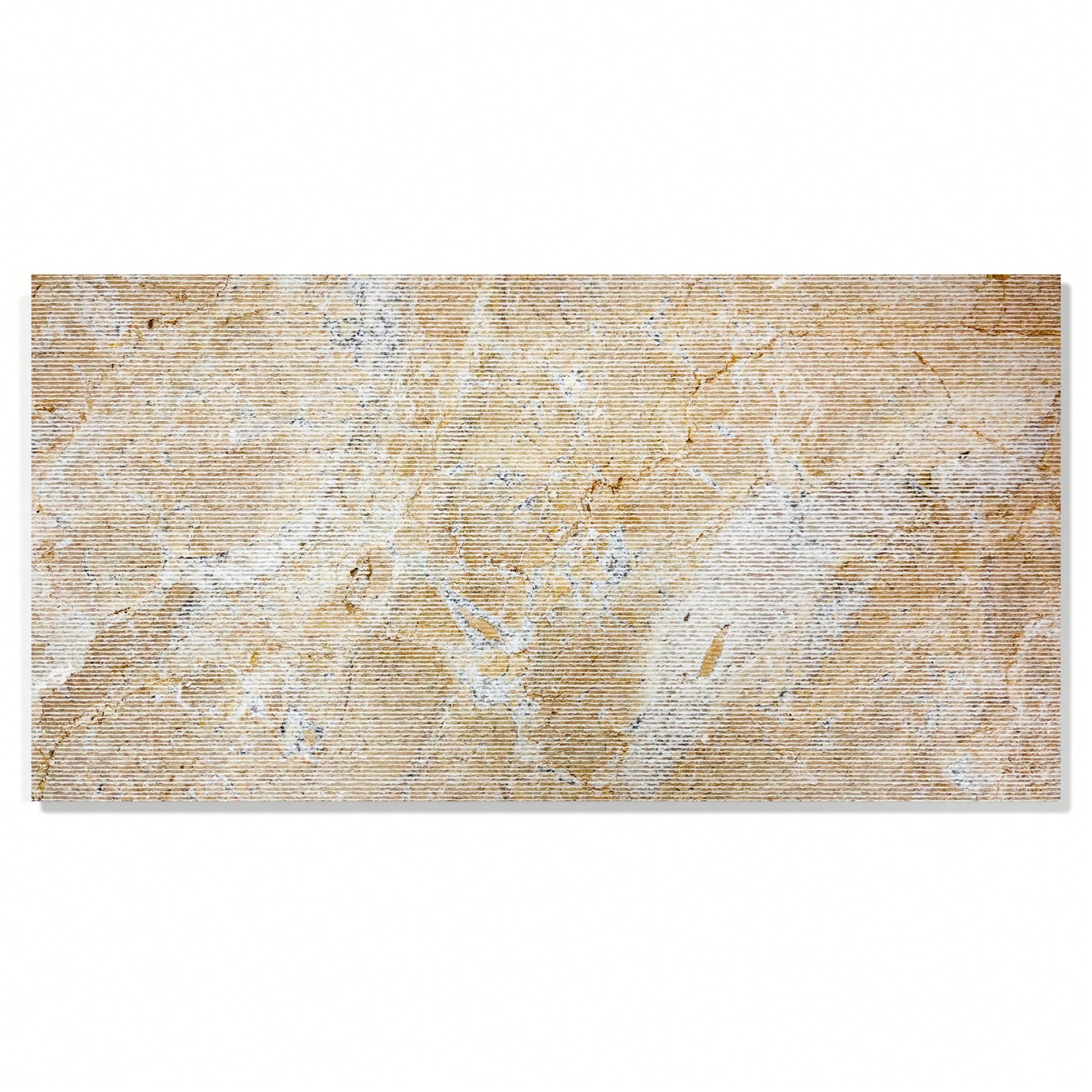 3D Fluted Gold Yellow Beige Natural Marble Wall Tile Textured Finish 12x24 Inches