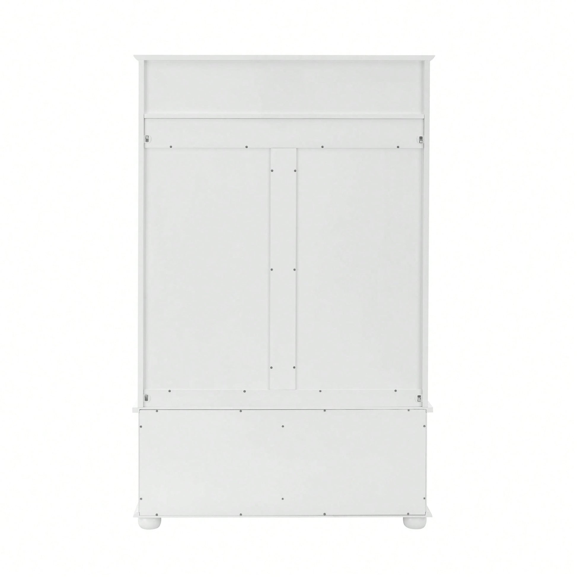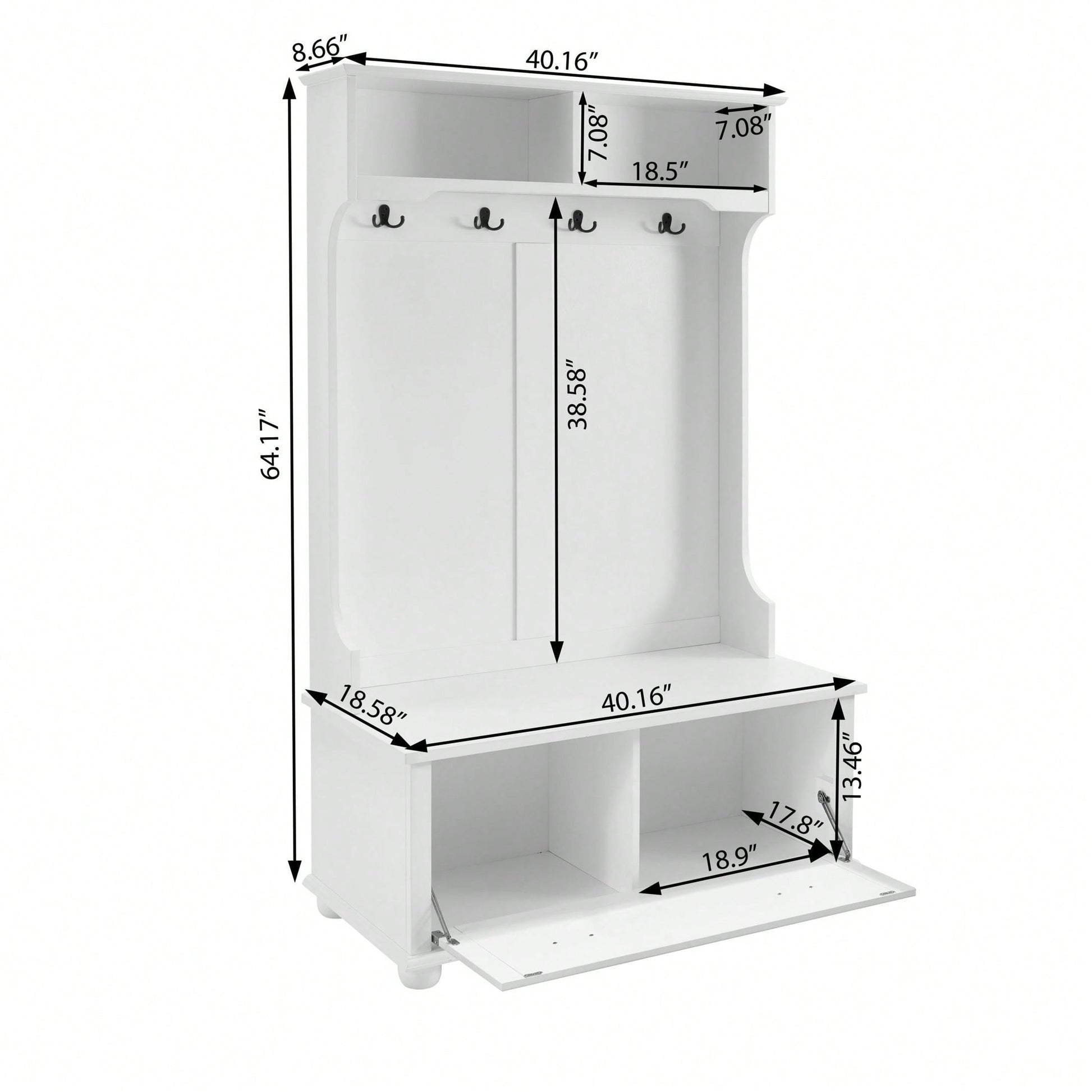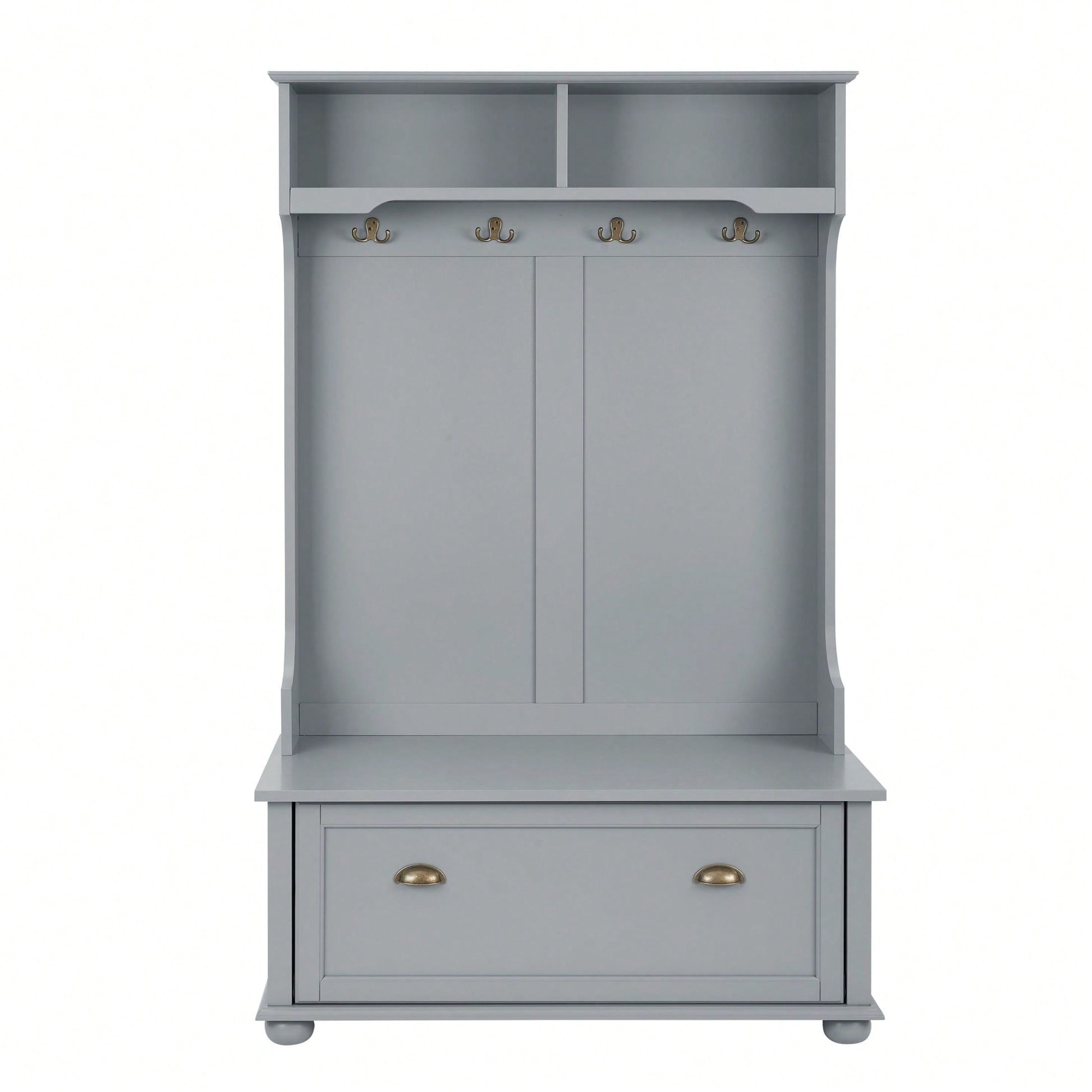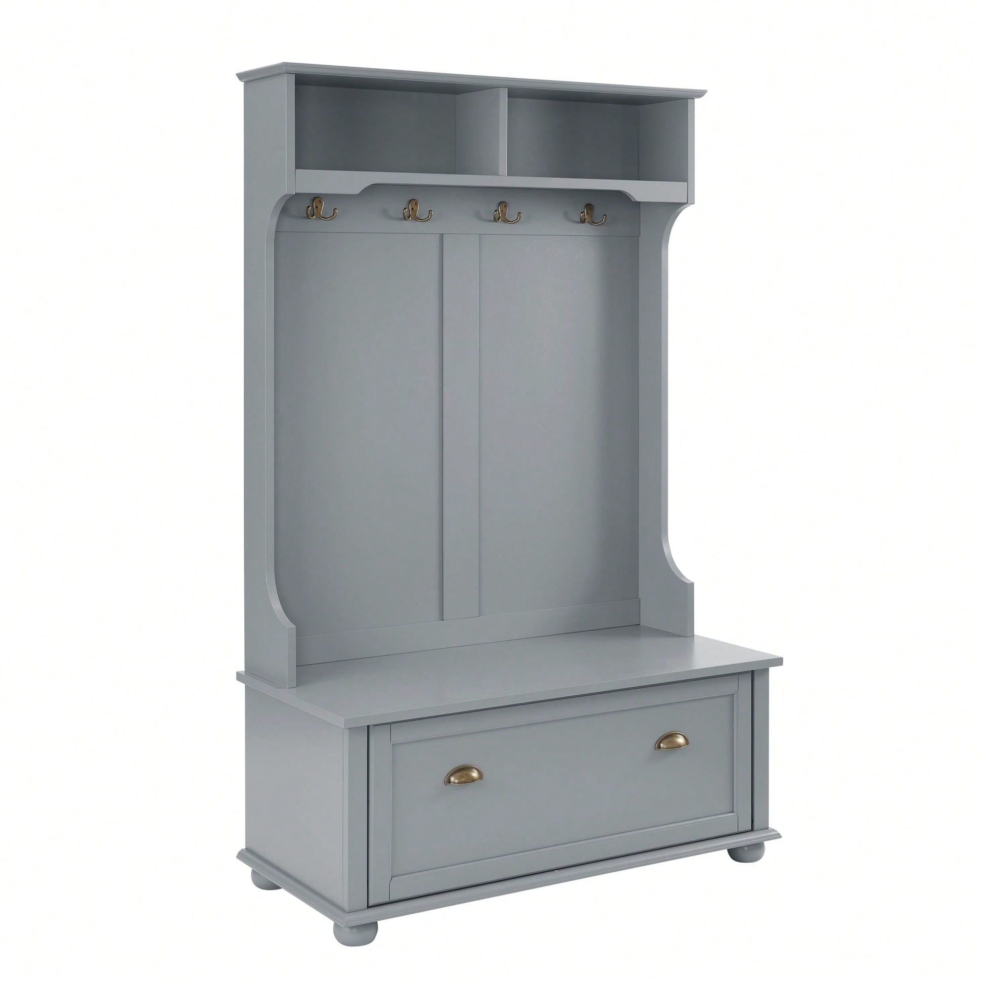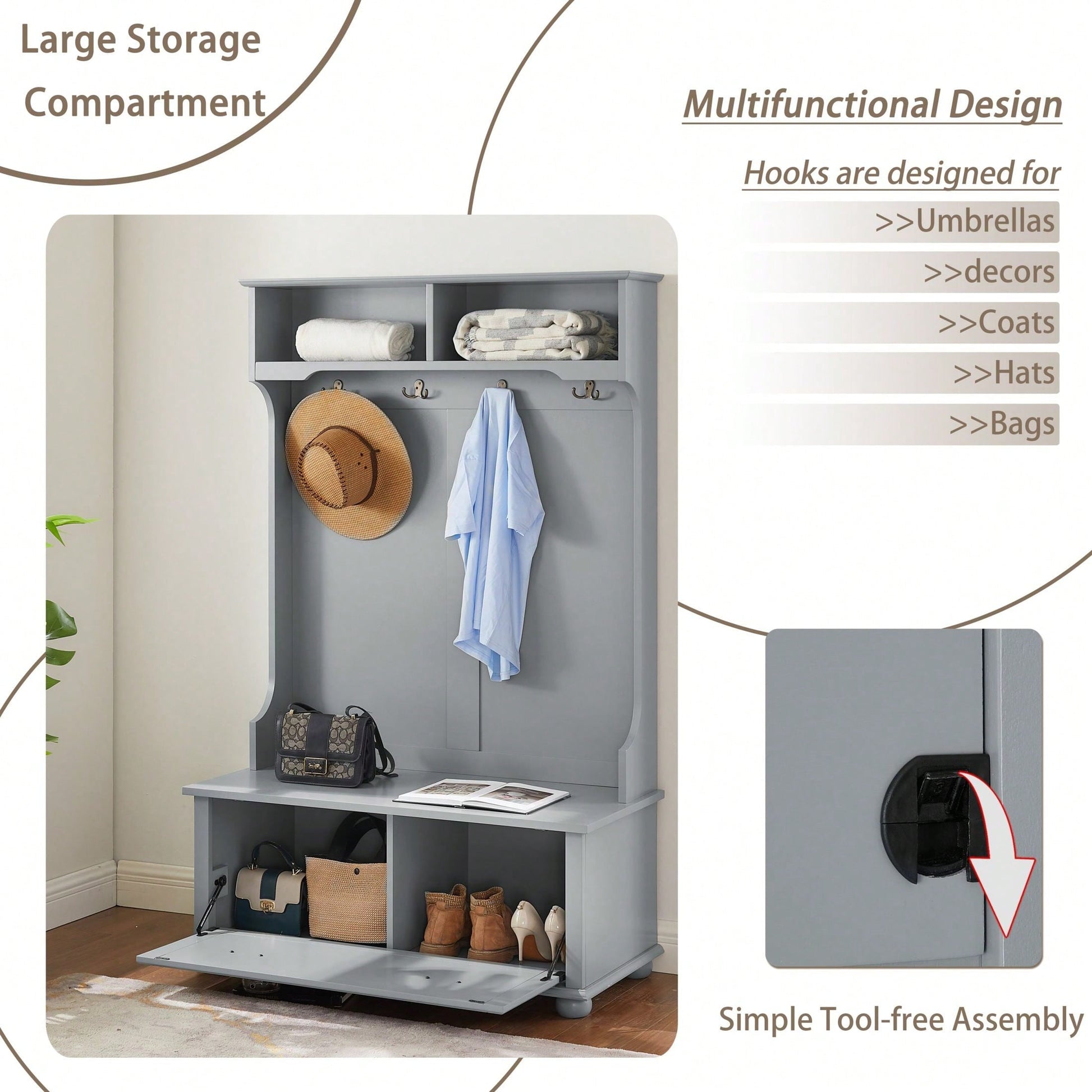 4-In-1 Hall Tree Entryway Bench With Open Shelves And Shoe Cabinets, SOLID WOOD Feet