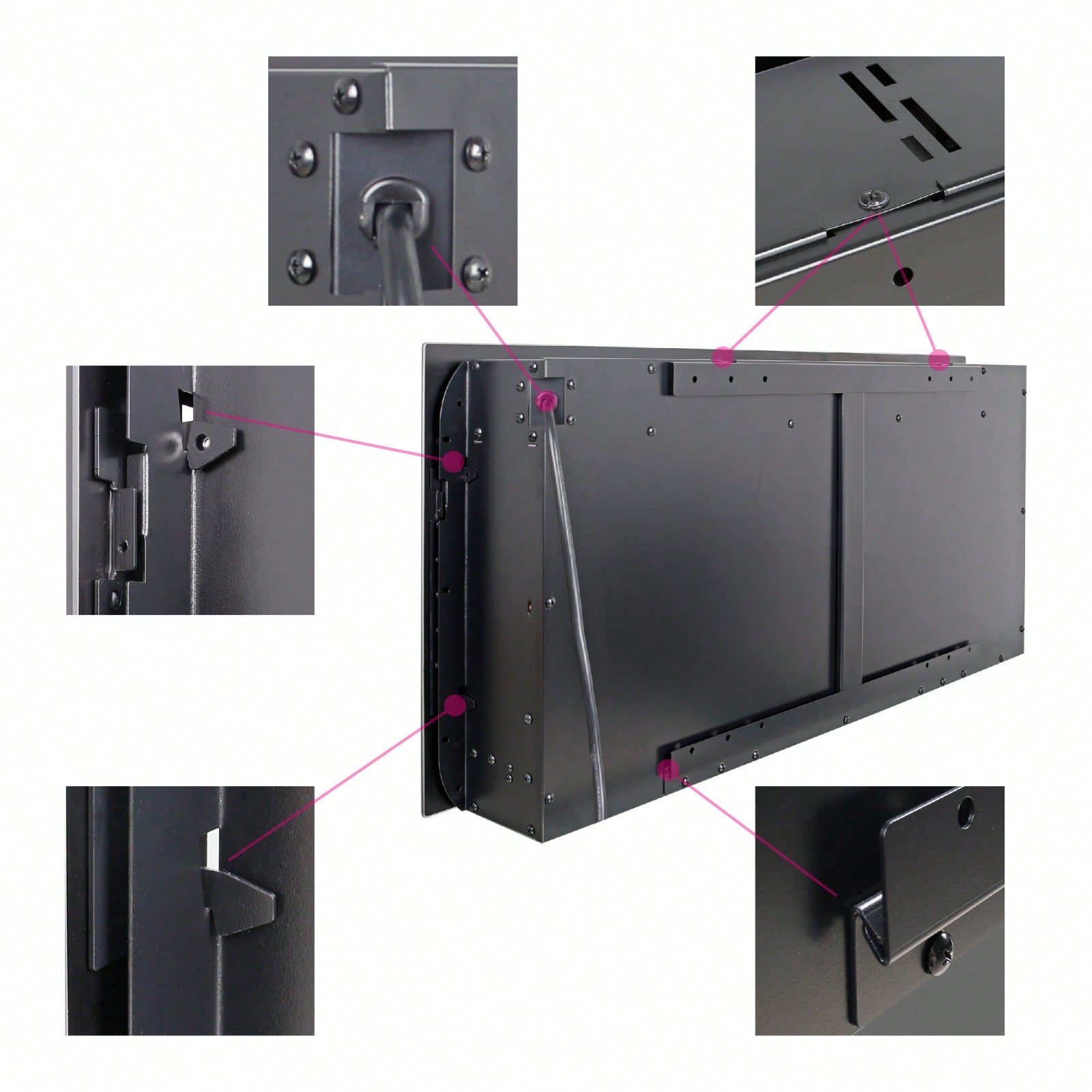 This sleek and modern electric fireplace is designed to be recessed into your wall for a seamless and integrated look. Its ultra-thin profile and tempered glass front add a touch of sophistication to any room. With multiple flame colors and ember bed lighting options, you can create the perfect ambiance for any occasion. The fireplace is operated with a convenient remote control, allowing you to adjust the temperature and flame settings from across the room. Stay warm and cozy with the supplemental heat feature, which can warm up to 400 square feet.