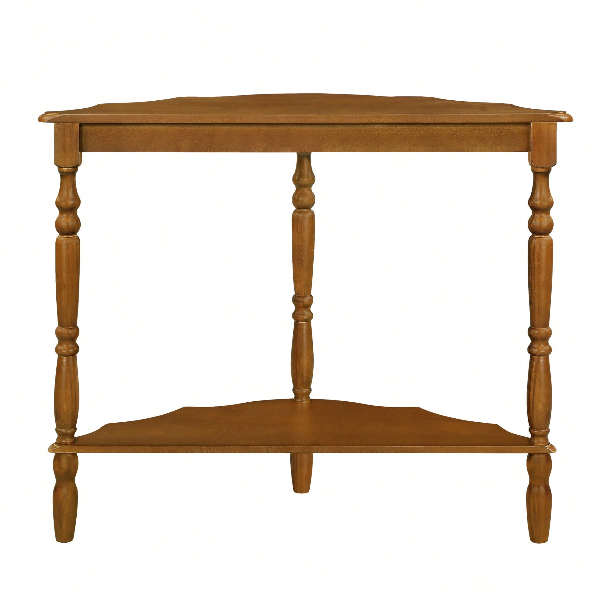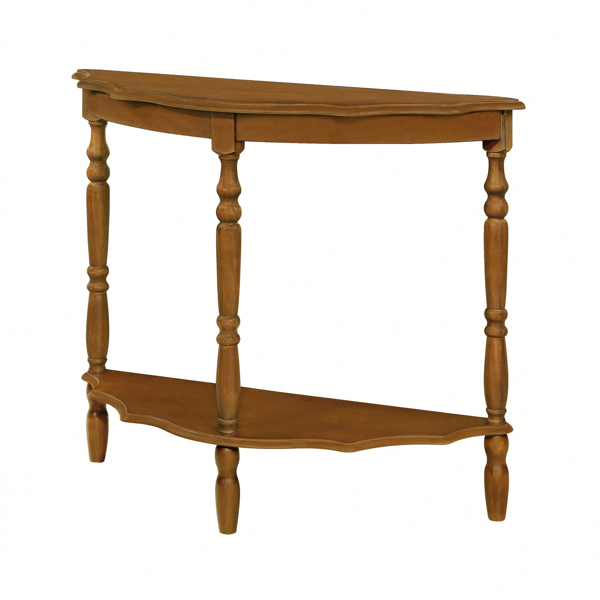42 Inch Retro Half-Moon Console Table With Cloud Design Top And Open Shelf Solid Wood Frame And Legs In Brown
