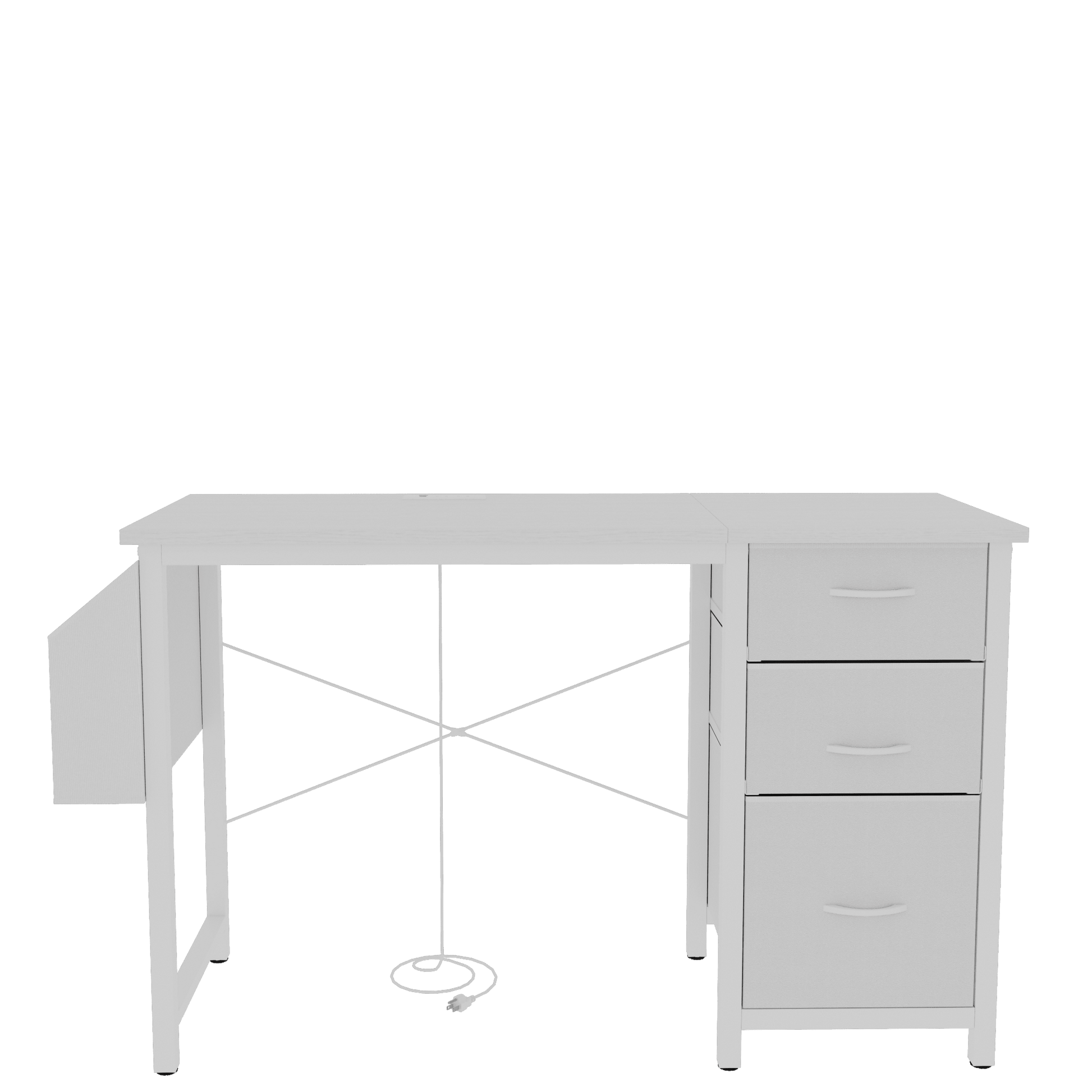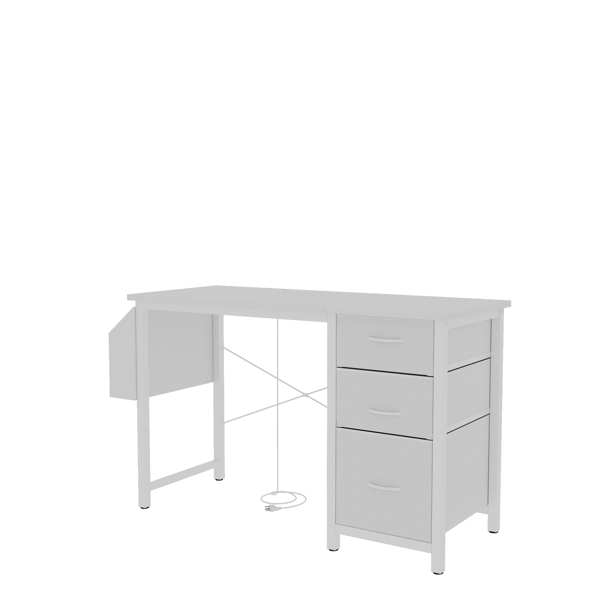 47 Inch Office Desk With Power Outlet And 3 Drawers Reversible Design For Home Office Gaming Or Vanity Use White