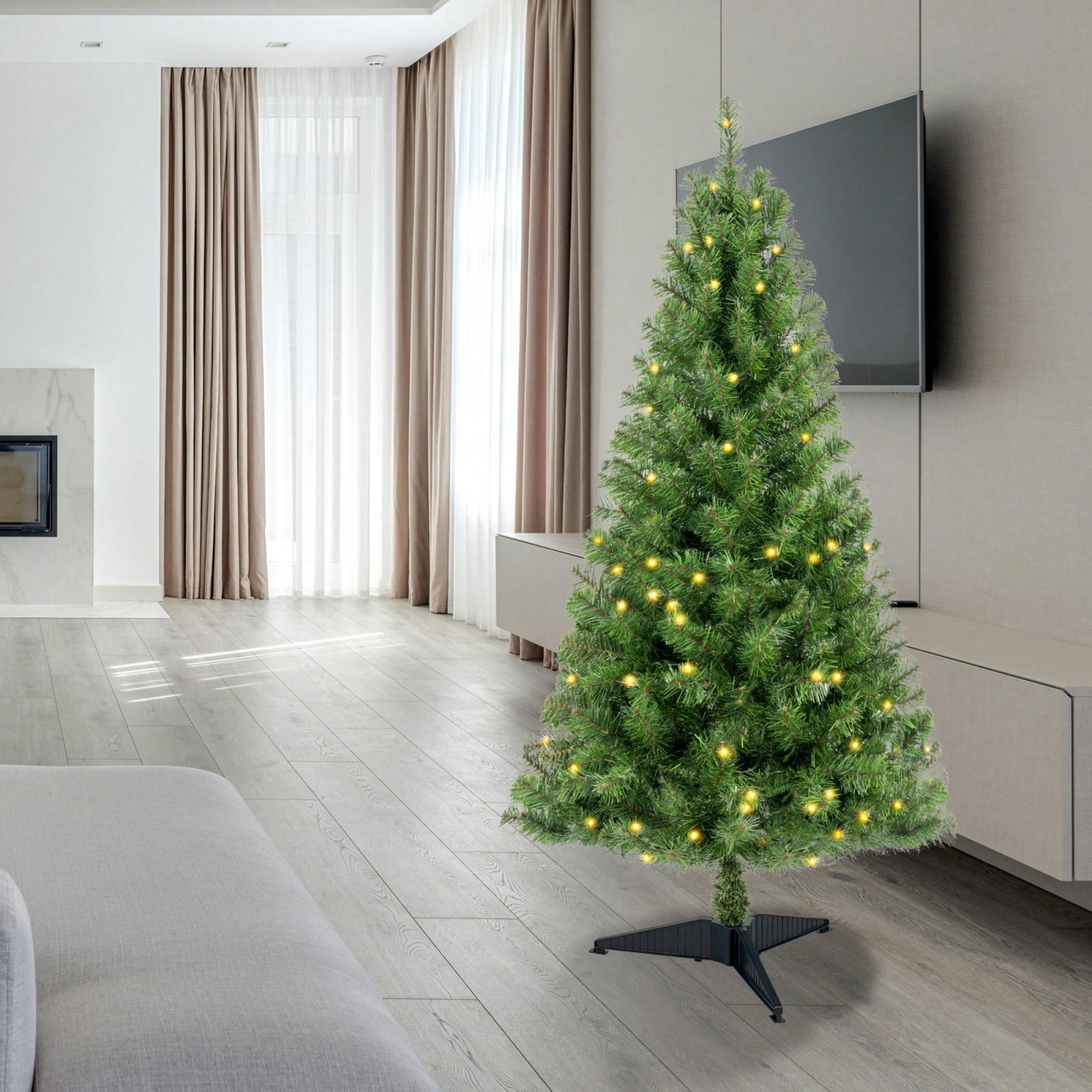 4ft Prelit Artificial Christmas Tree With 100 Warm White LED Lights, Realistic PVC Branch Tips For Easy Indoor Setup