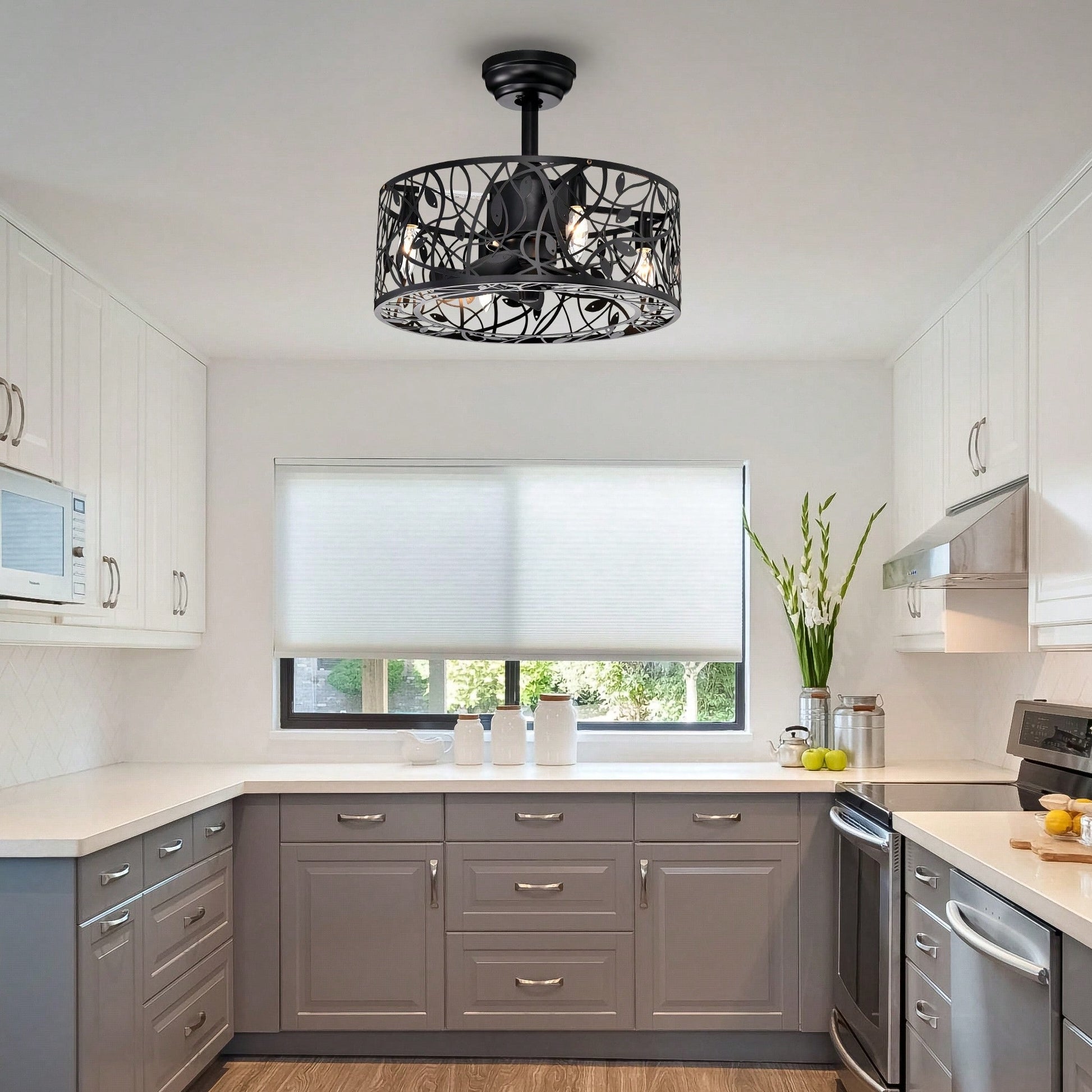 This industrial-style ceiling fan combines the functionality of a fan with the elegance of a light fixture. It features five blades designed to move air efficiently, providing a cooling breeze for your space. The chrome metal frame adds a touch of vintage charm, while the integrated light kit illuminates the room. Perfect for bedrooms, living rooms, dining rooms, or covered patios, this fan enhances comfort and adds a stylish focal point to any room. With a remote control, you can easily adjust the fan speed and lighting from a distance.