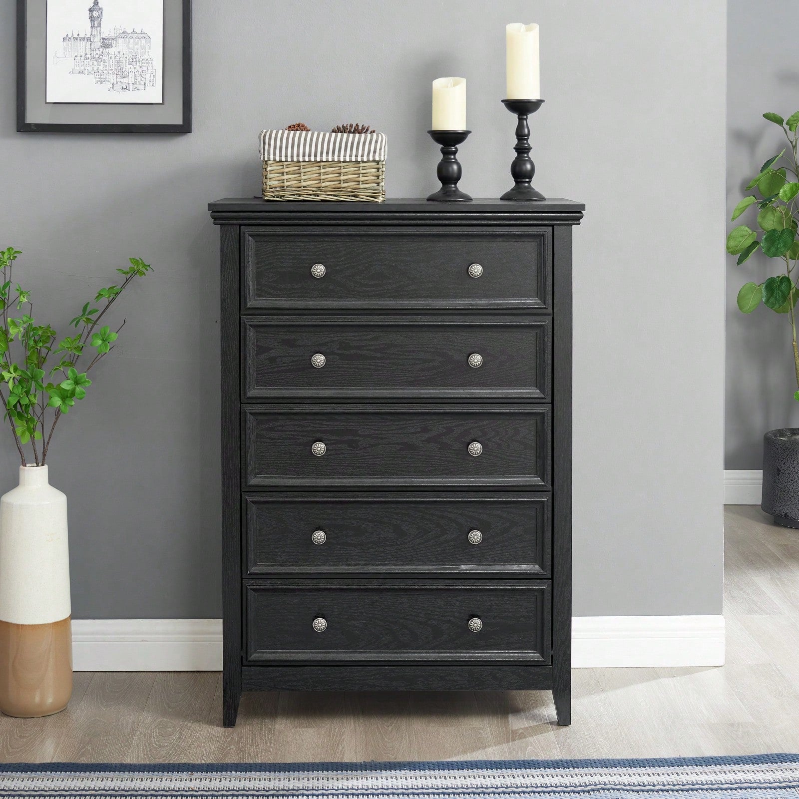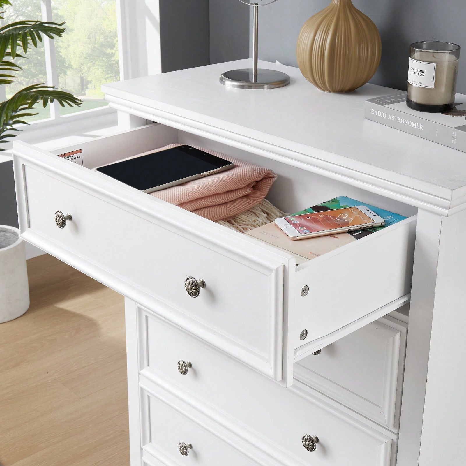 Spacious 5-Drawer Bedroom Dresser with Smooth Glide Metal Slides and Anti-Tip Safety Design for Clothes Storage