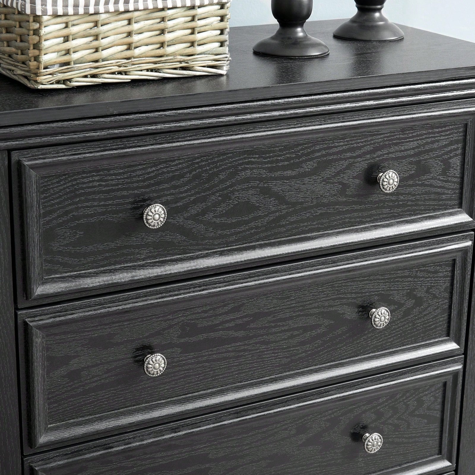 This five-drawer dresser offers ample storage space for clothing and other belongings. The drawers are designed to glide smoothly on metal runners, ensuring easy access and organization. Built with stability in mind, the dresser features a unique leg design. Each drawer is finished with a classic raised-pattern metal handle for a touch of elegance. The spacious top surface provides additional room for displaying decorative items or everyday essentials. This dresser is designed to be a functional and stylish addition to any bedroom, living room, or dressing area.
