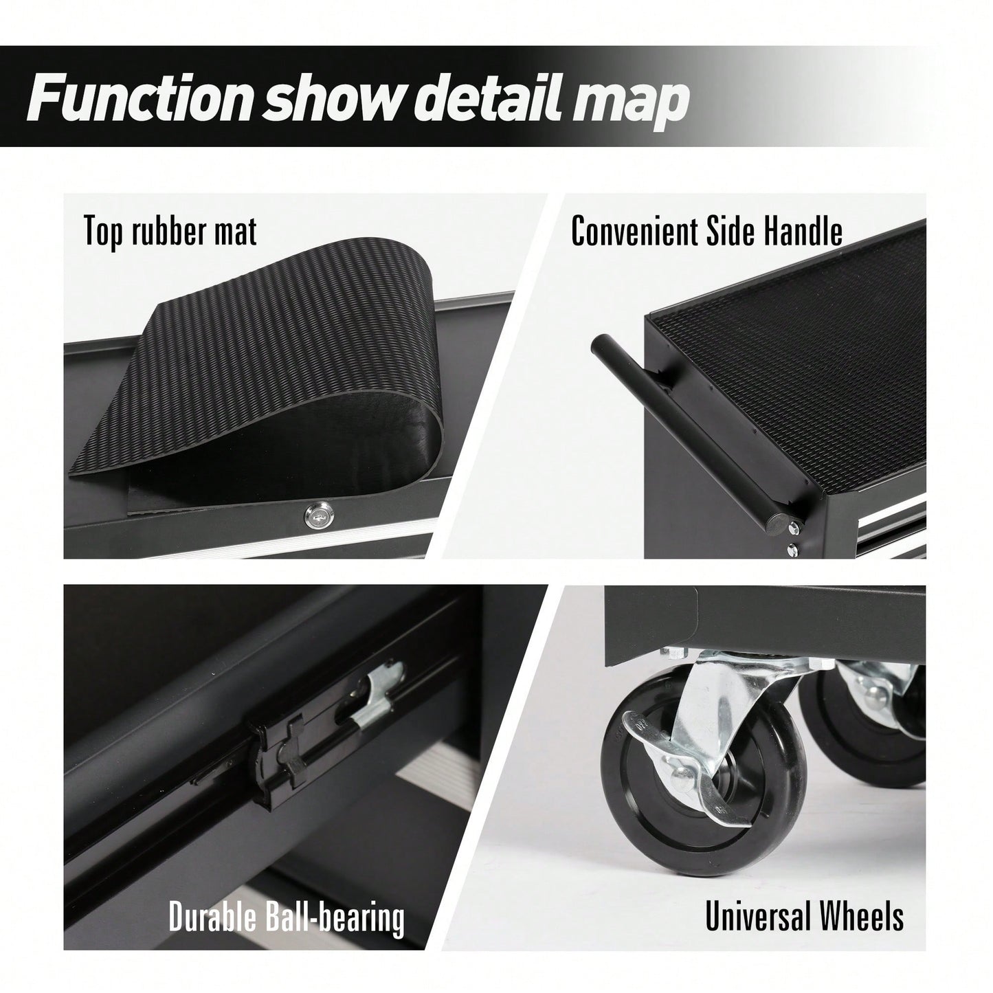 5-Drawer Mobile Tool Chest with Lock and Key Rolling Storage Cabinet Includes Cushion and Drawer Liners for Garage and Workshop Organization