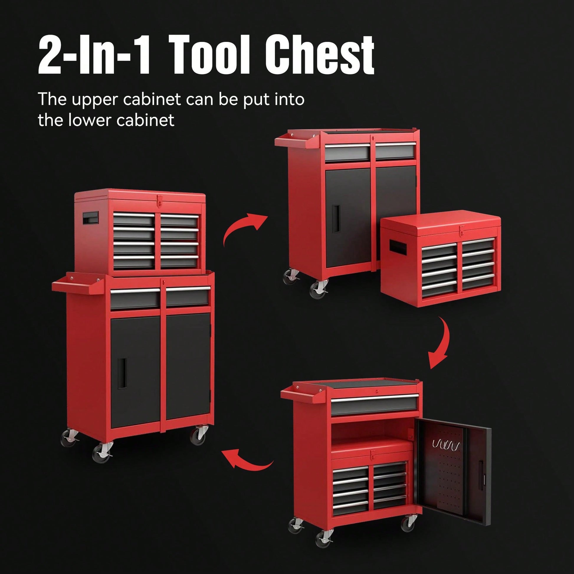 5-Drawer Rolling Tool Storage Cabinet With Detachable Top Box, Lockable Wheels, Adjustable Shelf, And Metal Construction For Garage And Workshop Organization