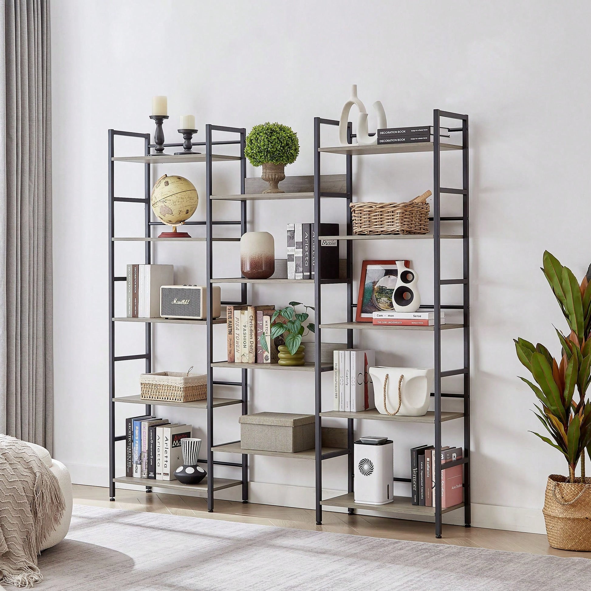 5-Shelf Bookshelves Industrial Retro Wooden Style Home And Office Large Open Bookshelves