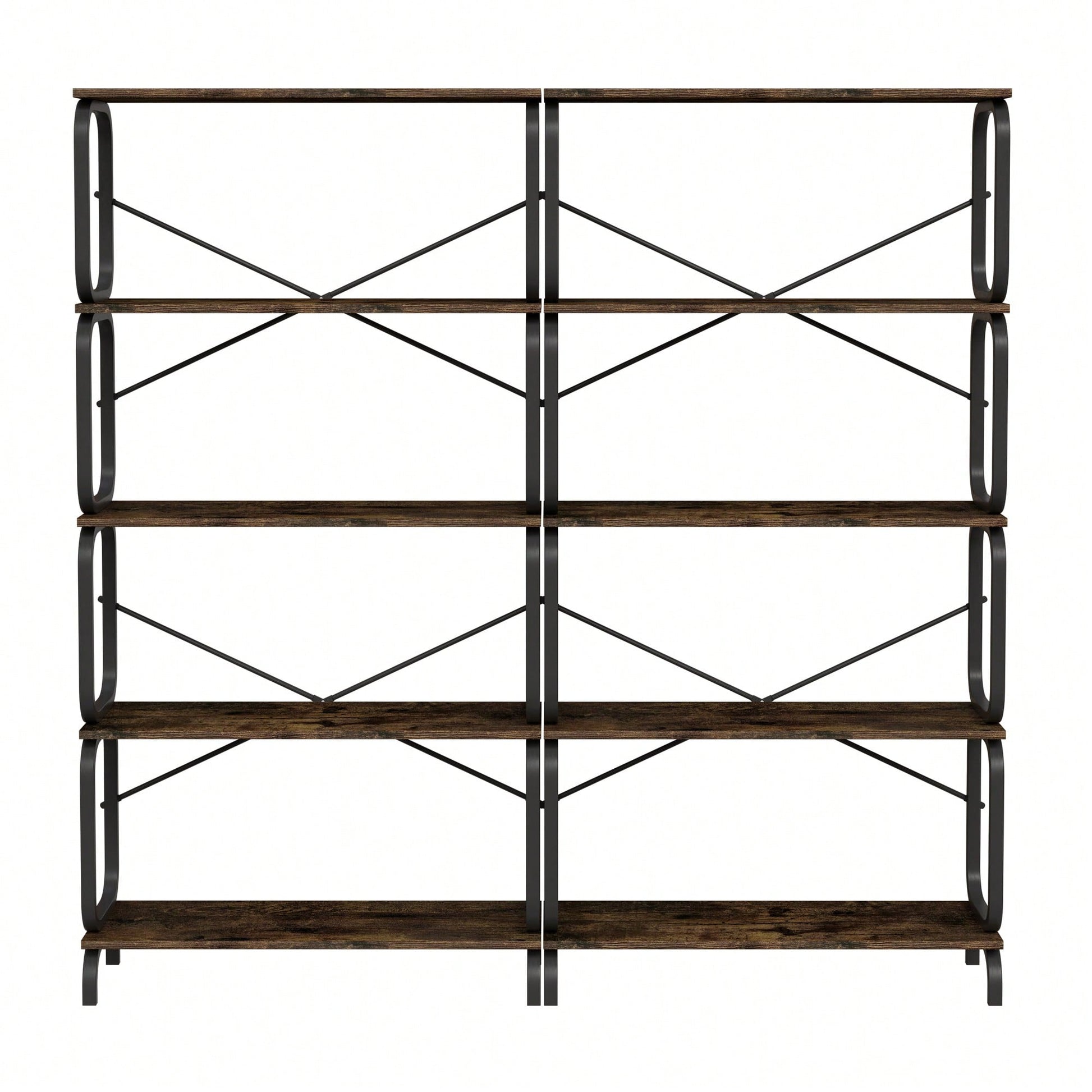 5 Tier Vintage Industrial Style Bookshelf With Metal Frame For Home Office And Living Room Rustic Brown Open Shelves
