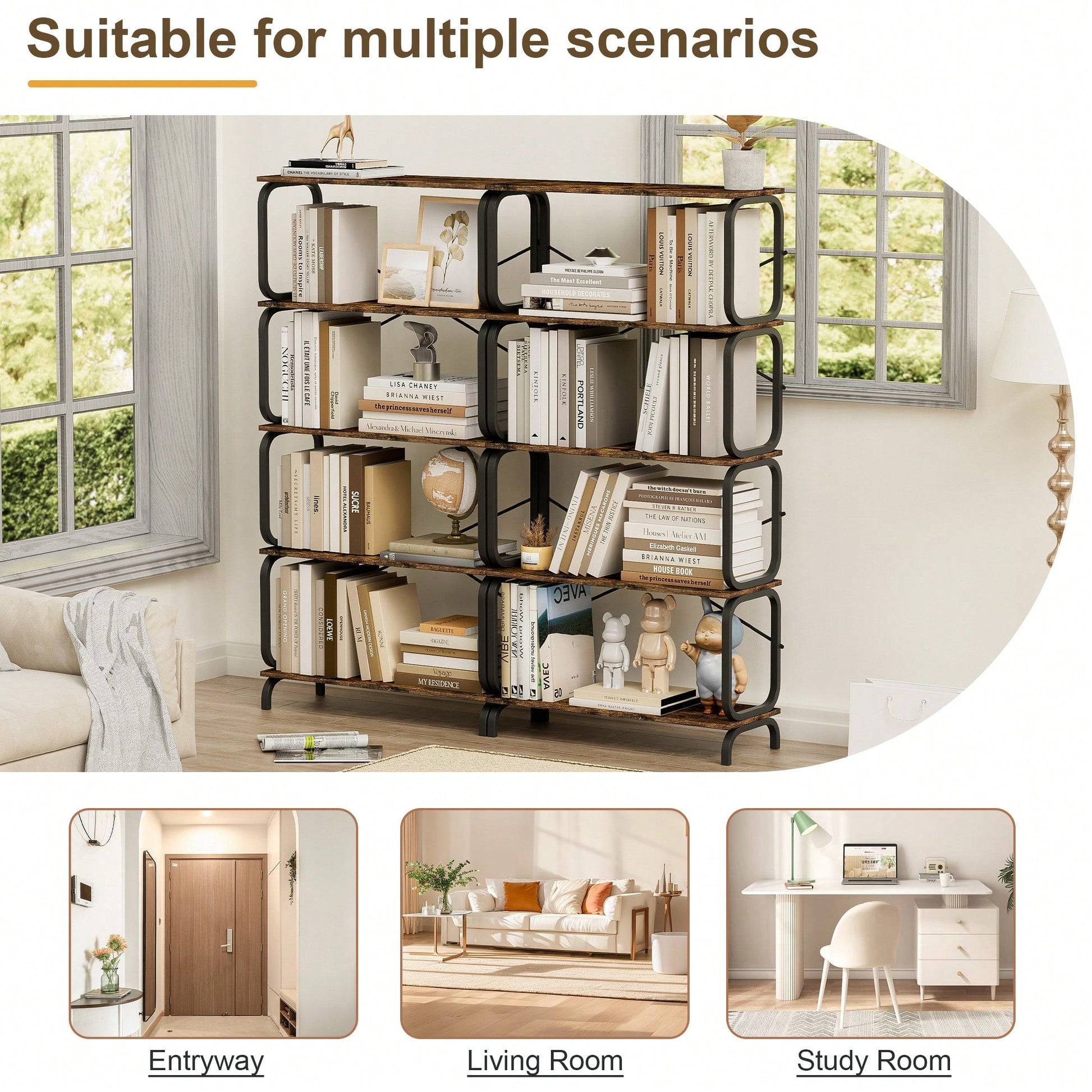 This large five-tier bookshelf offers a stylish storage solution for your home or office. Featuring an open design with a charming blend of minimalist and vintage aesthetics, it is perfect for displaying books, decorations, plants, and other daily accessories. The sturdy construction using MDF board and a powder-coated steel frame ensures that each shelf can hold up to 90lbs, providing a total weight capacity of 450lbs. The bookshelf is equipped with an anti-dumping design that can be secured to the wall for stability, while the "X" bar frame at the back further enhances its sturdiness. Additionally, the thick panels have a smooth, waterproof surface that makes cleaning effortless. Assembly is straightforward, with a comprehensive instruction manual included to guide users through the process.