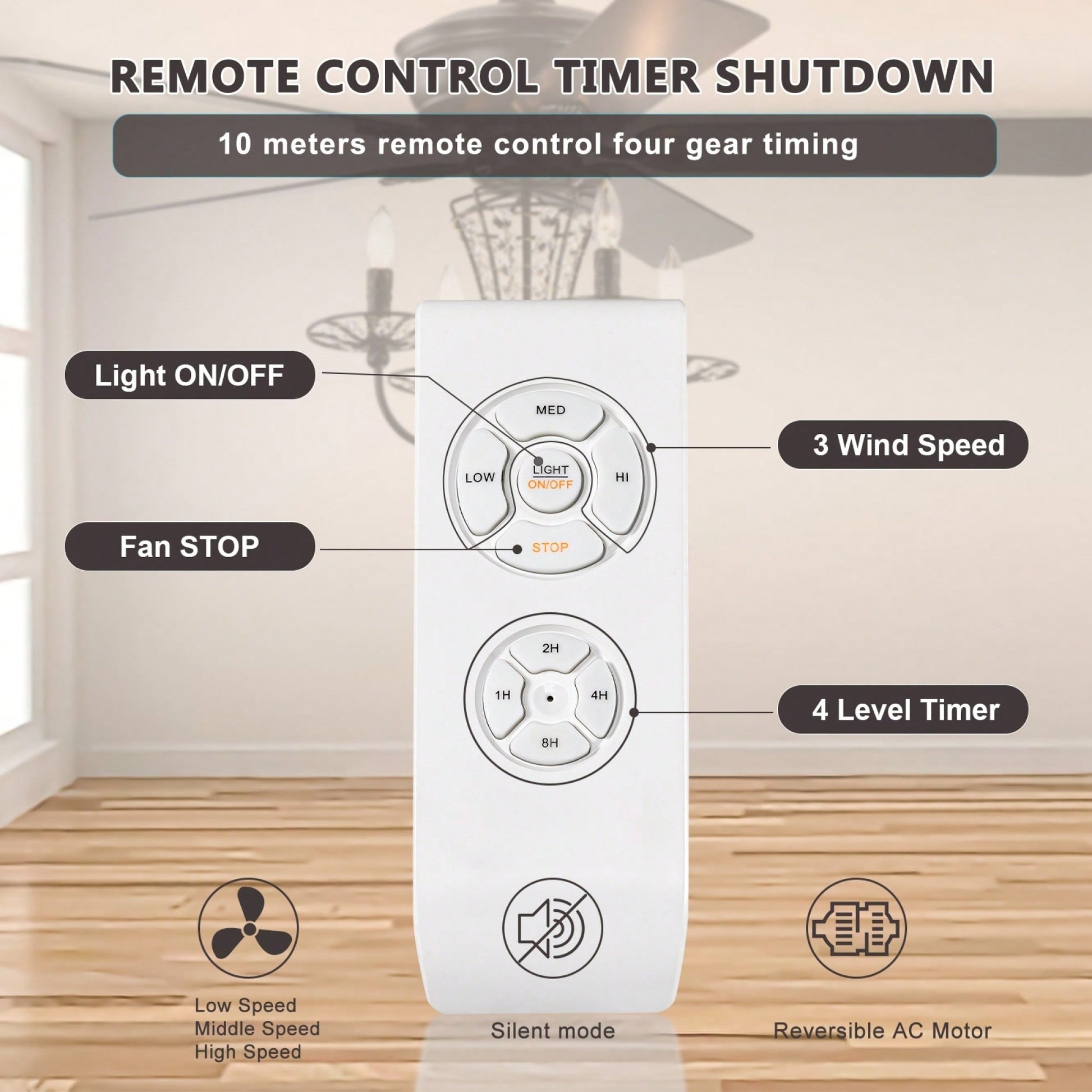 - Remote control with 3 speed settings and timer function