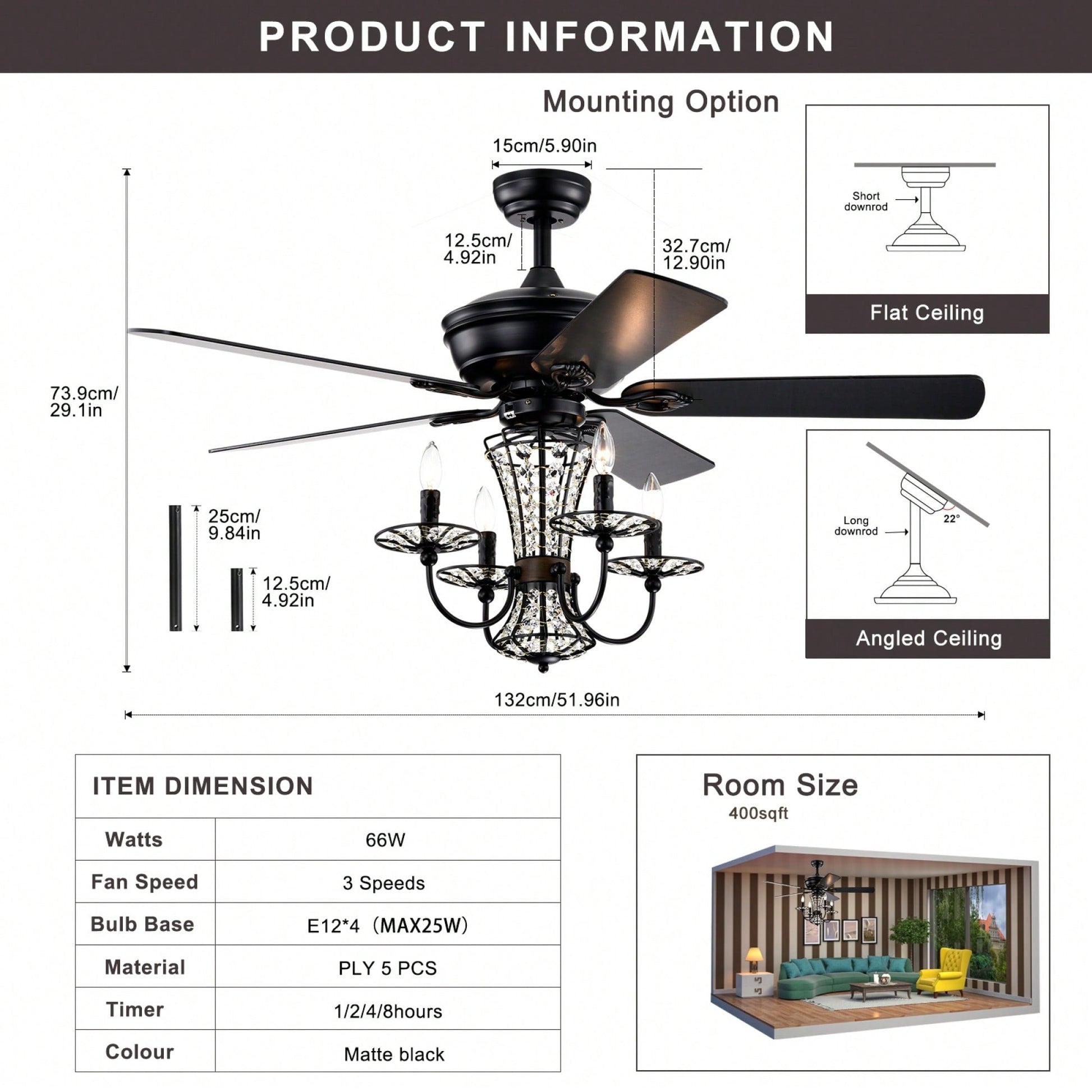 - Down rods included: 4.9 inches and 9.8 inches