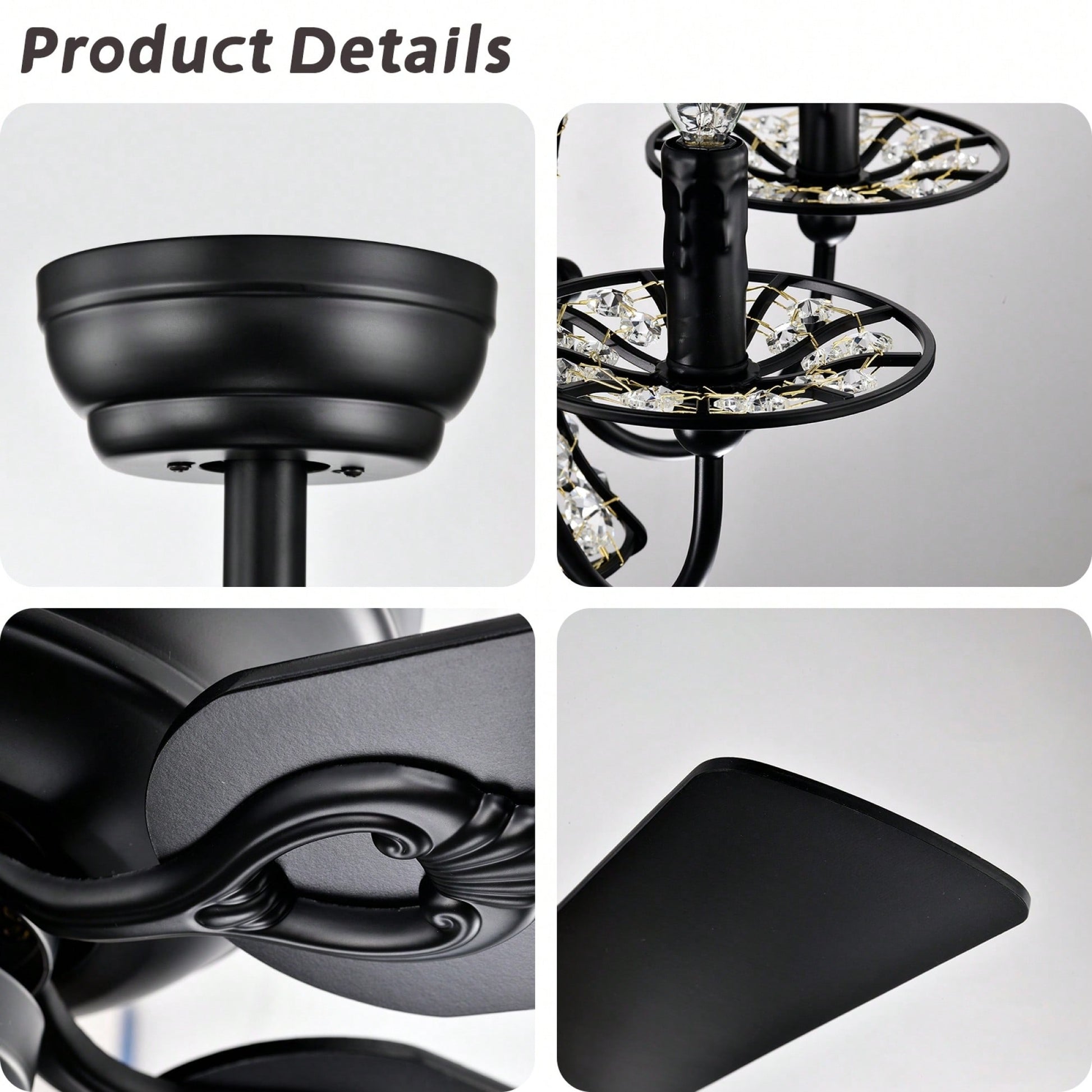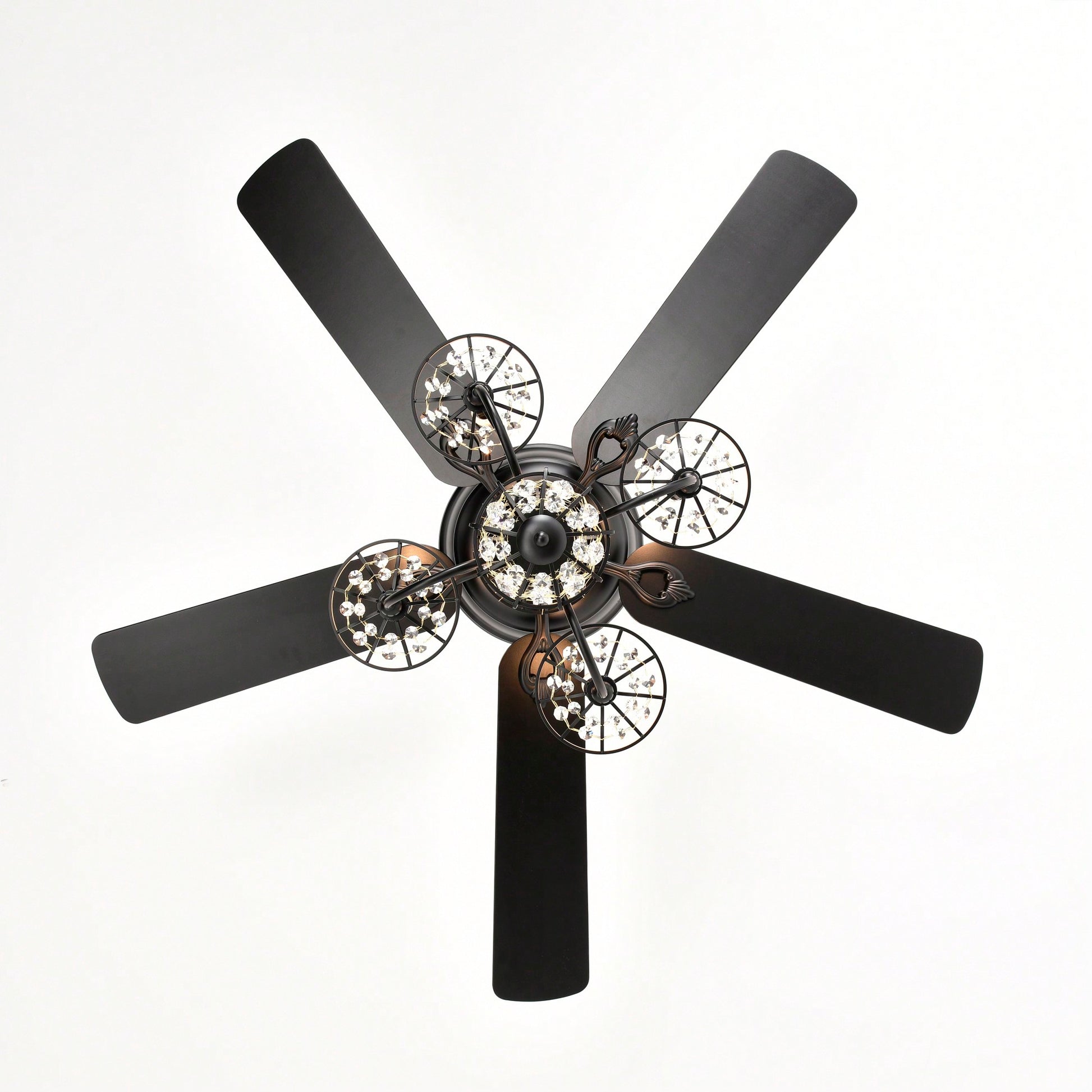 52 Inch Modern Crystal Chandelier Ceiling Fan With Remote Control And Dual Finish Reversible Blades For Living Room, Matte Black