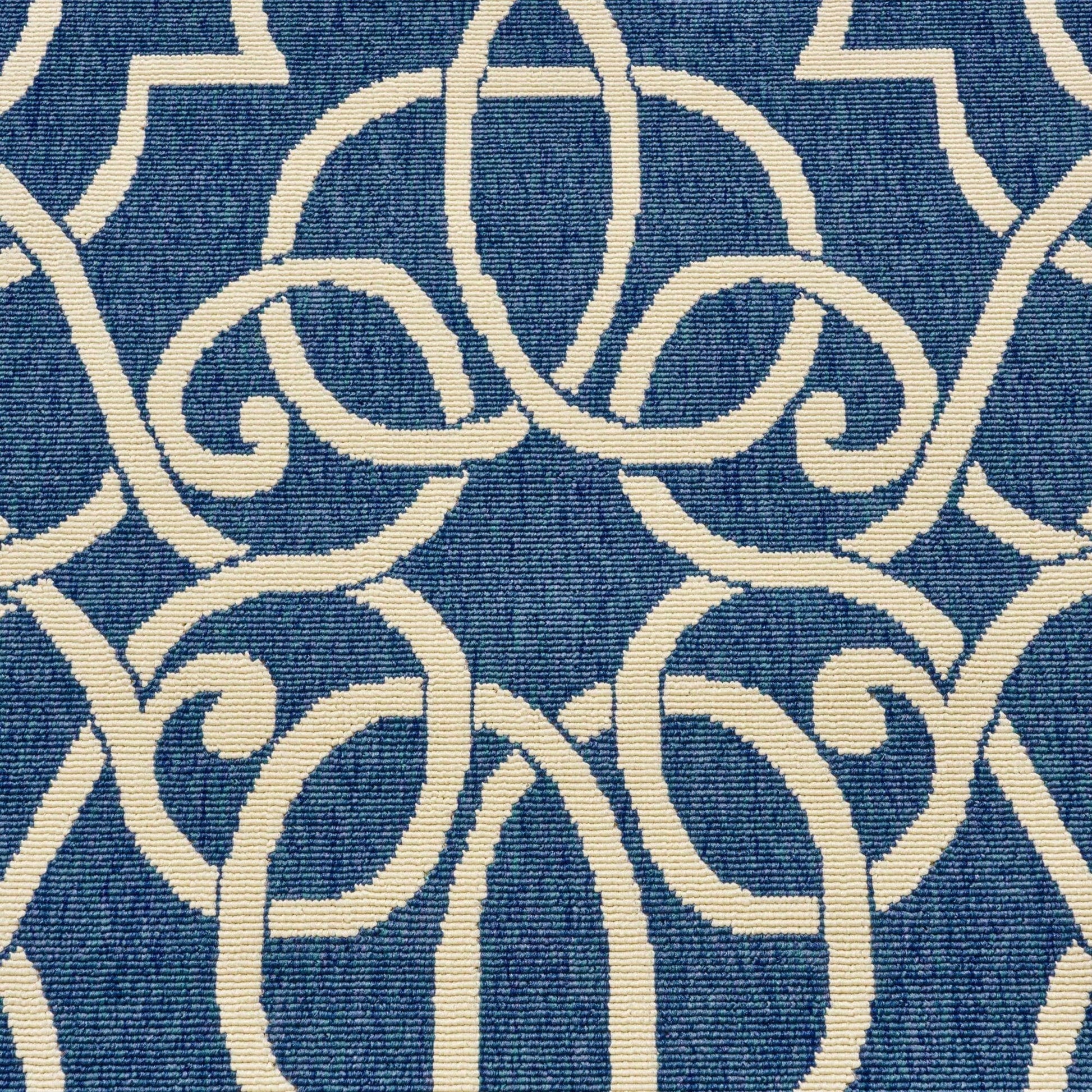 This outdoor rug is a fresh and playful decoration, perfect for sprucing up your patio area. Featuring a unique design with tricolor yarn in various shades of blue and green, it adds a simple yet stylish touch to any outdoor space. Impress your guests with this eye-catching rug that combines functionality and aesthetic appeal.
