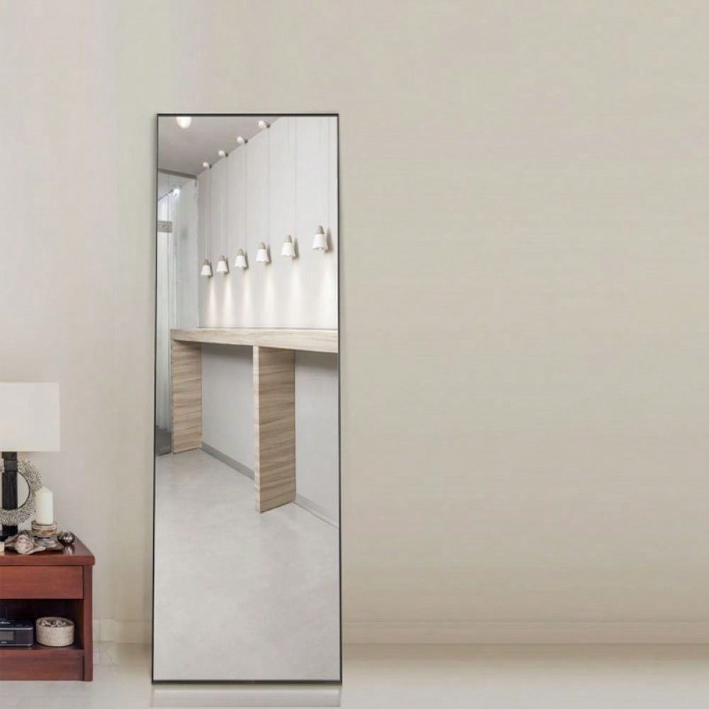 59" X 16" Tall Full Length Mirror With Stand, Black Wall Mounting Full Body Mirror, Metal Frame Full-Length Mirror For Living Room, Bedroom