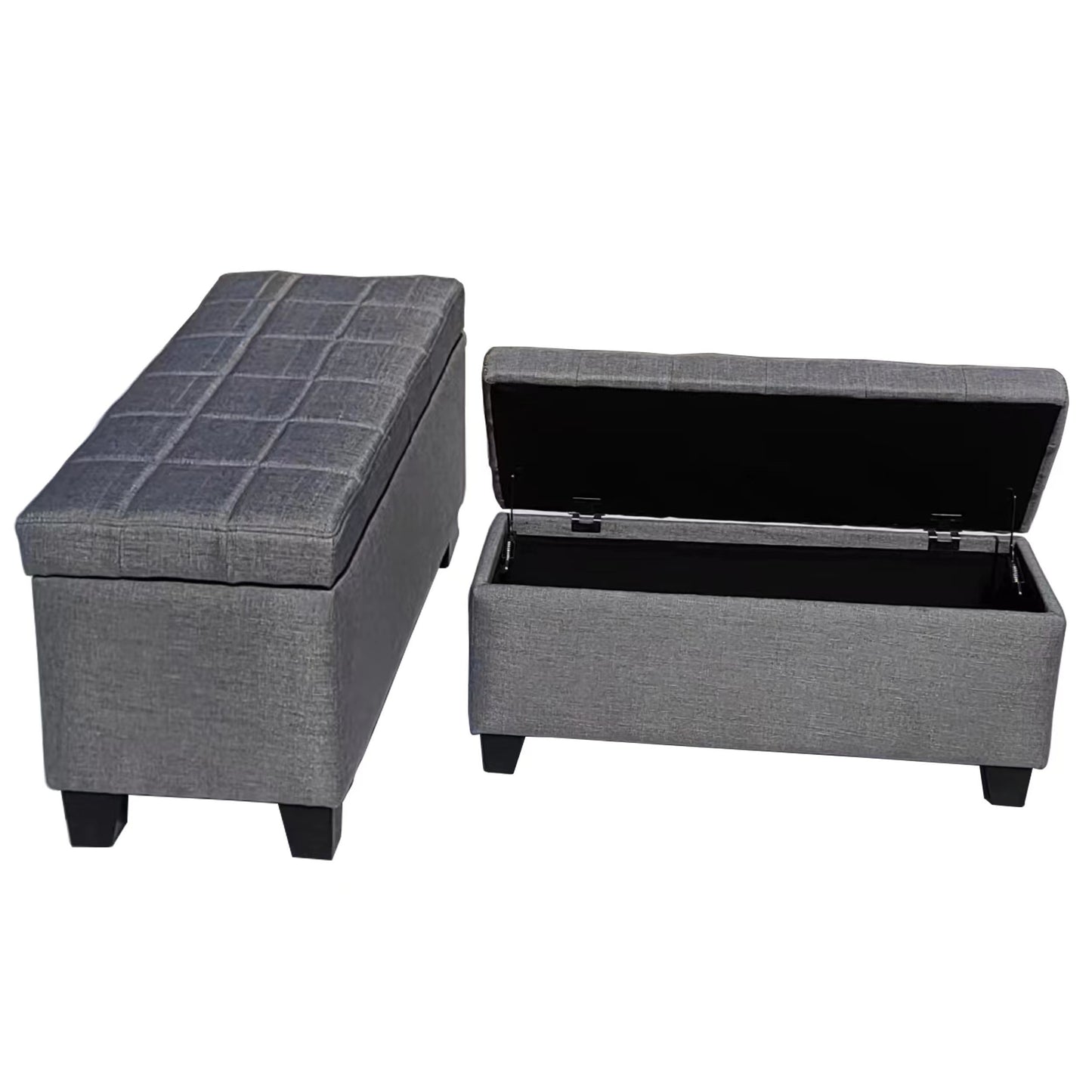 • Bench-style storage ottoman in light gray offers a comfortable place to sit; great for an entryway, living room, family room, or bedroom