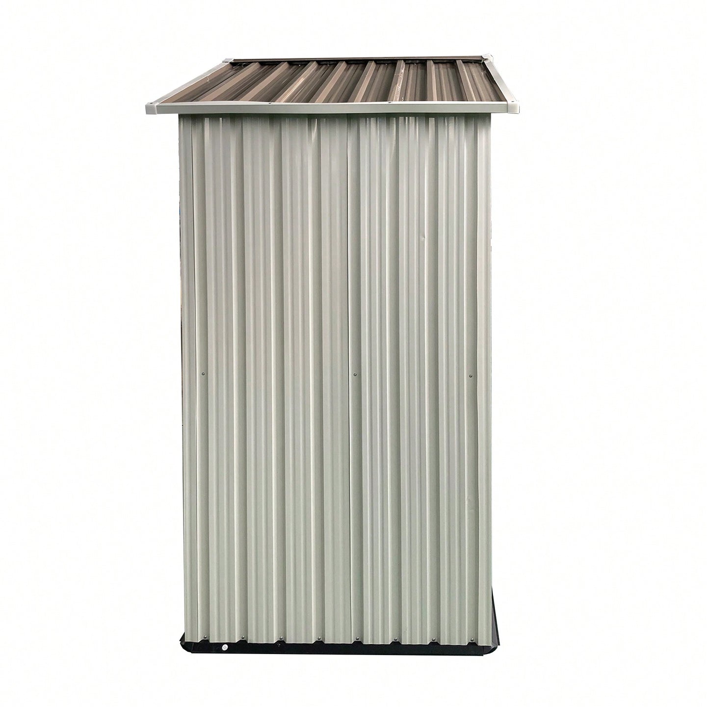 This outdoor storage garden shed measures 5FTx3FT and features an apex roof design. The aesthetic blend of milky white and brown provides a modern look while ensuring durability with its aluminum alloy frame. The shed is equipped with ventilation to maintain a dry environment for stored items, reducing the risk of odors. The overlapping wall panels offer superior protection against water, moisture, and UV rays, making it ideal for various weather conditions. The product includes an installation manual, 2 pairs of gloves, and 2 screwdrivers for easy setup.