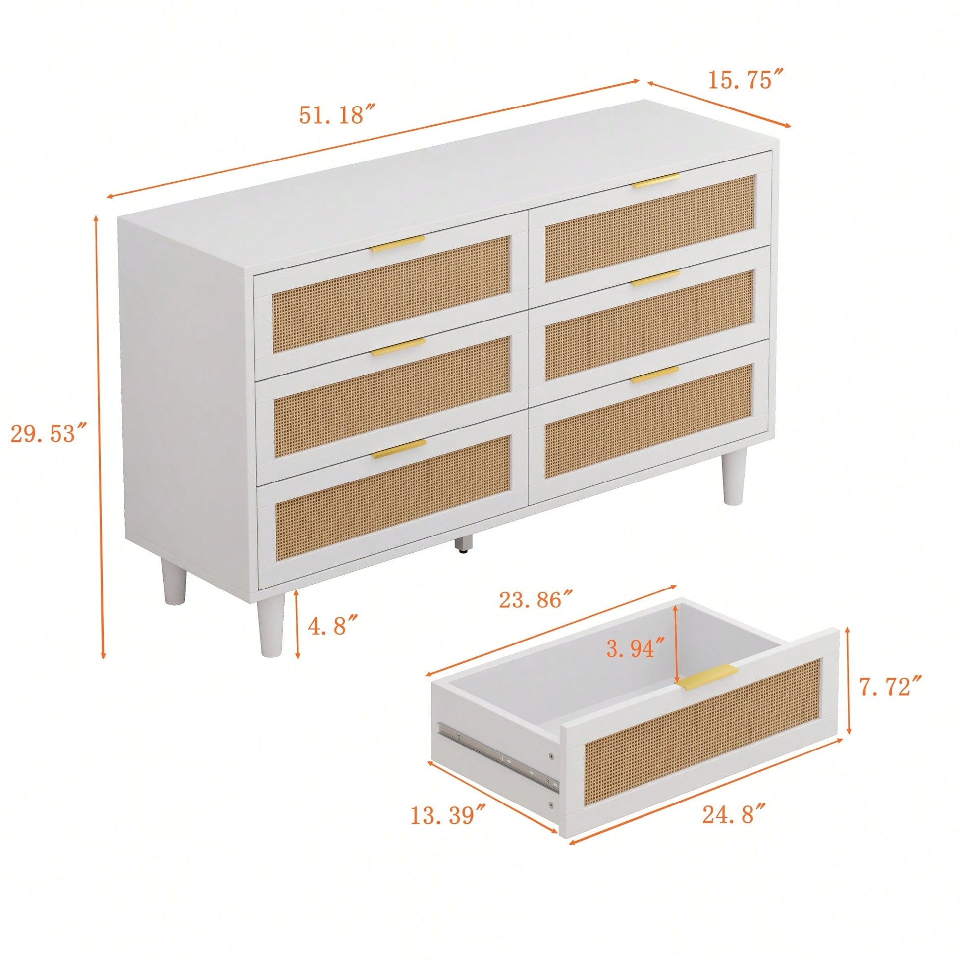 6-Drawer Rattan Storage Cabinet For Bedroom And Living Room In White
