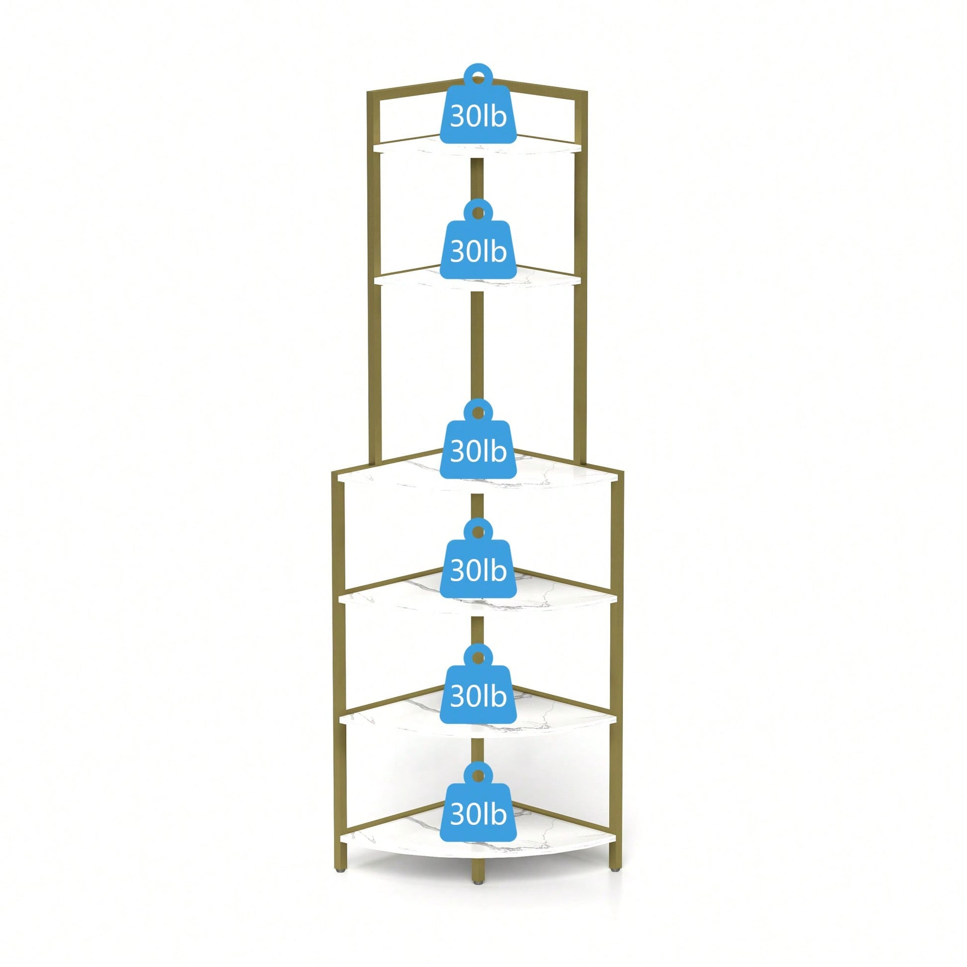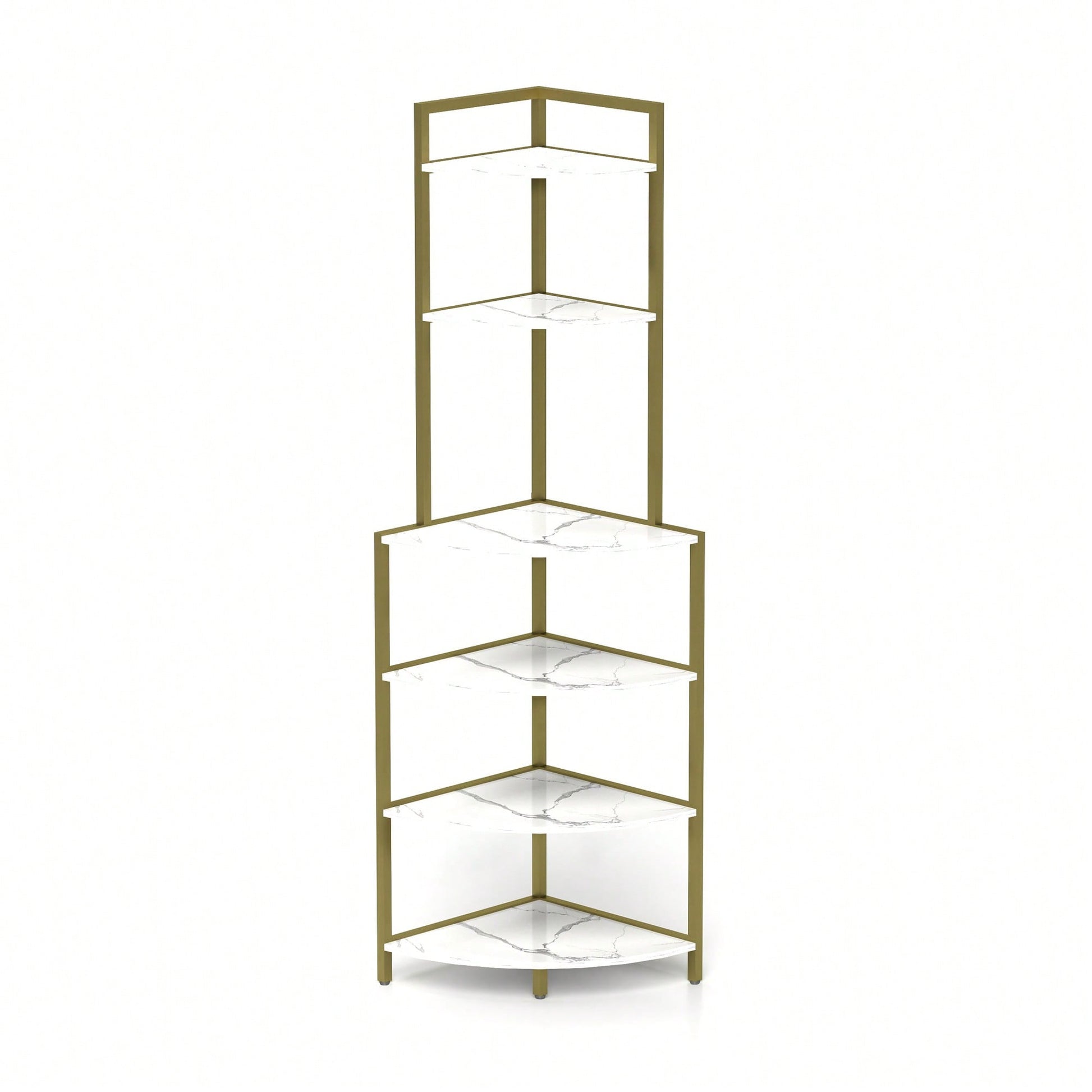 This innovative 6-tier corner shelf unit is designed to transform unused corner spaces into functional storage areas. With its rustic brown finish, it adds warmth and a touch of elegance to any room. The open shelf concept not only enhances the aesthetic appeal but also creates a sense of spaciousness, allowing you to display your favorite items such as books, plants, trinkets, and photo albums. Crafted from sturdy wood, this shelving unit provides reliable strength and stability, making it an excellent solution for organizing your belongings. Its compact design makes it perfect for small spaces, ensuring that you can maximize your storage options without overwhelming the room.