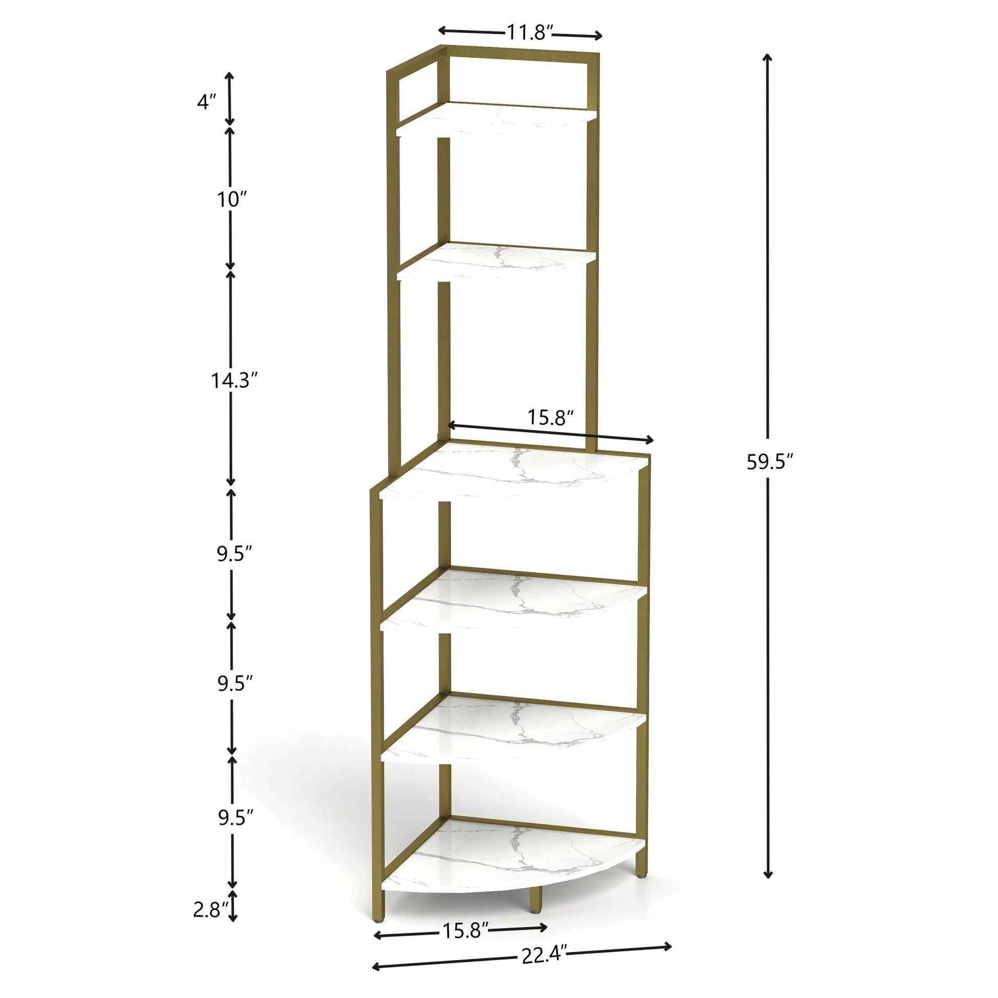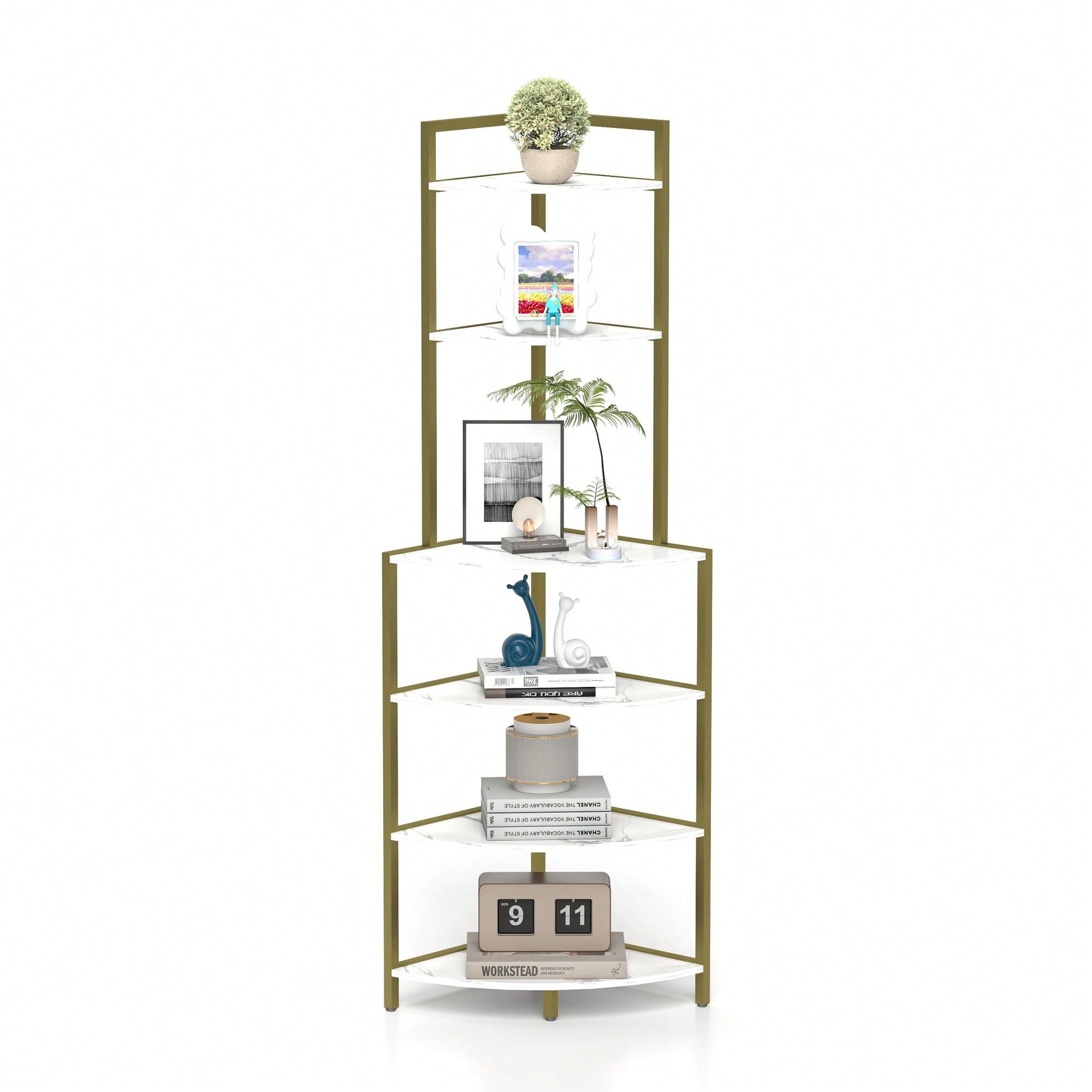 Rustic Brown 6-Tier Corner Open Shelf Bookcase Space-Saving Freestanding Unit for Plants Albums Decor Living Room Home Office Kitchen