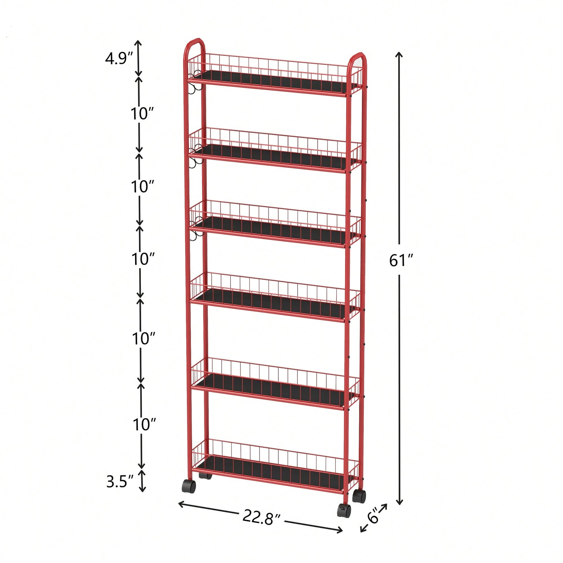 6-Tier Slim Rolling Storage Cart With Wheels For Kitchen Bathroom Laundry Utility Narrow Spaces