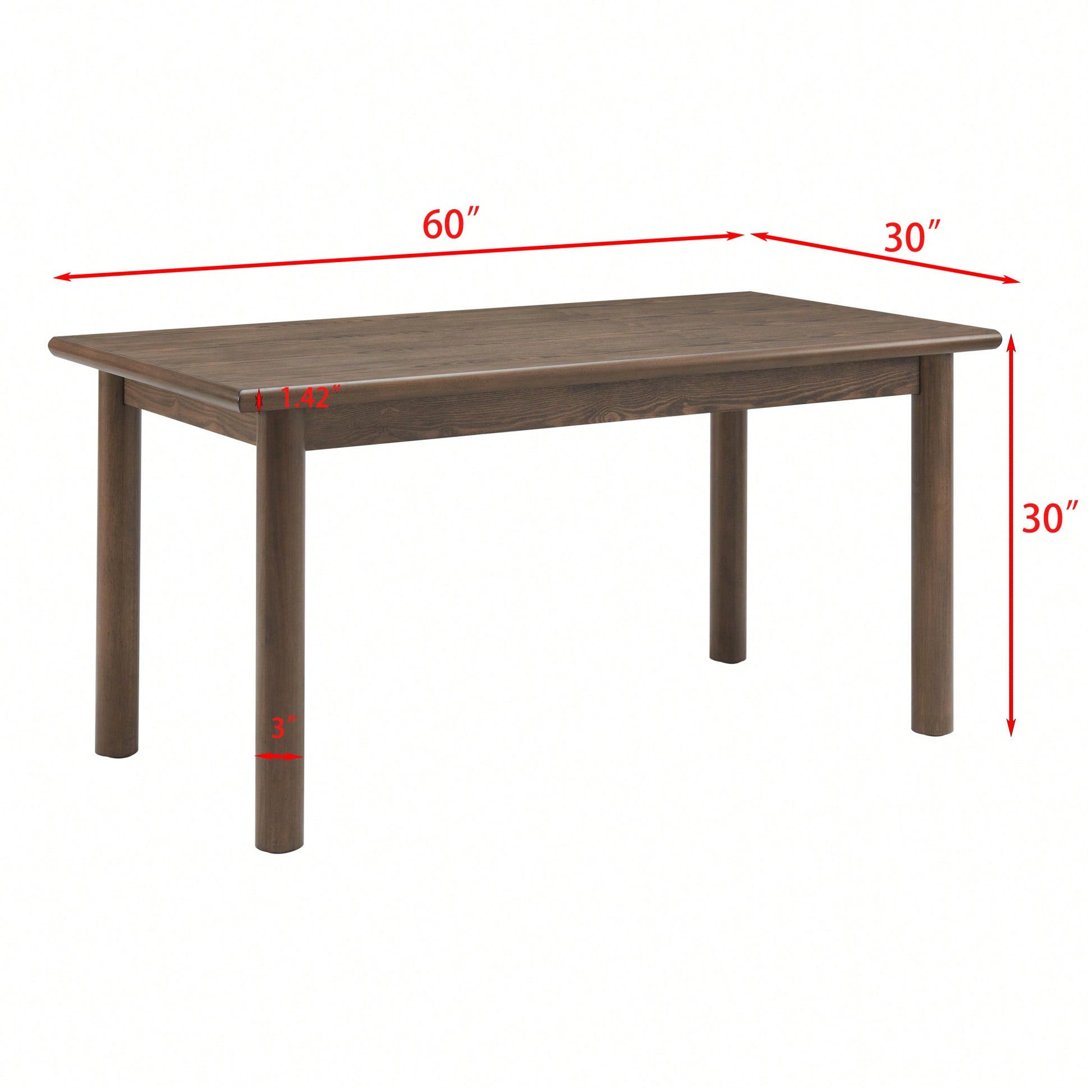 Designed in Mid century modern style, this rectangular dining table adds a touch of elegance to any space. The charming modern look and wood grain exude warmth and comfort, creating a cozy gathering atmosphere for family and friends. Measuring 60 x 42 inches, it is spacious enough to seat 6-8 people, making it perfect for dinner parties or casual family meals. Crafted from high-quality thick MDF with solid wood legs, this table offers solid and durable construction for long-lasting use. Not only is it functional, but it also serves as a stylish addition to your home decor, versatile enough to be used as a study desk or living room centerpiece. Assembly is a breeze with provided tools and instructions, and maintenance is simple with just a soft cloth and water.