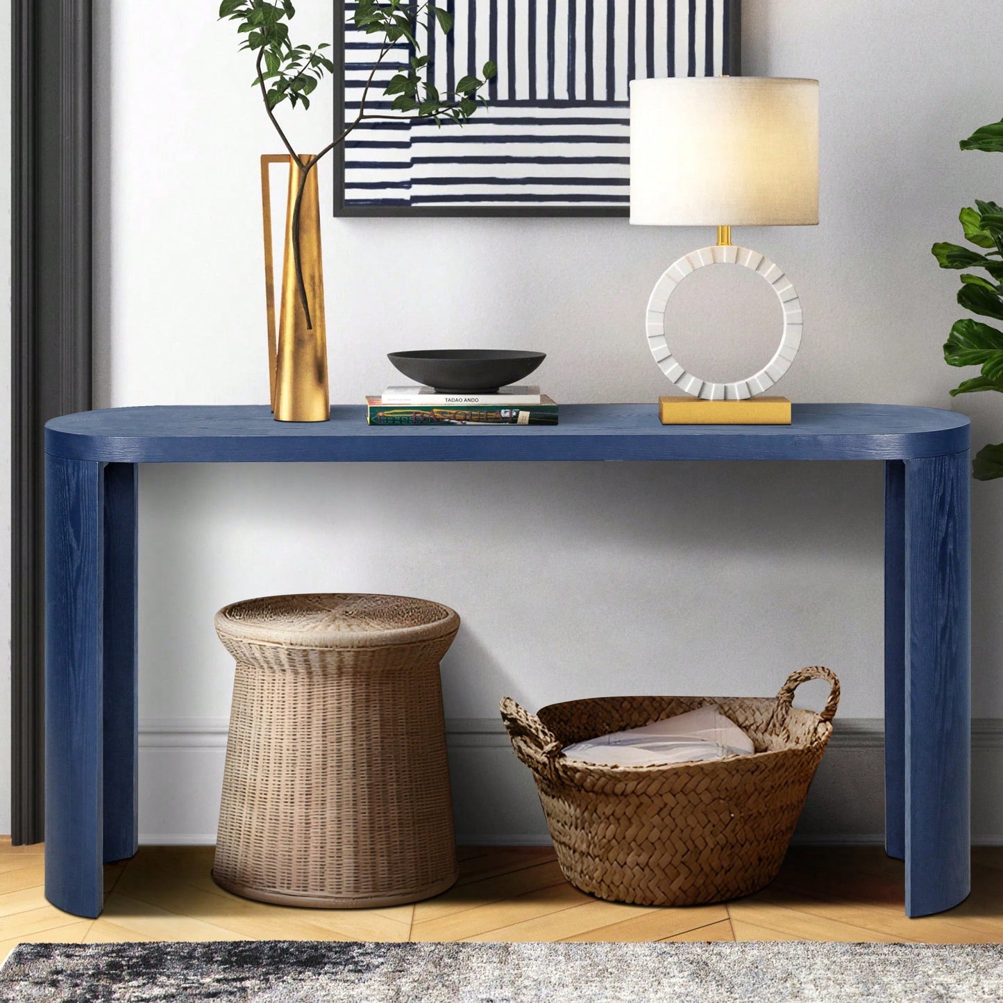 60 Inch Navy Blue Thick Top Entryway Table With Curved Legs For Versatile Sofa Installation
