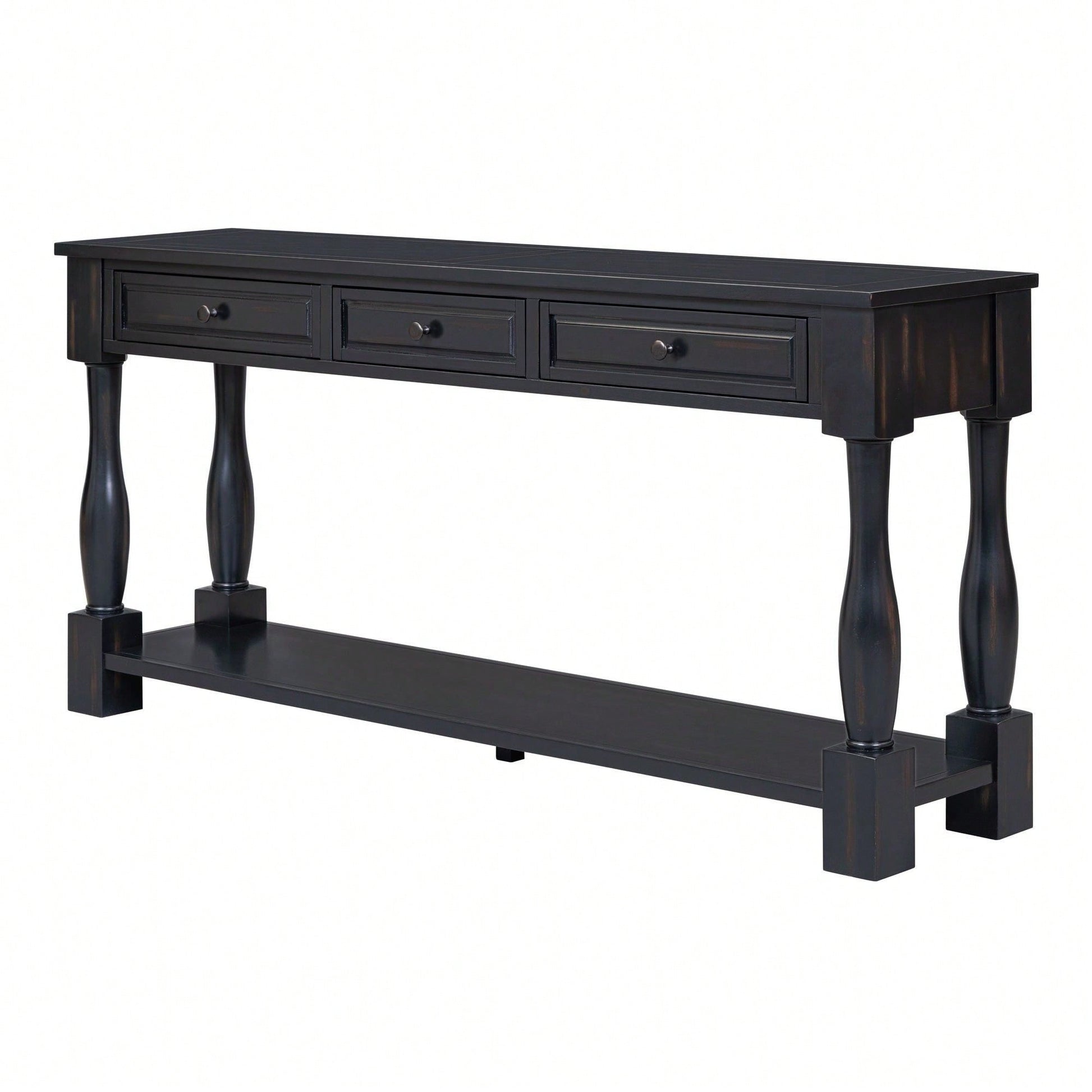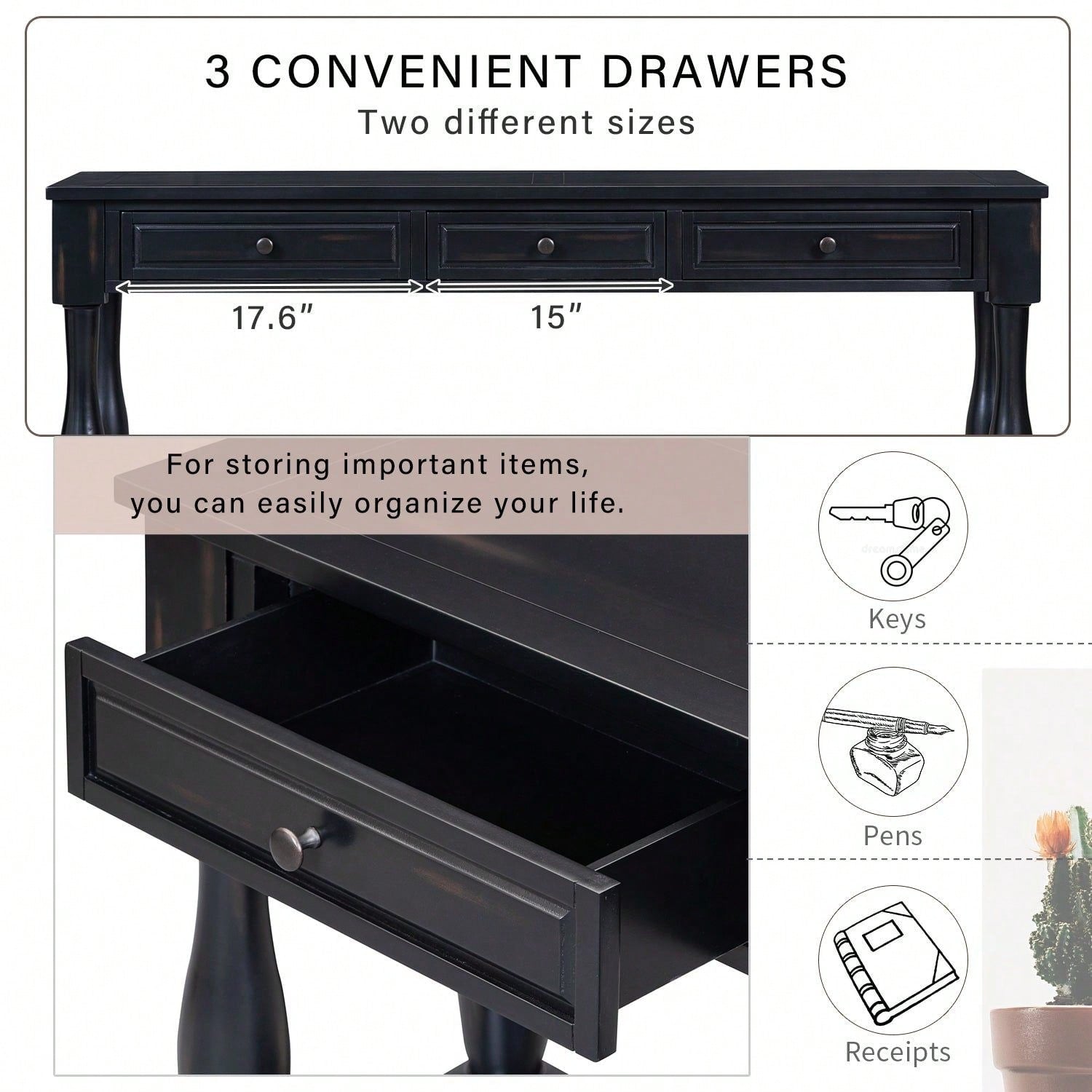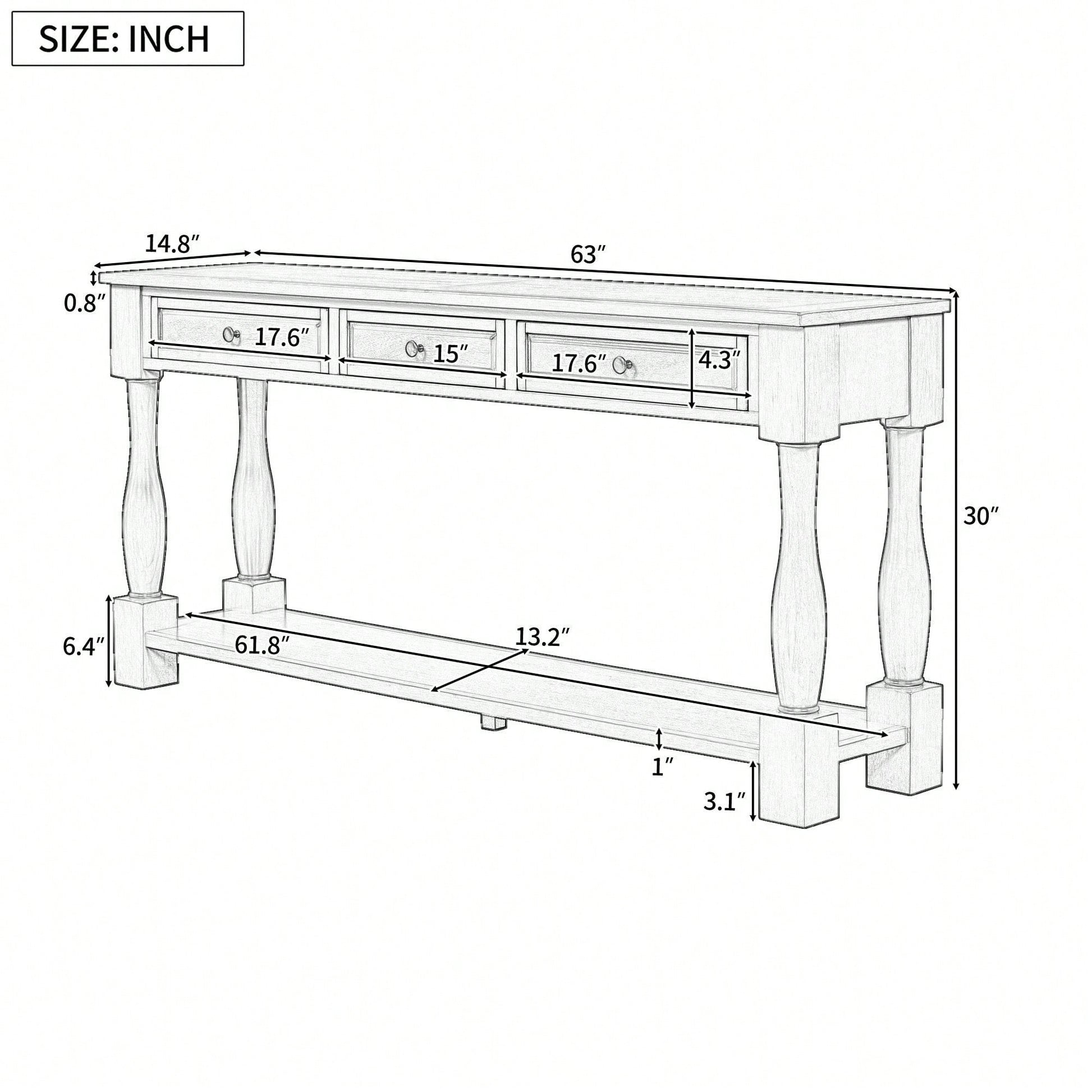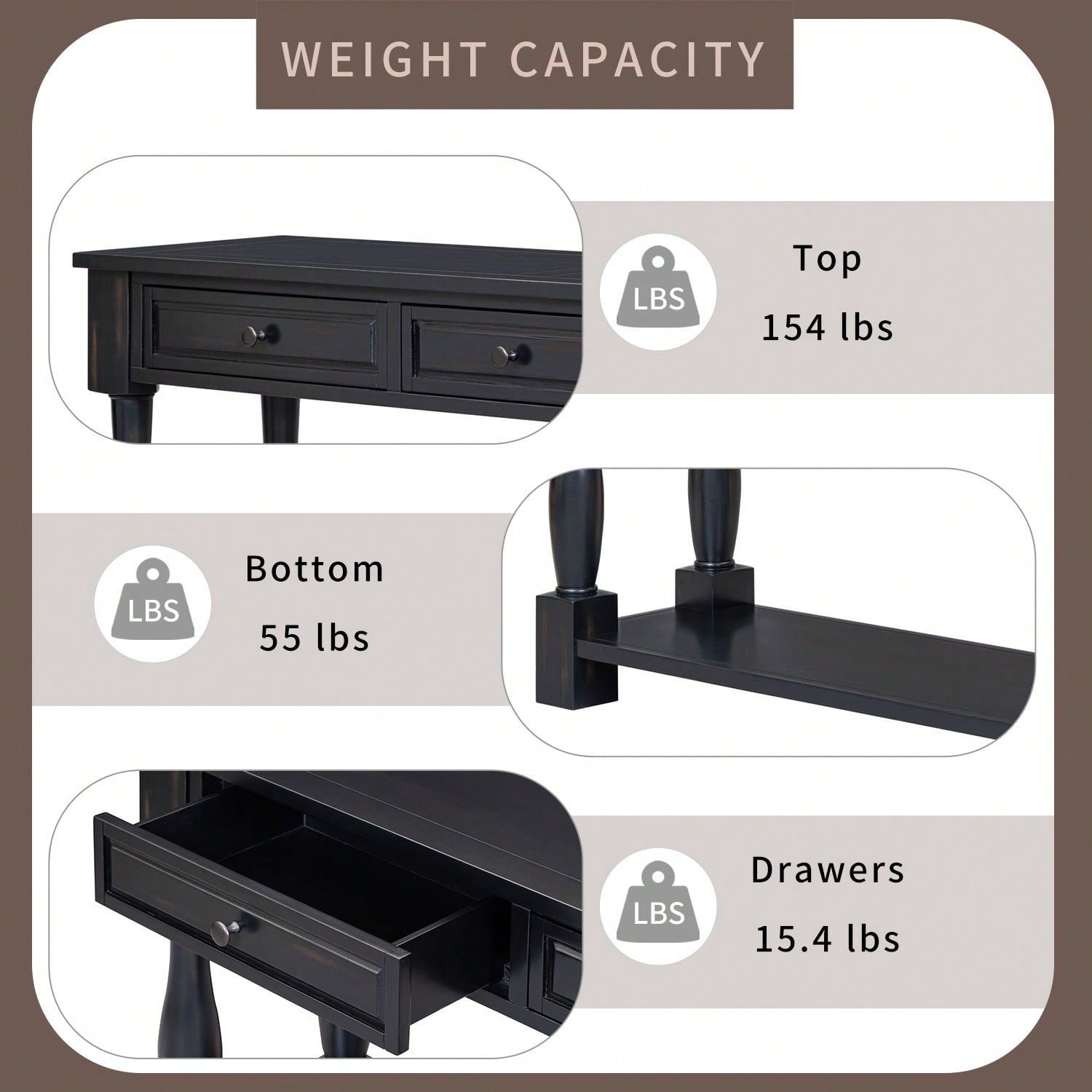 63" Long Console Table With Drawers And Shelf For Entryway, Hallway, Living Room