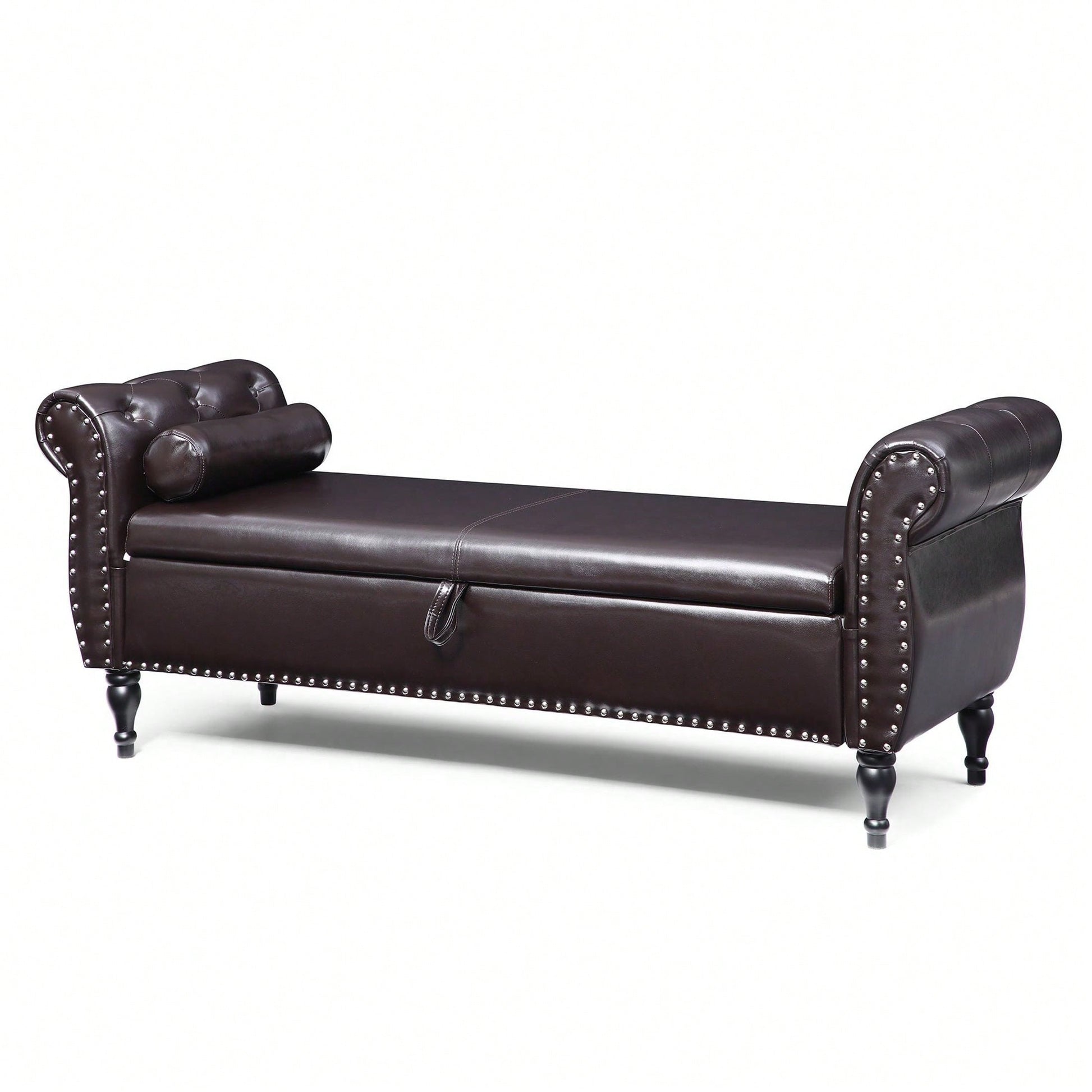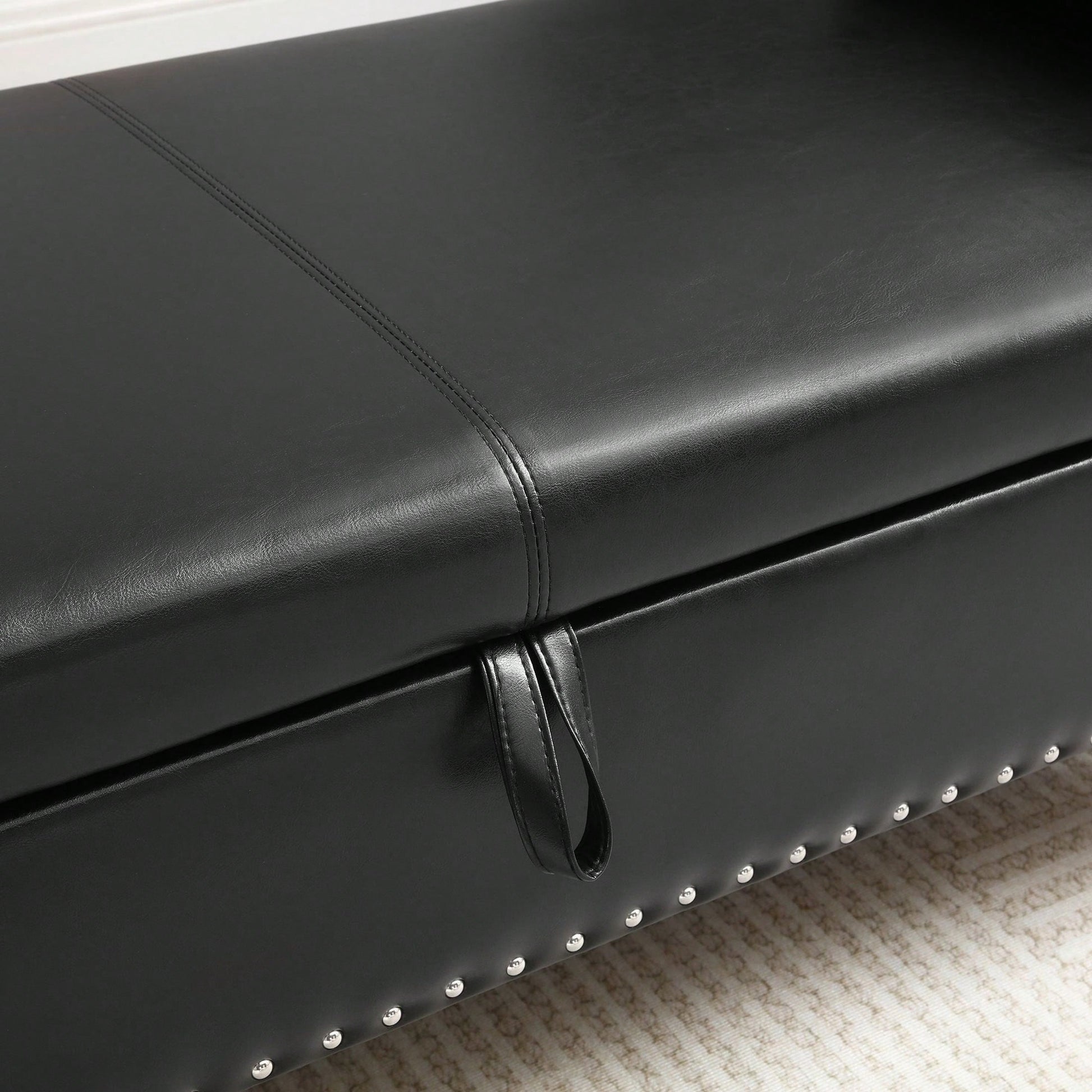 63 Inch PU Upholstered Tufted Storage Bench with Safety Hinge and Nailhead Trim Solid Wood Legs