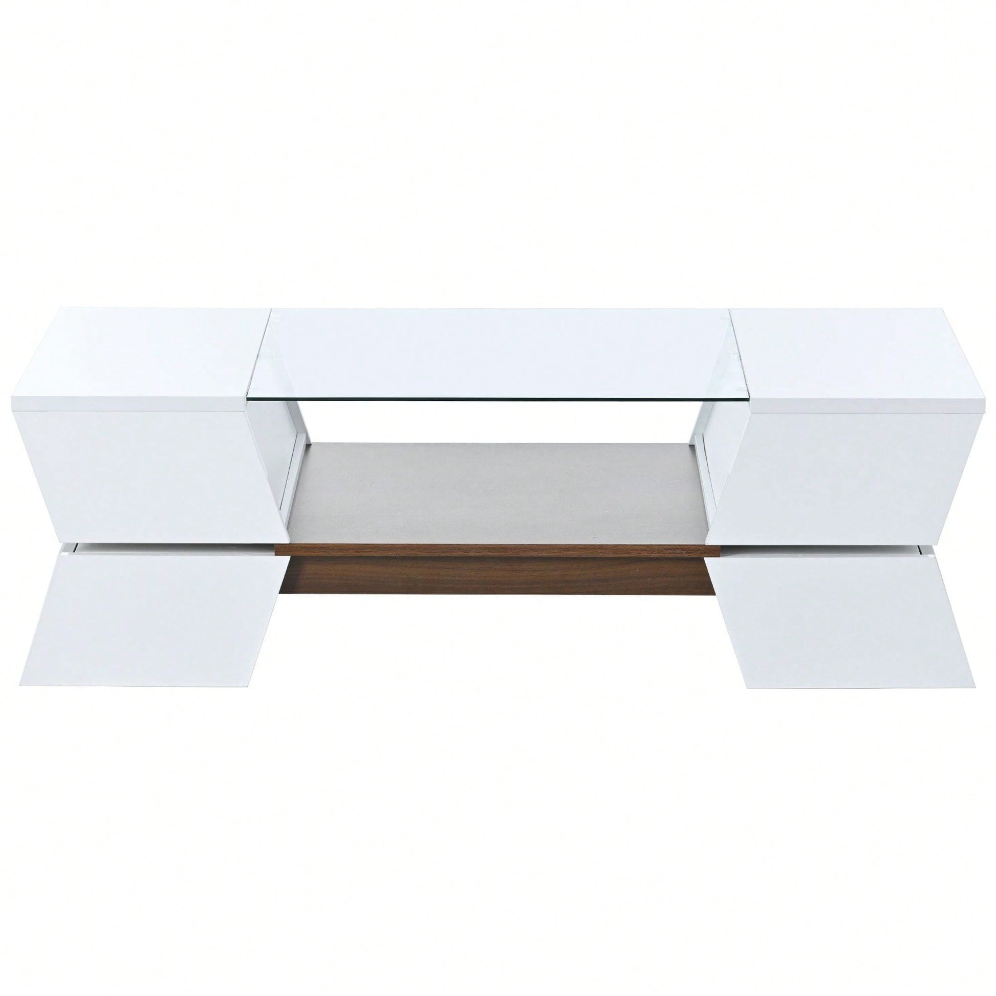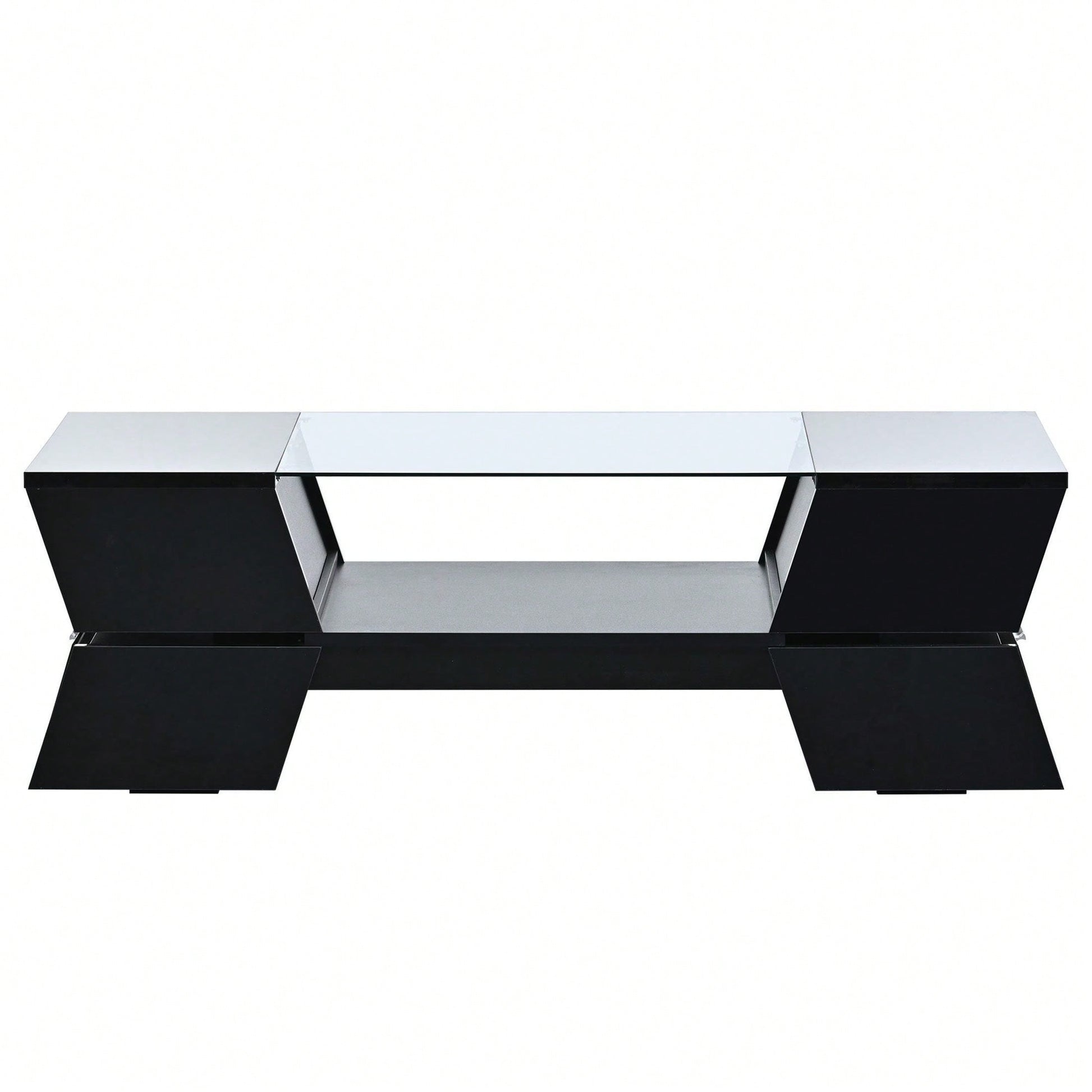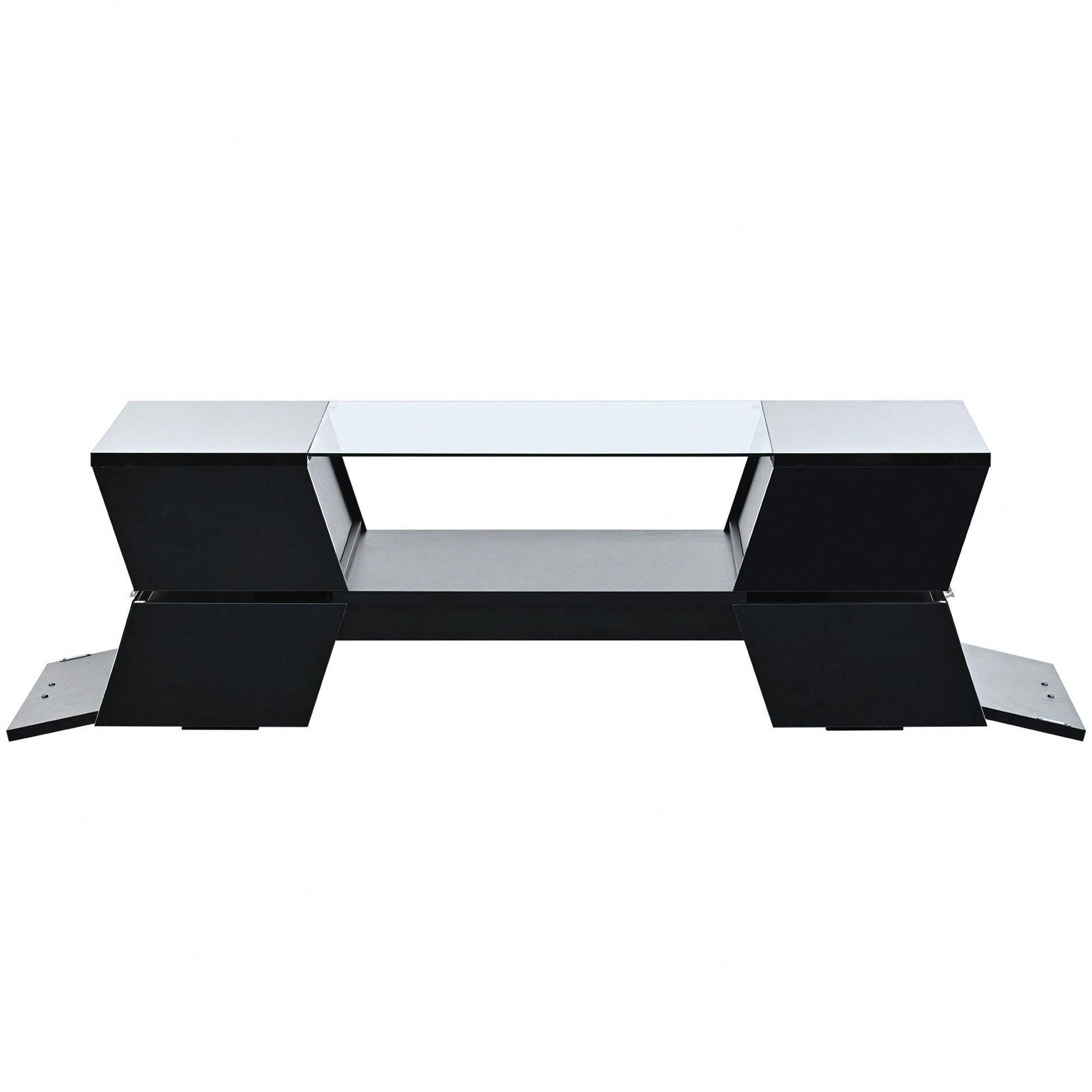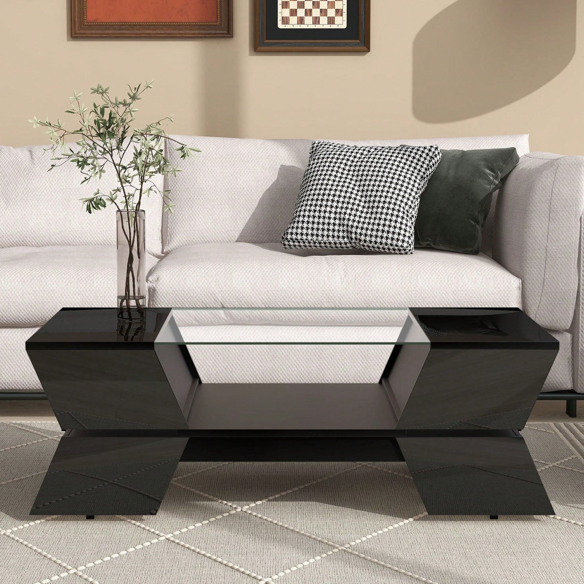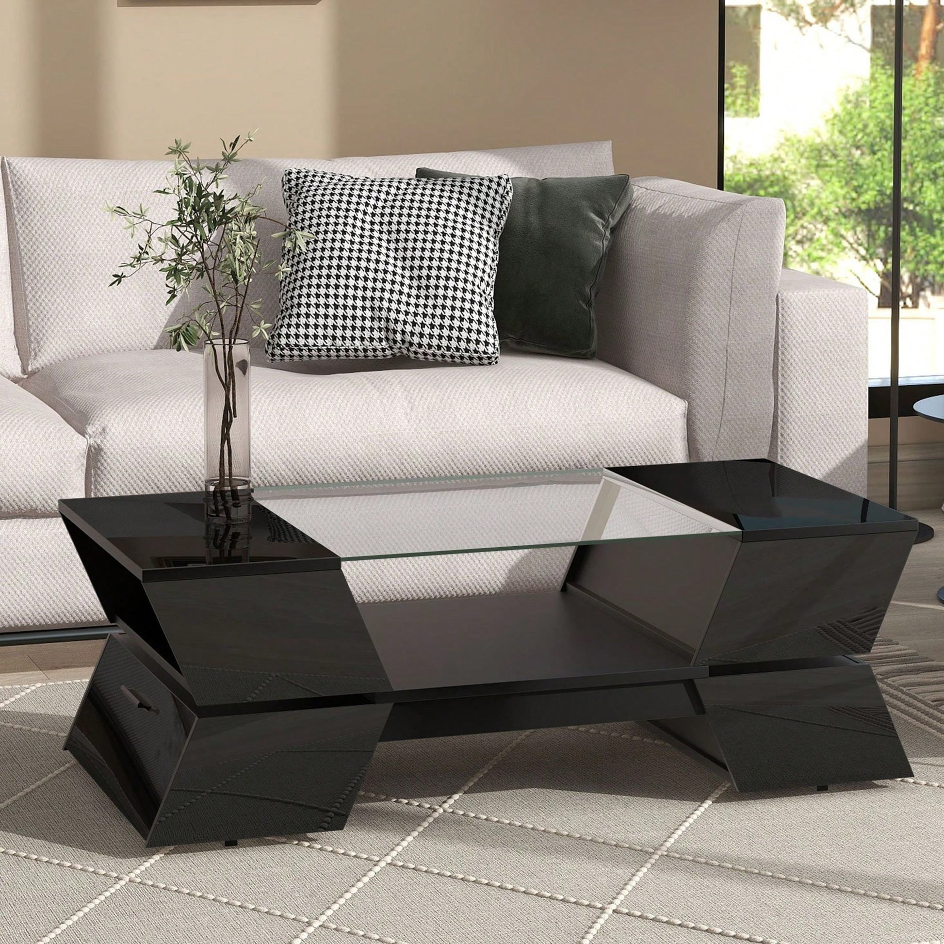 Modern Geometric 6mm Glass Coffee Table with Open Shelves and Cabinets for Stylish Living Room Storage