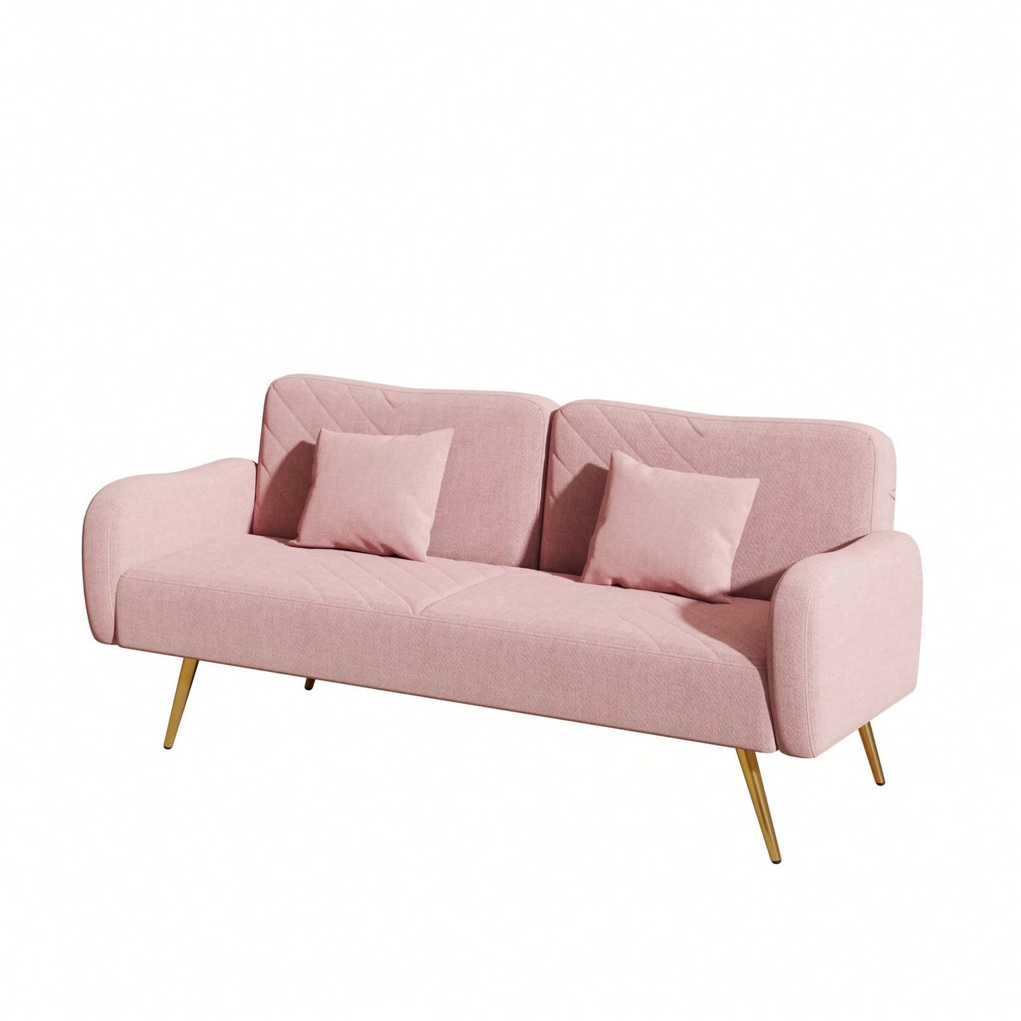 70.47 Inch Green Fabric Double Sofa With Split Backrest And Two Throw Pillows For Living Room Apartment Home Office